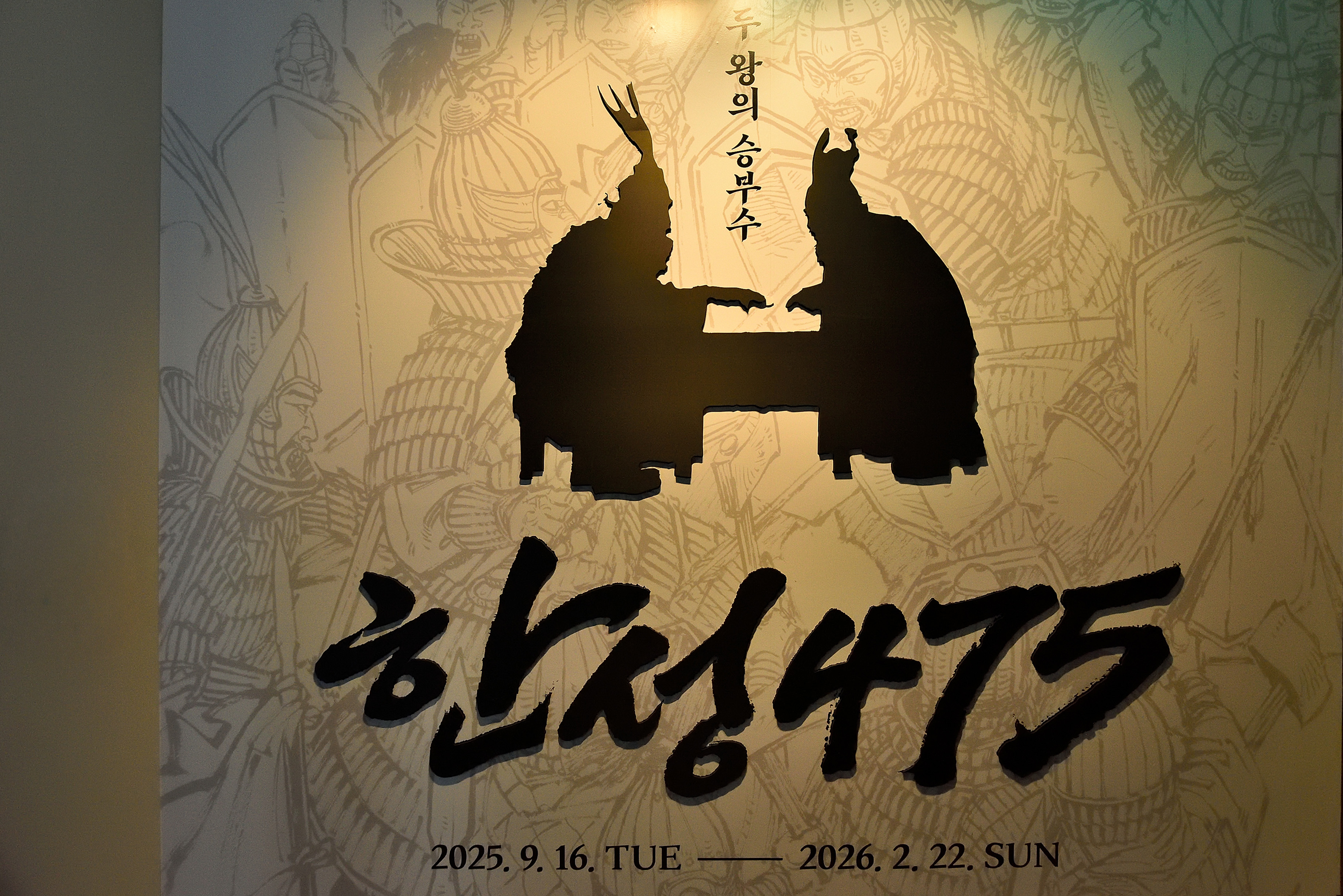기획 전시 "한성 475" 사건의 발단은 백제 최전성기 정복왕이었던 13대 근초고왕이 평양성을 침공하여 고구려 고국원왕이 전사하게 된 것이 빌미가 되었다. 이때부터 고구려는 백제를 원수로 여겨 광개토대왕에 이어 장수왕이 백제의 한성에 원정하여 475년 한성백제를 몰락시키고 동명왕 주몽의 같은 후손인 백제의 개로왕을 참수하였다.