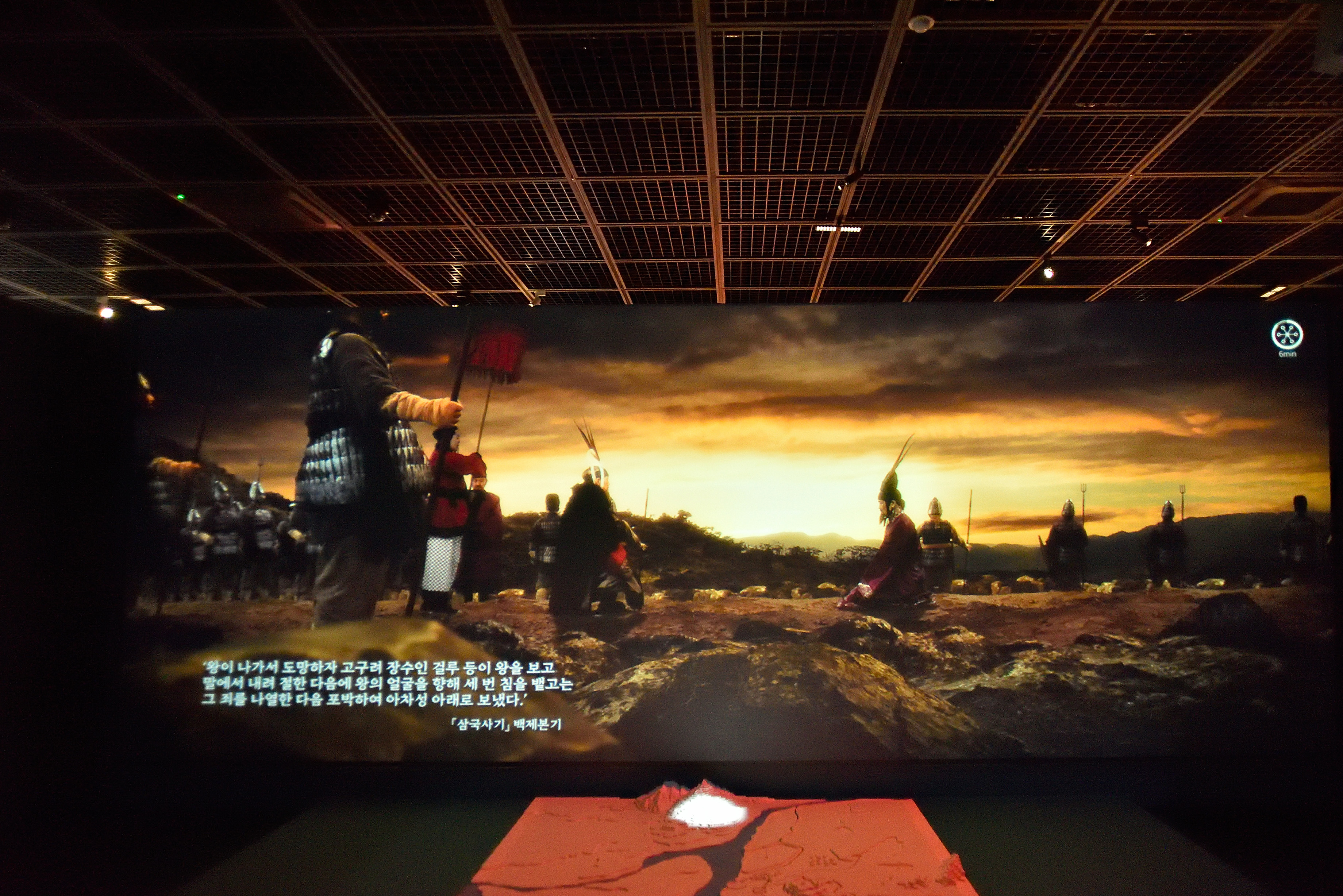 공주박물관에서 제작한 장수왕과 개로왕의 전쟁 영상물을 연속 상영하고 있었다. (러닝 타임 30분)