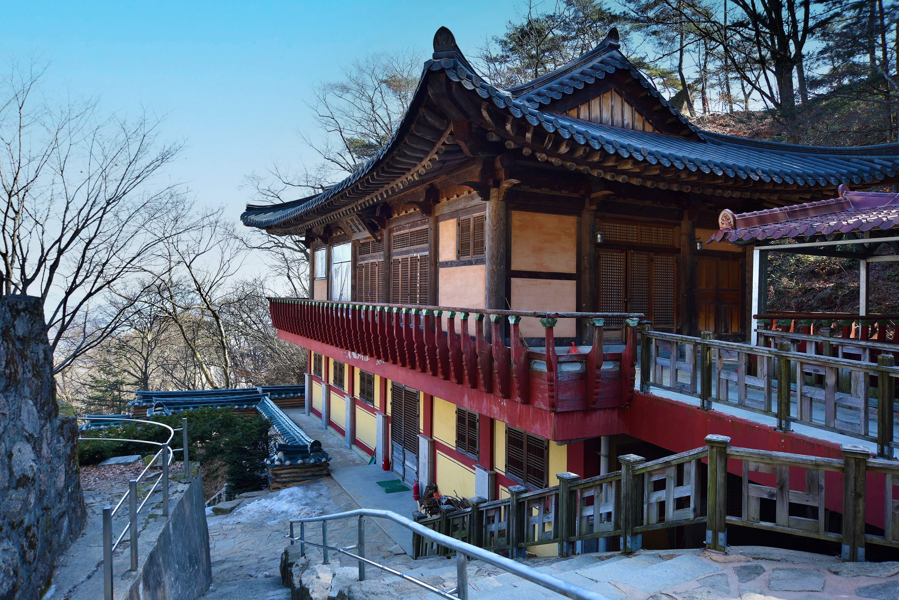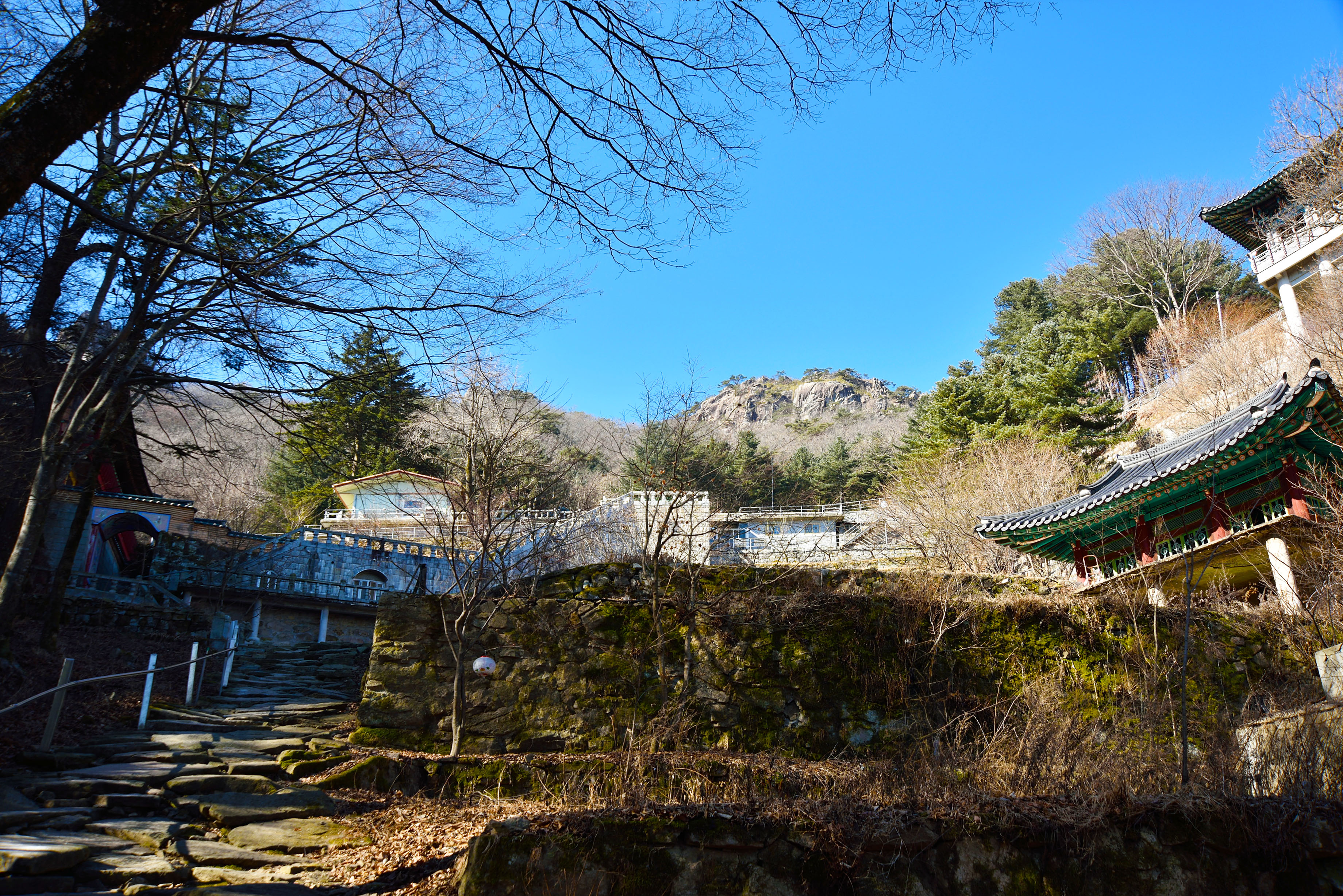뒤로 범종루를 바라보며 대웅전으로 오르는 돌계단이 마치 불국사 청운교 백운교를 닮은 것 같았다. 현재는 통행불가