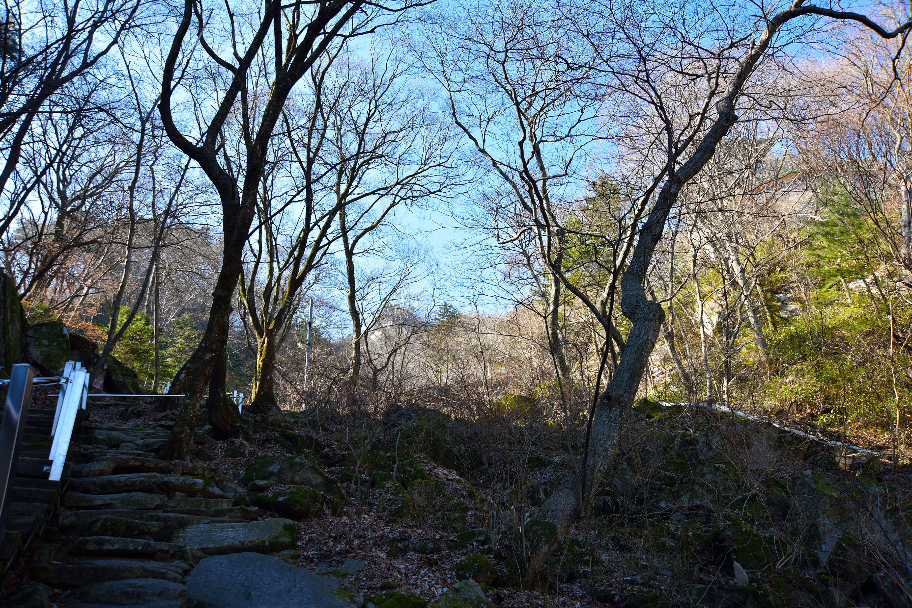 석문을 지나 태고사에 오르는 돌계단 길