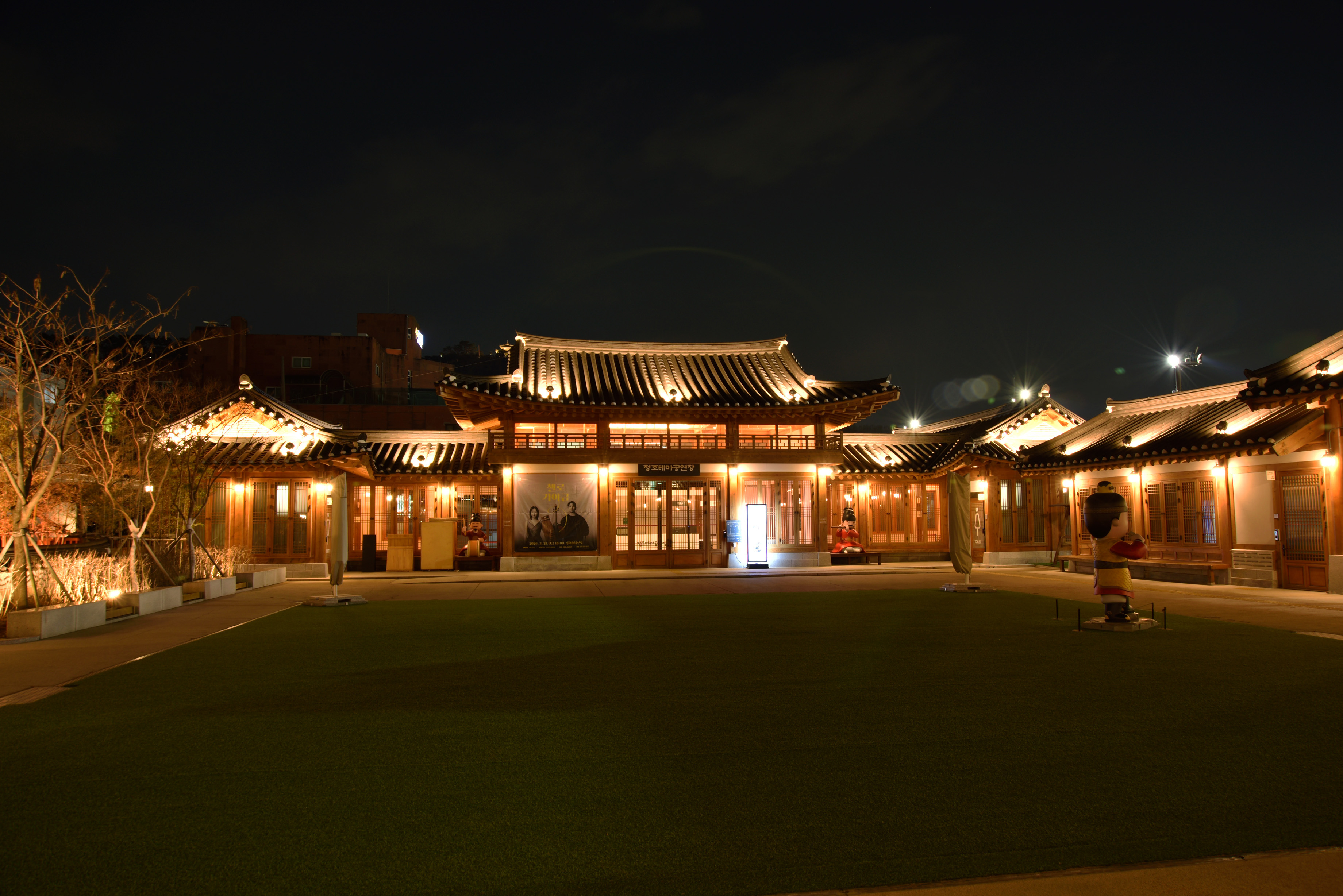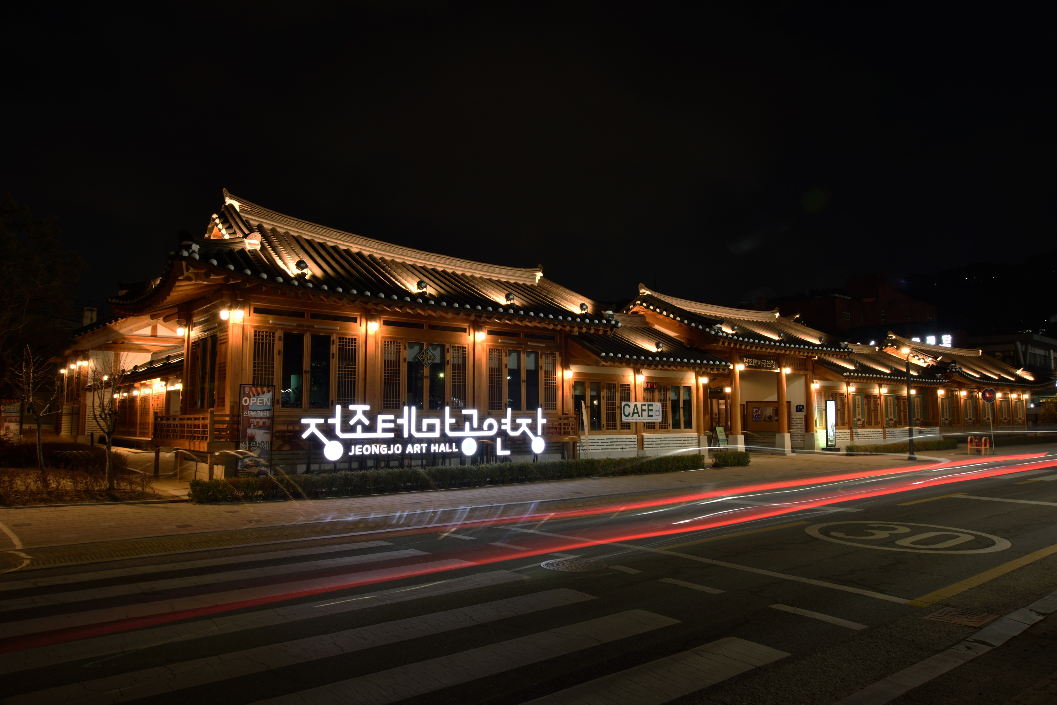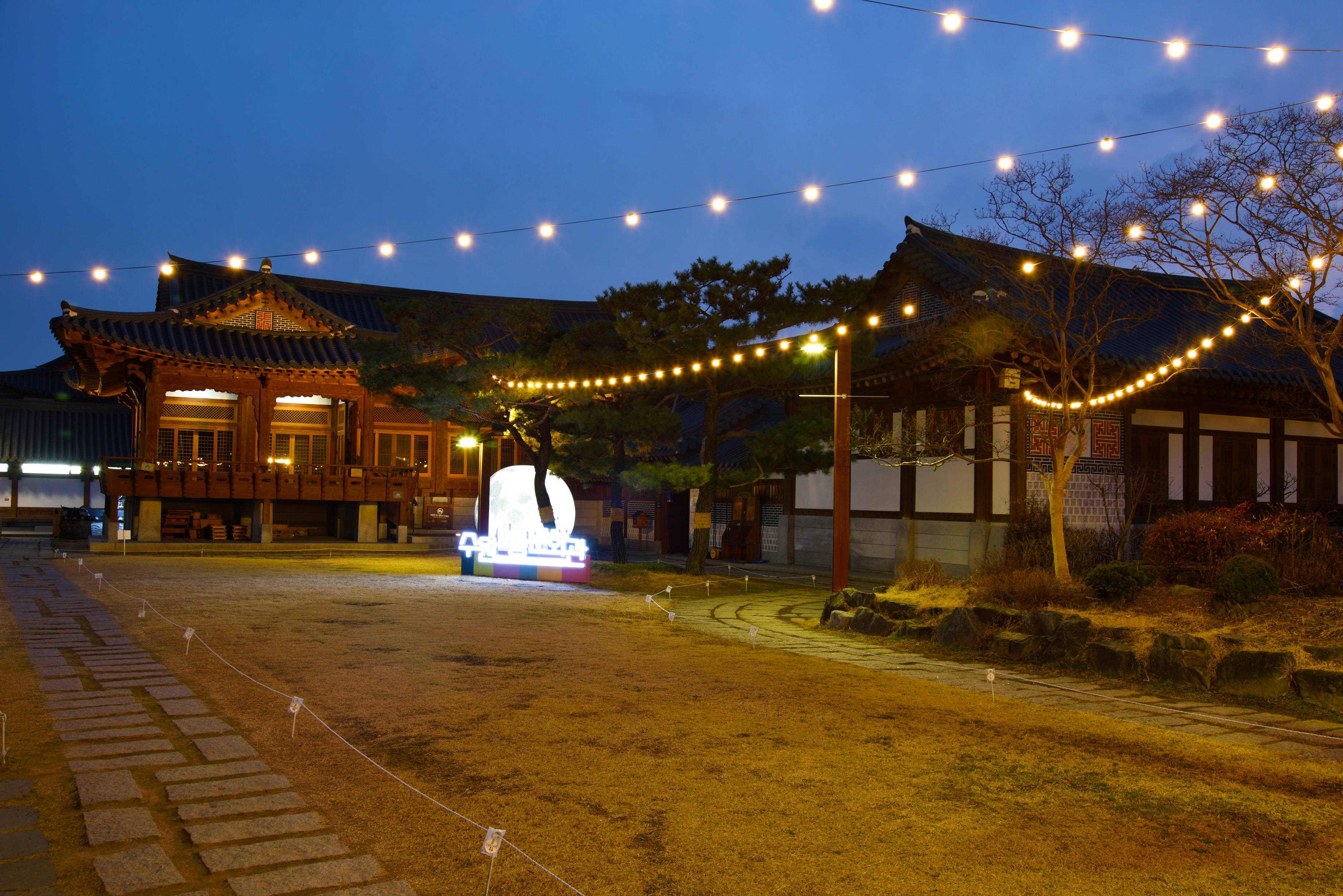 점등식 하듯 거리의 가로등이 들어왔다. 장안문 안쪽 한옥 거리 수원전통문화관 바깥 건물, 달빛 행궁이란 간판이 예쁘다.