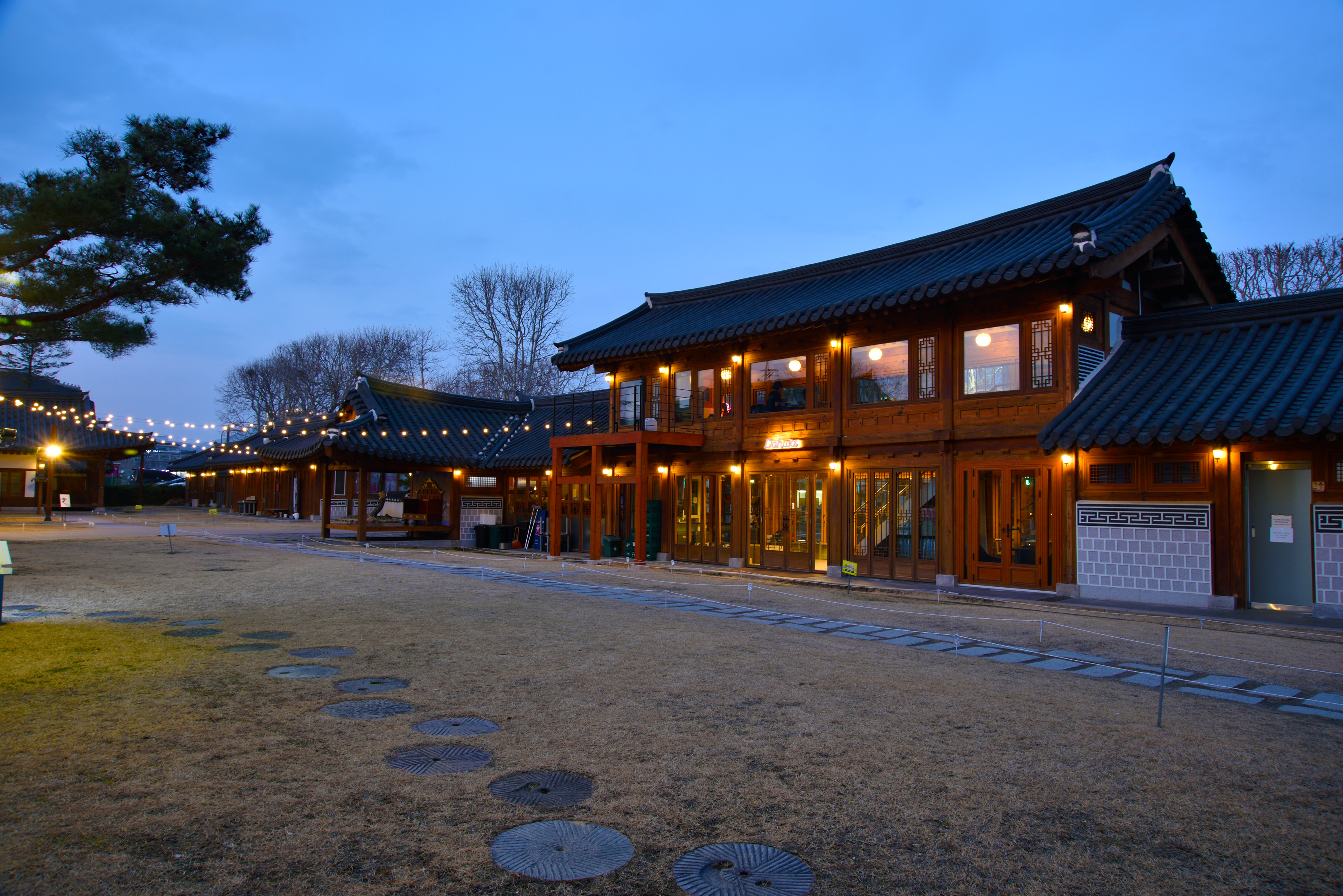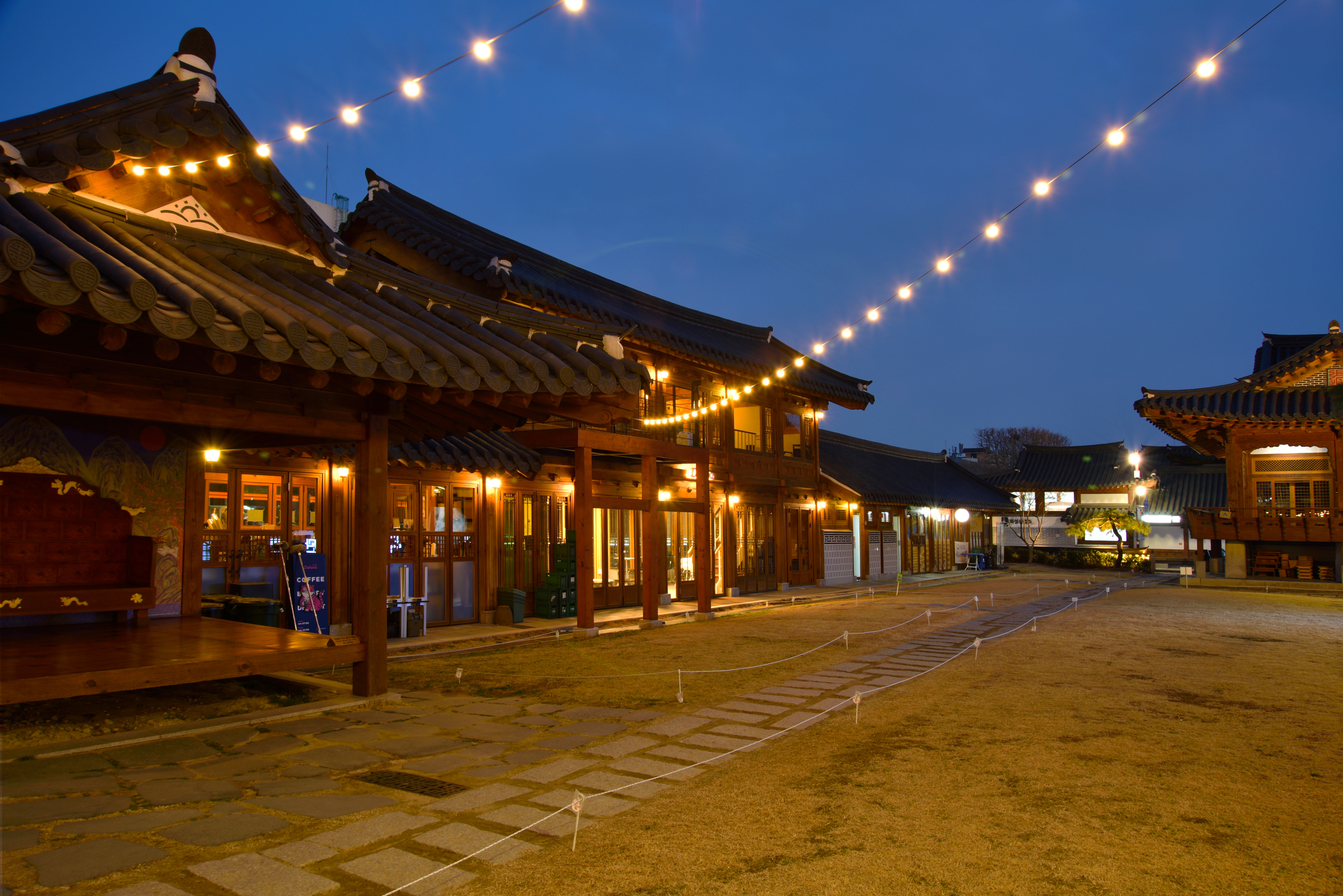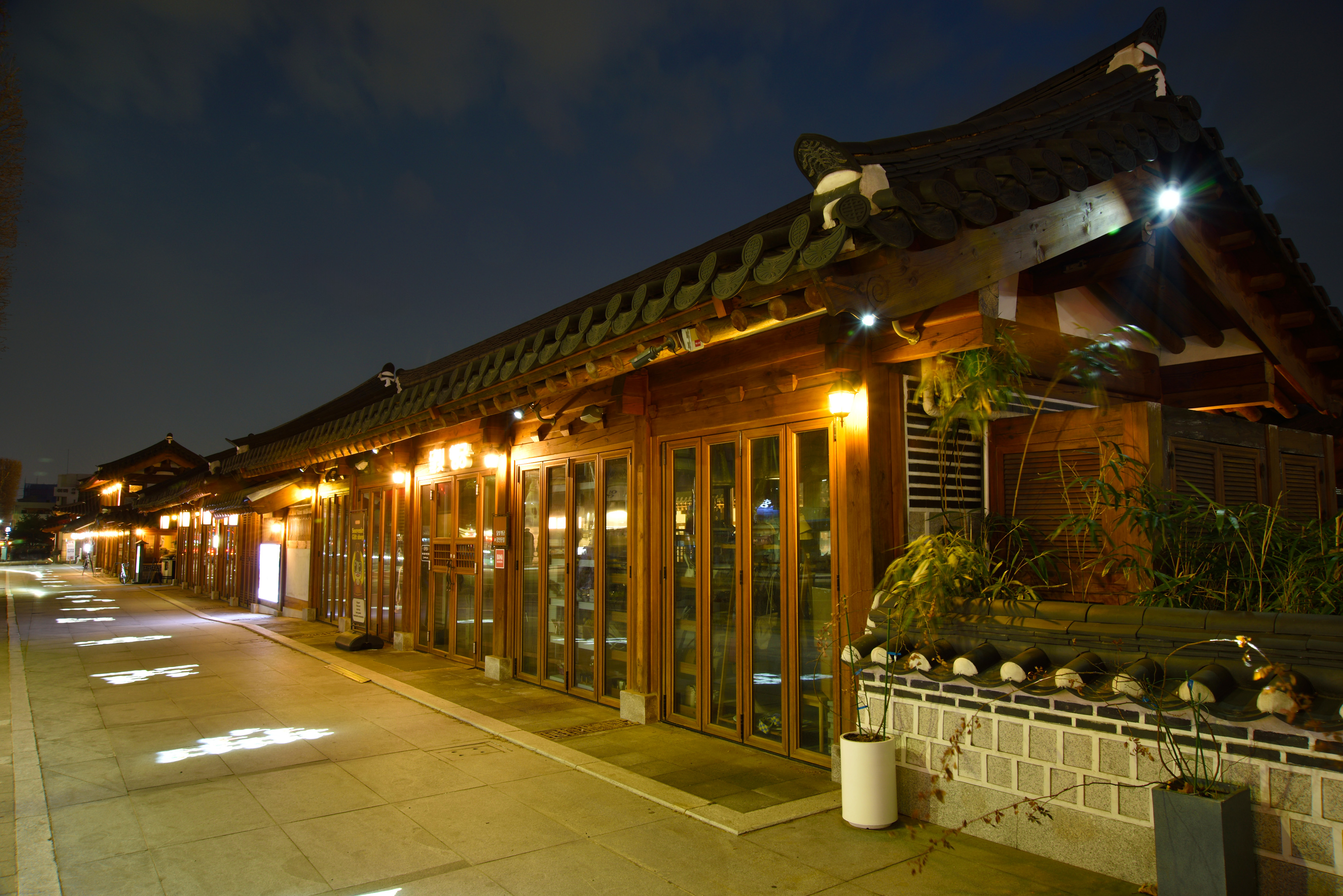 점등식 하듯 거리의 가로등이 들어왔다. 장안문 안쪽 한옥 거리 수원전통문화관 바깥 건물, 달빛 행궁이란 간판이 예쁘다.