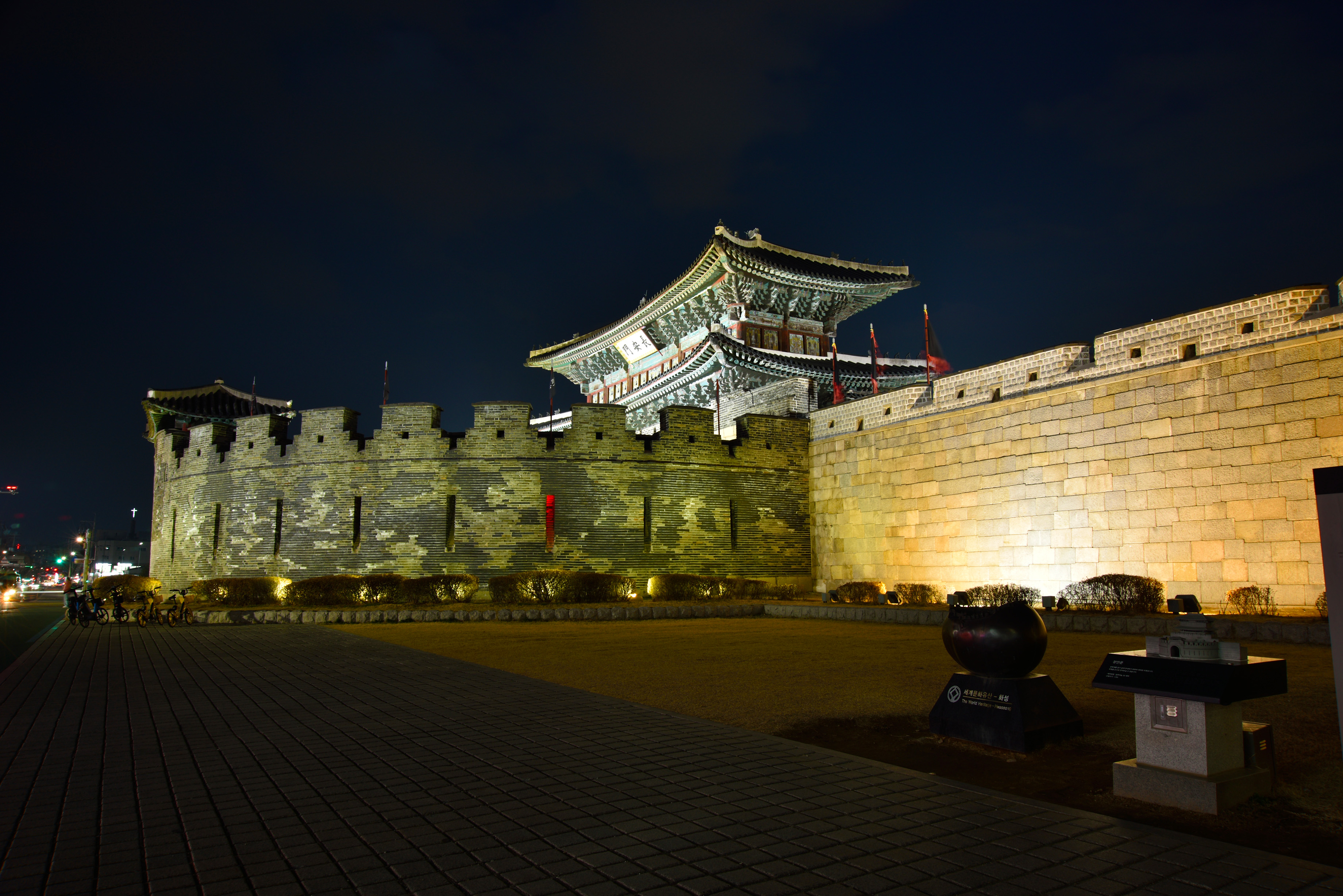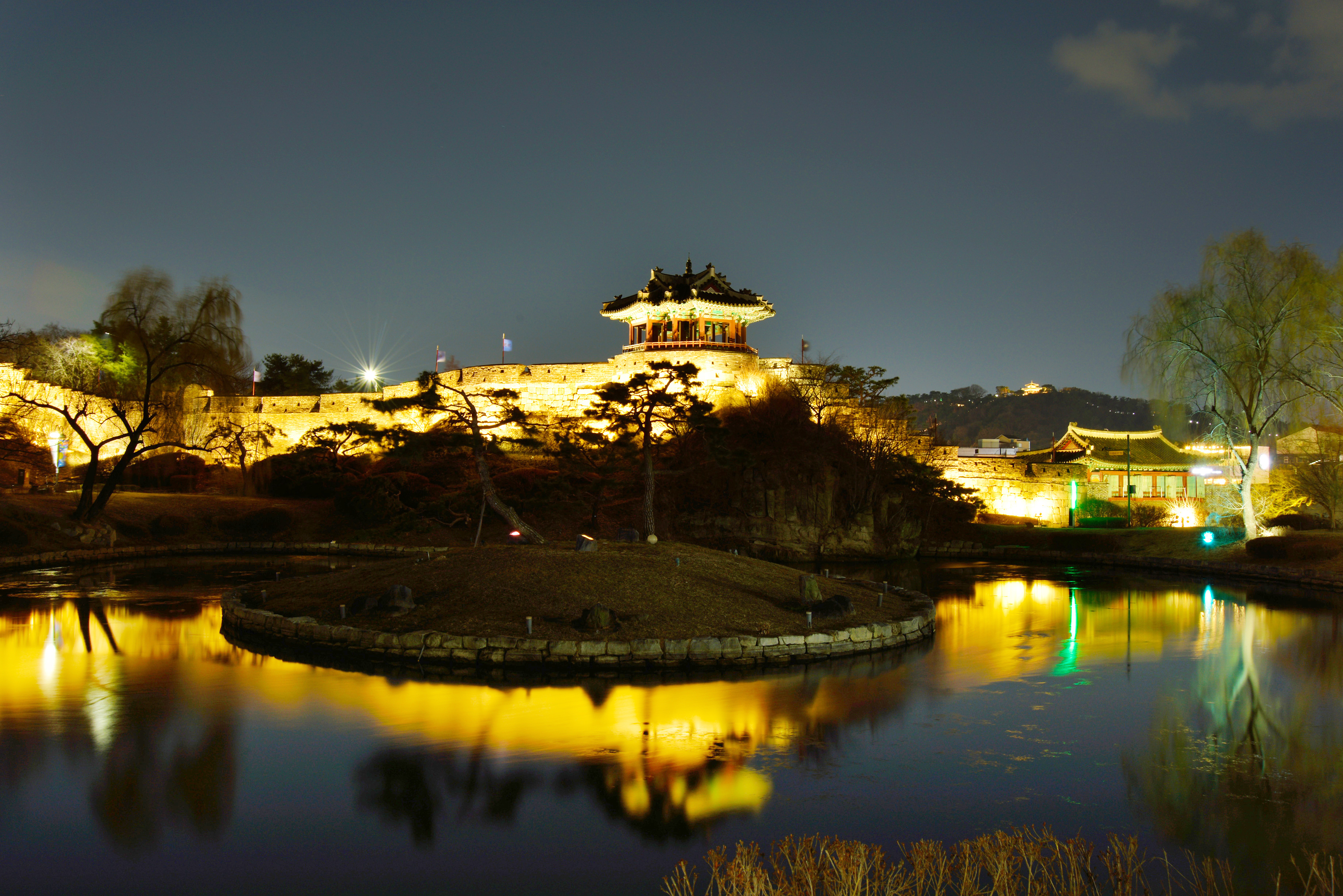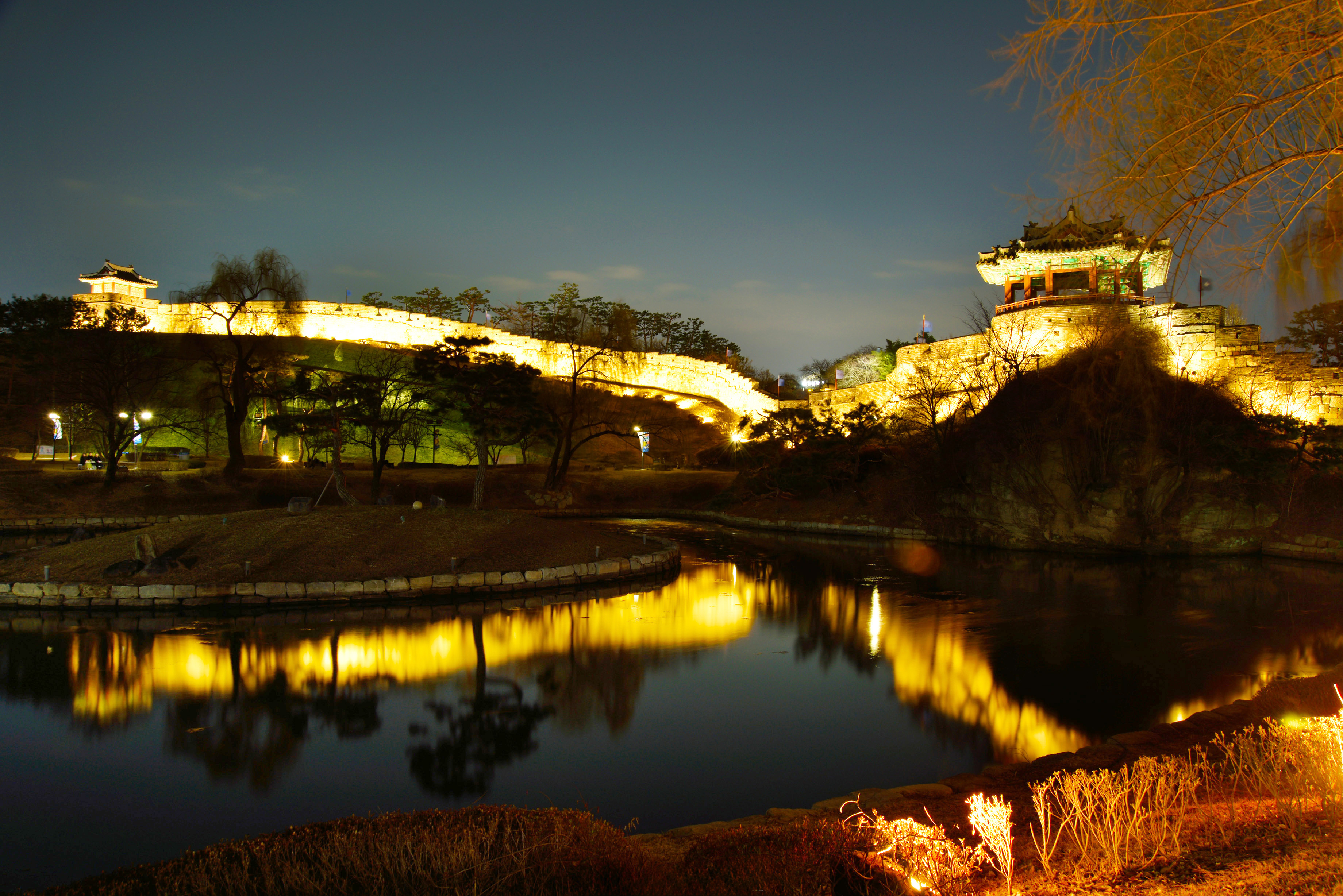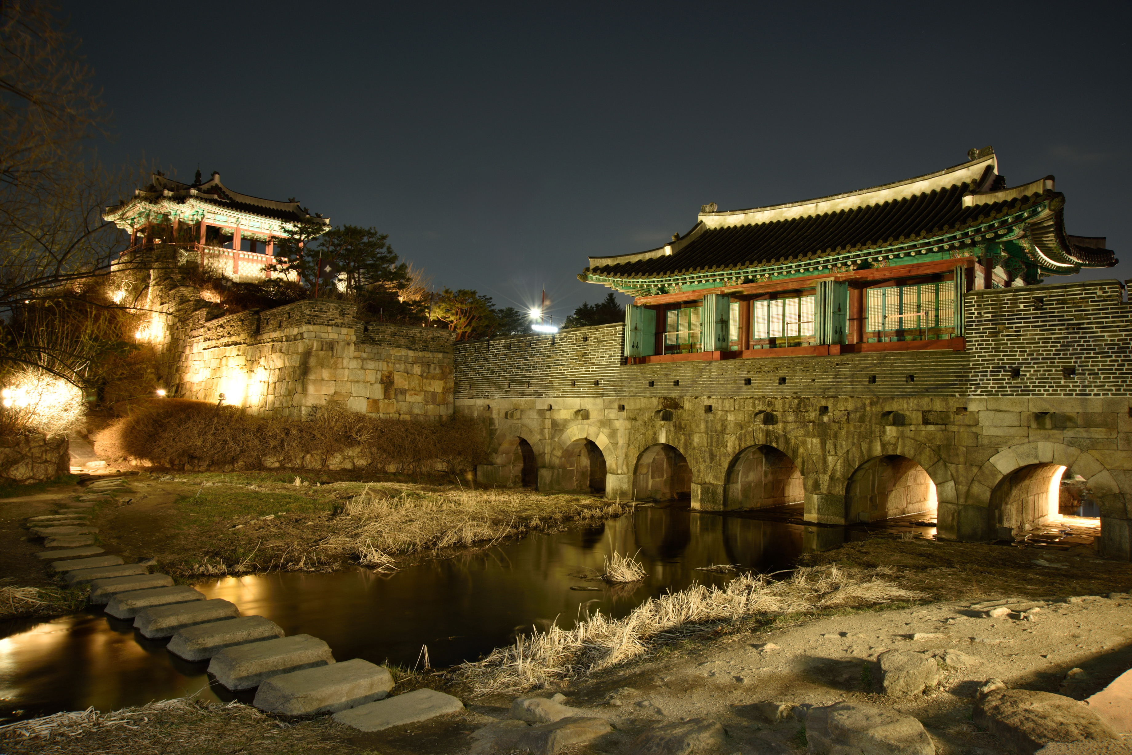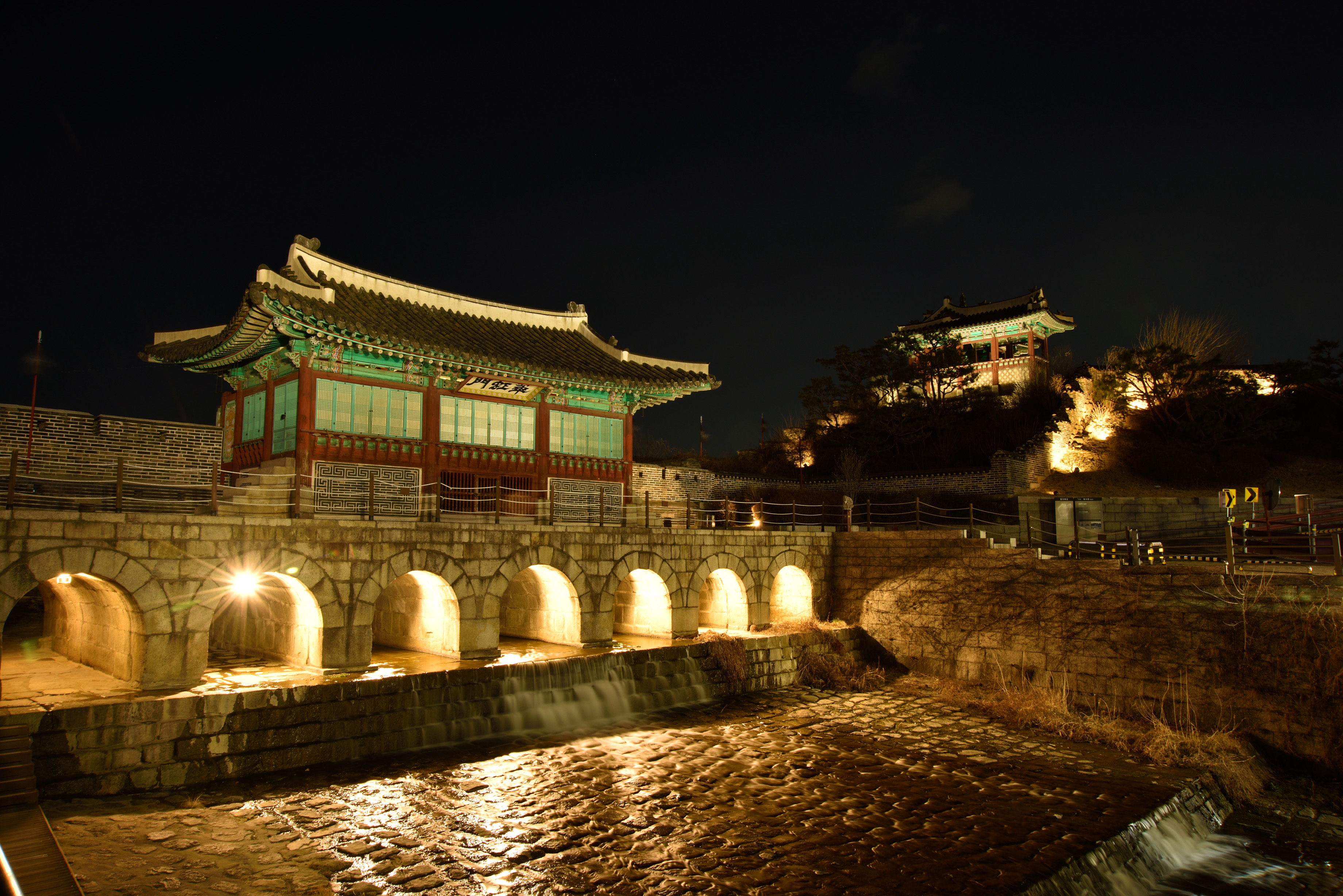 처음 들렸었던 화홍문과 방화수류정, 그 사이 밤이 깊었다.