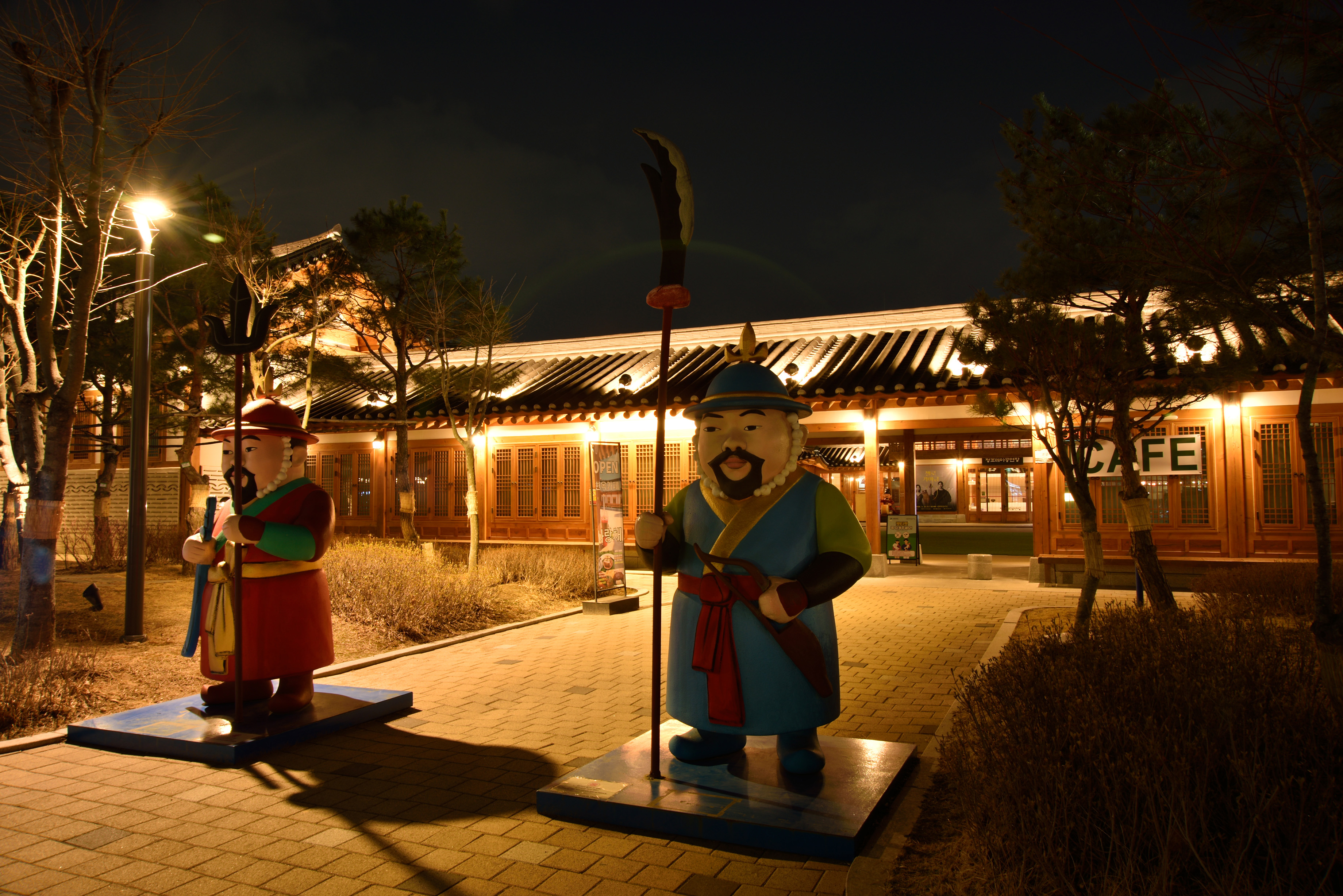 공연장 입구를 지키는 수문장, 해학적인 모습이다. 살 좀 빼지... 정조대왕은 대단한 무술가였다는데... 정조가 거느렸던 장용군이 살쪘다는 건 게을렀단 것일 텐데... 아무튼 해학적이고 넉넉한 캐릭터 인형의 모습이 푸근해 보여서 좋다.