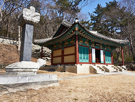 다산의 사당인 문도사. 다산의 시호는 '문도공', 오른쪽 계단 위의 동산이 문도공 다산 선생의 묘소이다.