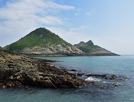 벼랑 아래 한반도 모양의 작은 돌섬