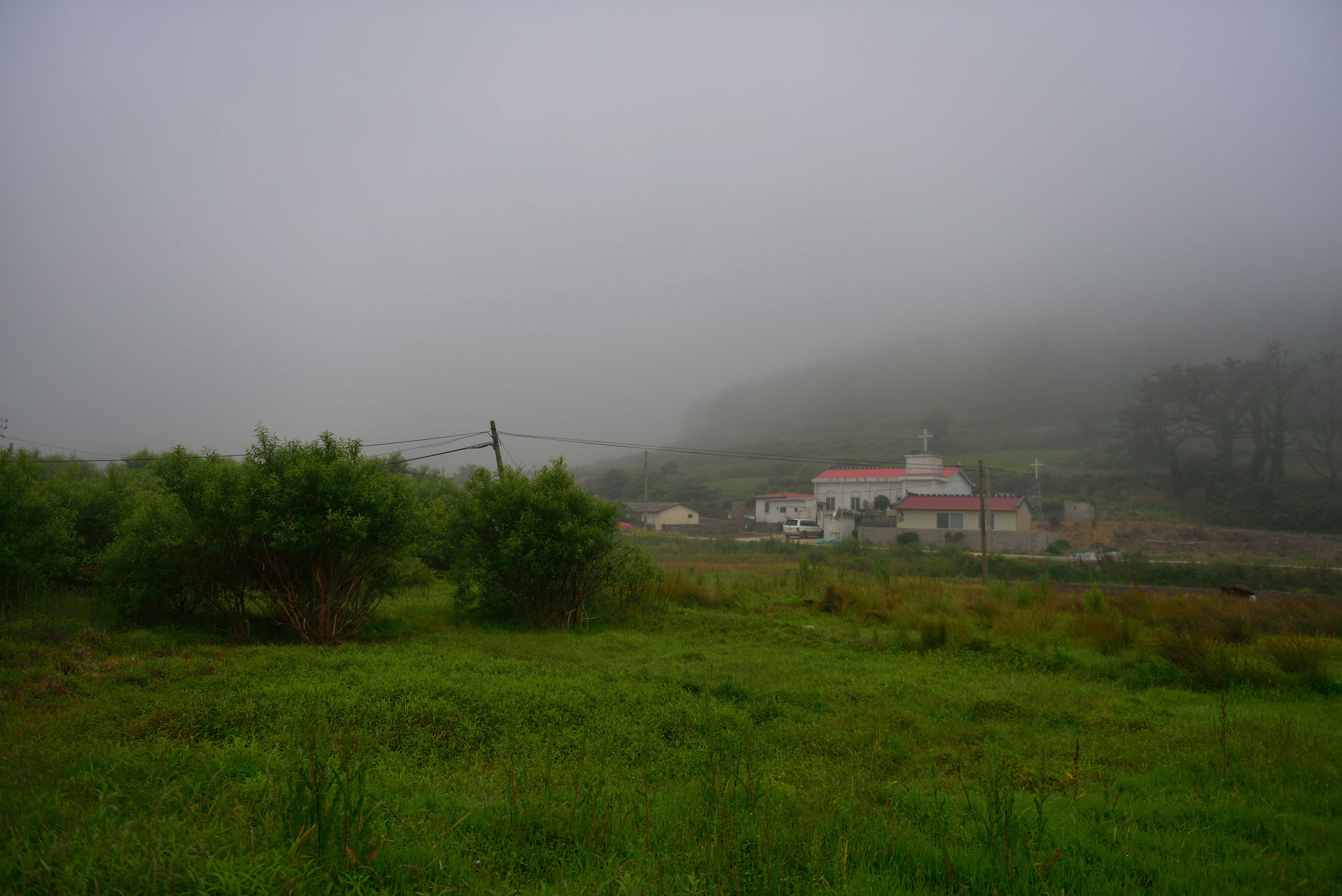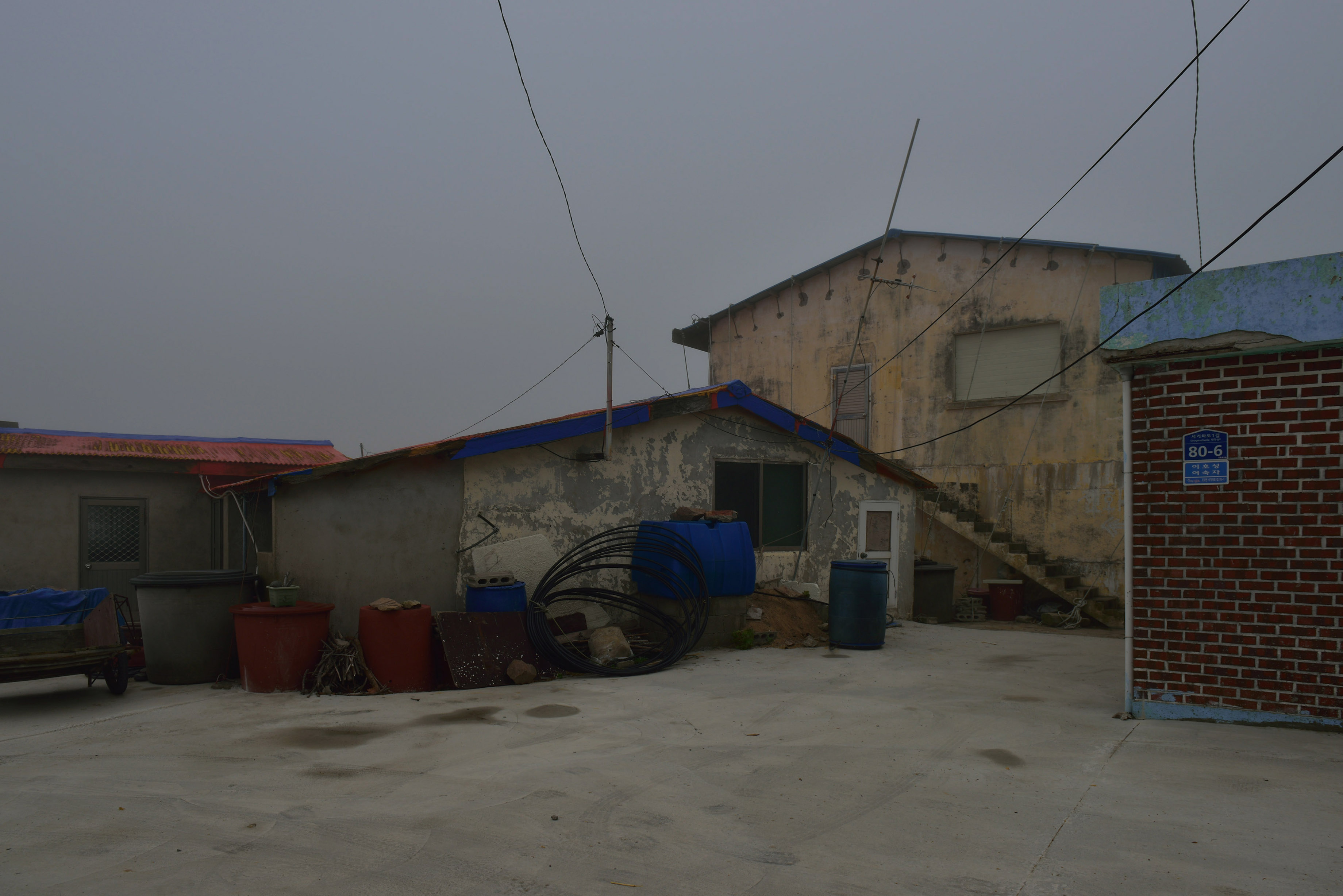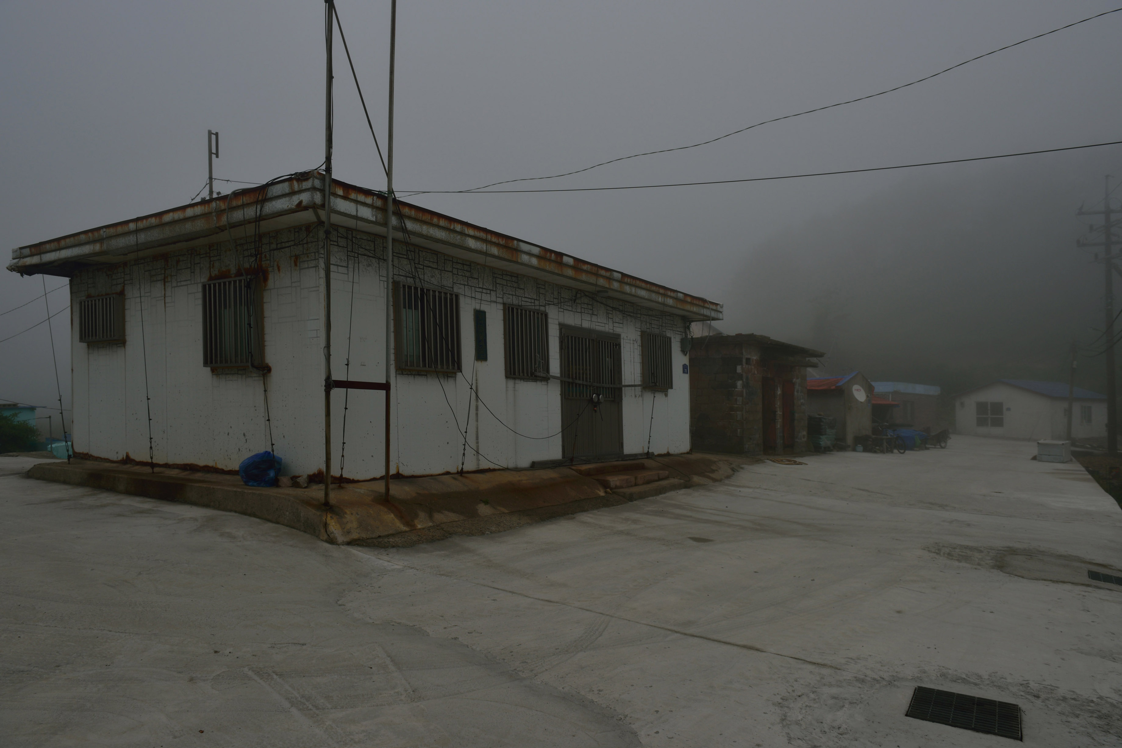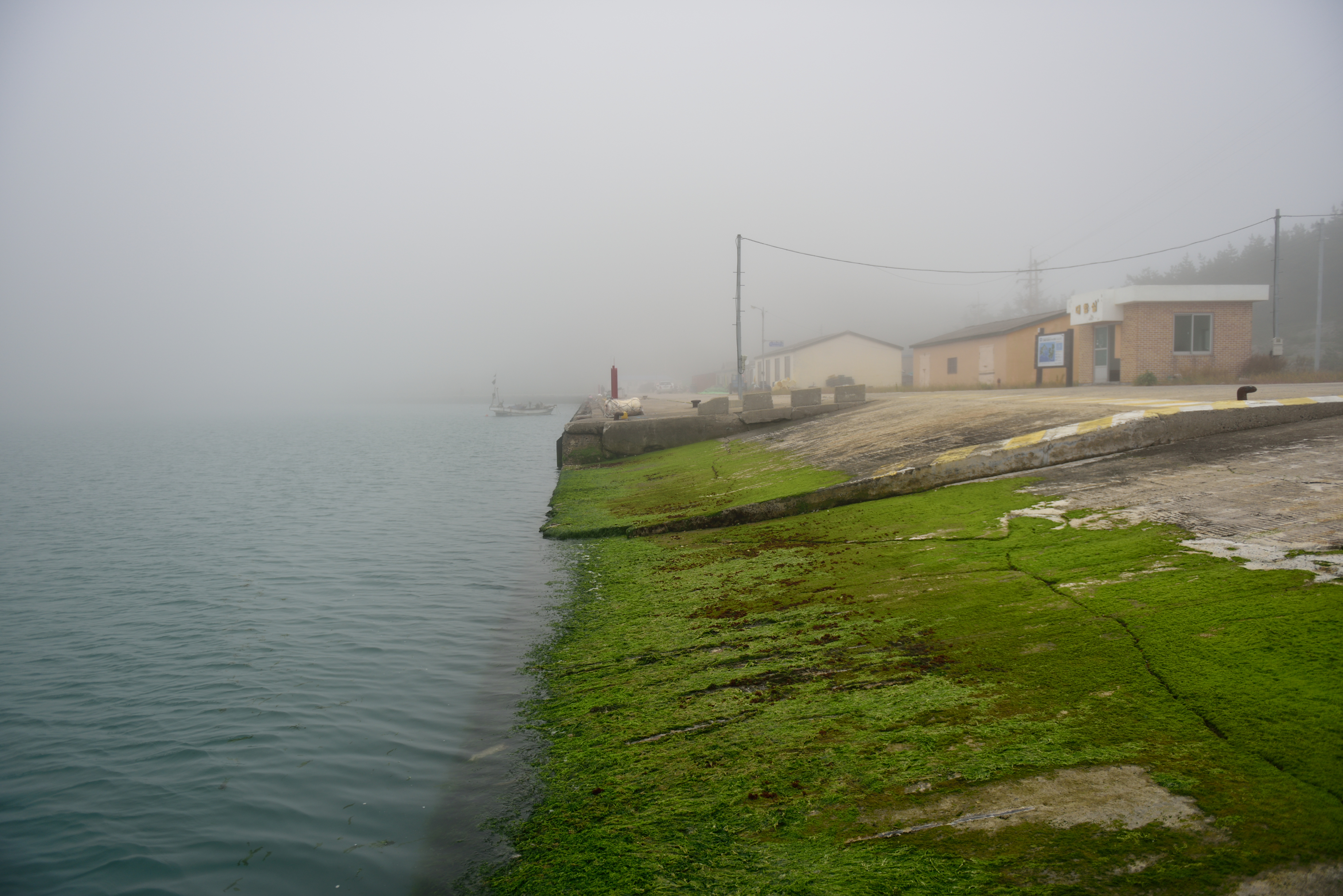 안개 때문에 산에도 가지 못하고 소일 삼아 항만에 붙은 마을의 도로를 따라 걸었다. 오분도 걸리지 않을 그 길에 마을의 모든 역사가 담겨있는 듯, 퇴락한 건물부터 새로 지은 주택까지 한눈에 볼 수 있었다. 한 때 풍어로 이 마을이 번성했을 때, 성황을 누렸다는 이 층집, 이젠 폐쇄되어 굳게 잠긴 자물쇠마저 녹슬어버린 파출소와 부서져 무너질 것만 같은 예비군 무기고, 예비군이 한 명도 없을 이 마을에 한 때 무기고까지 있었다는 사실이 흥미로웠다. 허물처럼 껍데기만 남은 빈 집 몇 채... 앞을 볼 수 없는 안개처럼 이 마을의 미래를 볼 수 없는 것이 안타까울 뿐이었다.