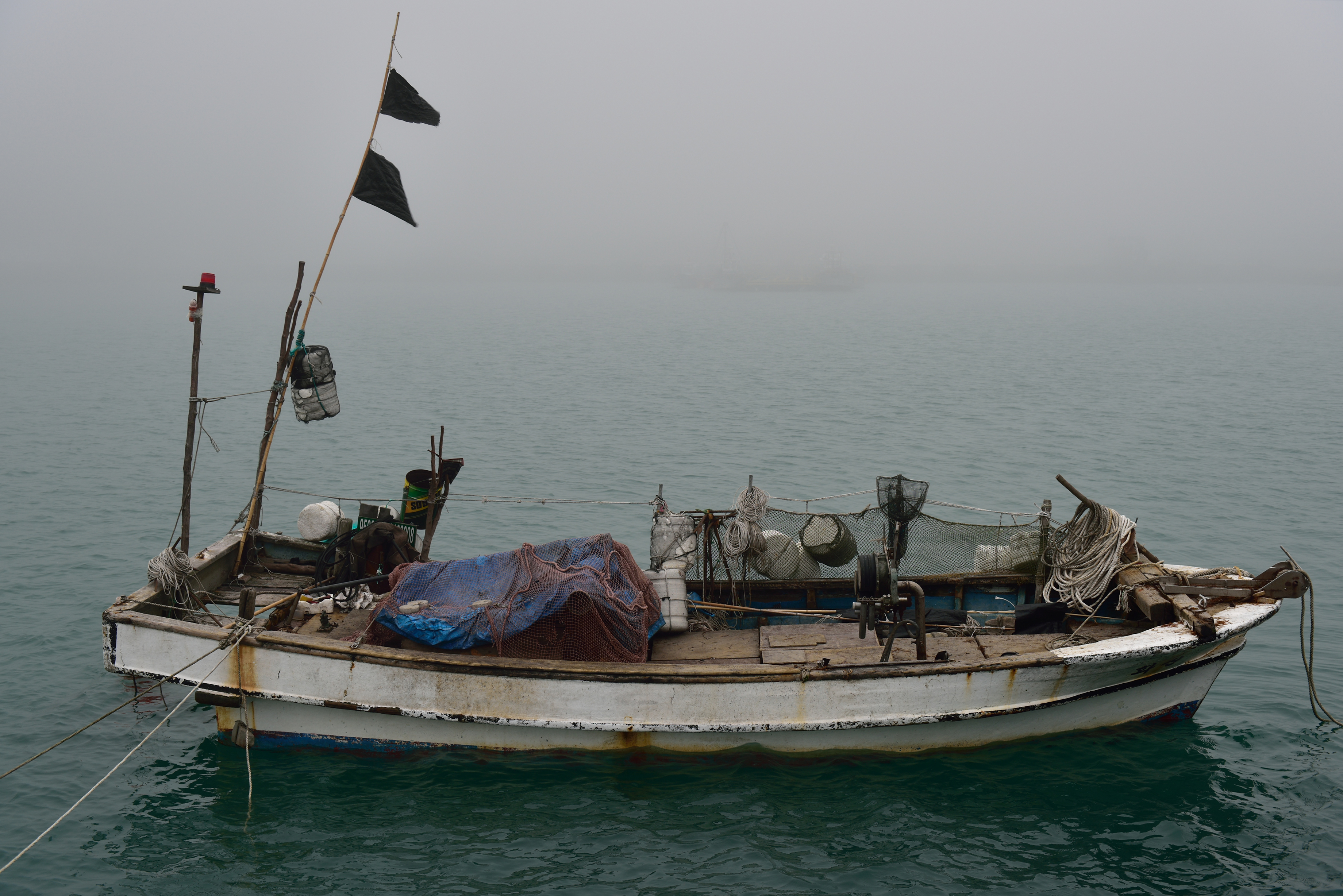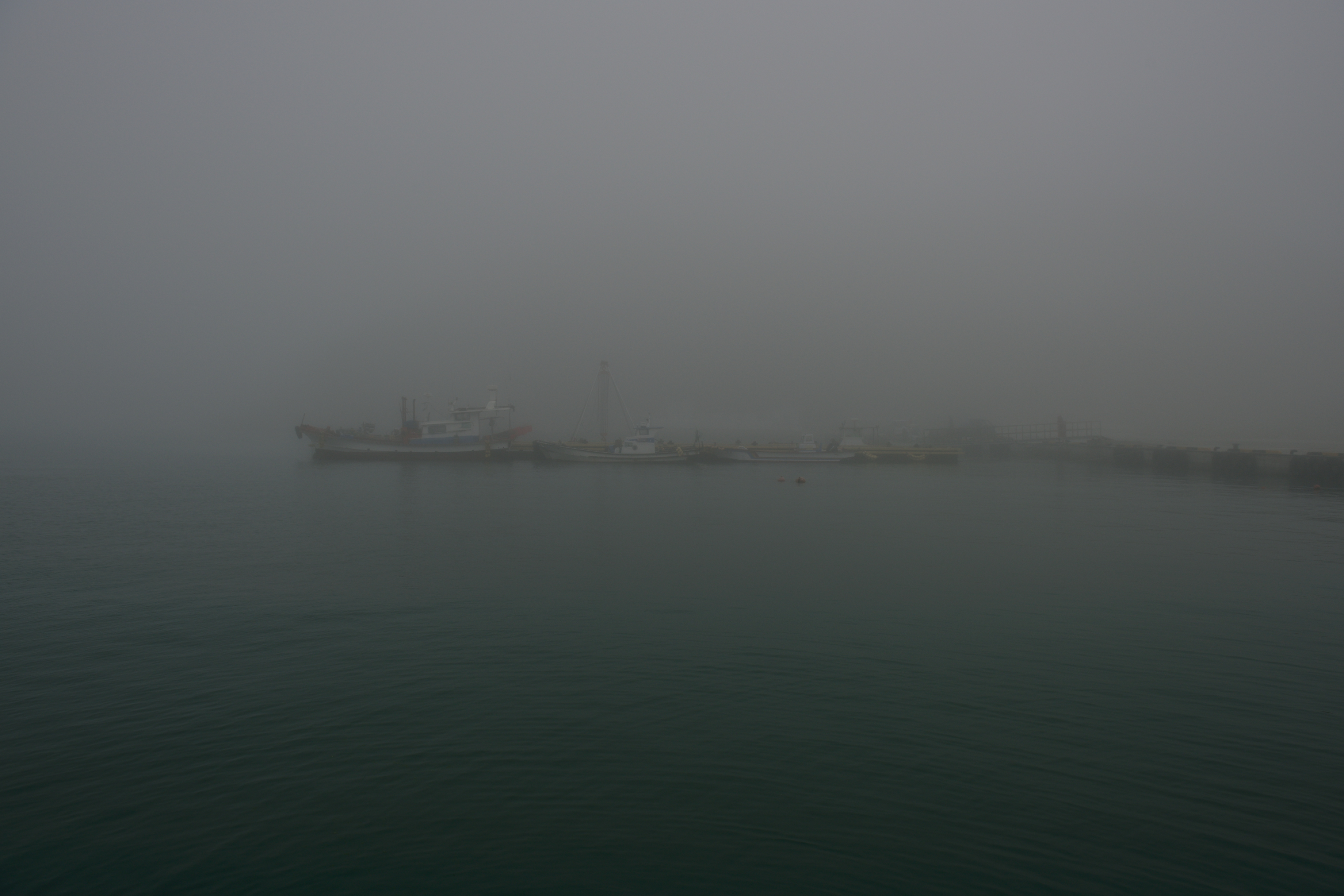바다에 나갔으나, 안개만 보일 뿐이었다. 그래서인지 낚시도 되지 않았고, 통발 소득도 없었다.