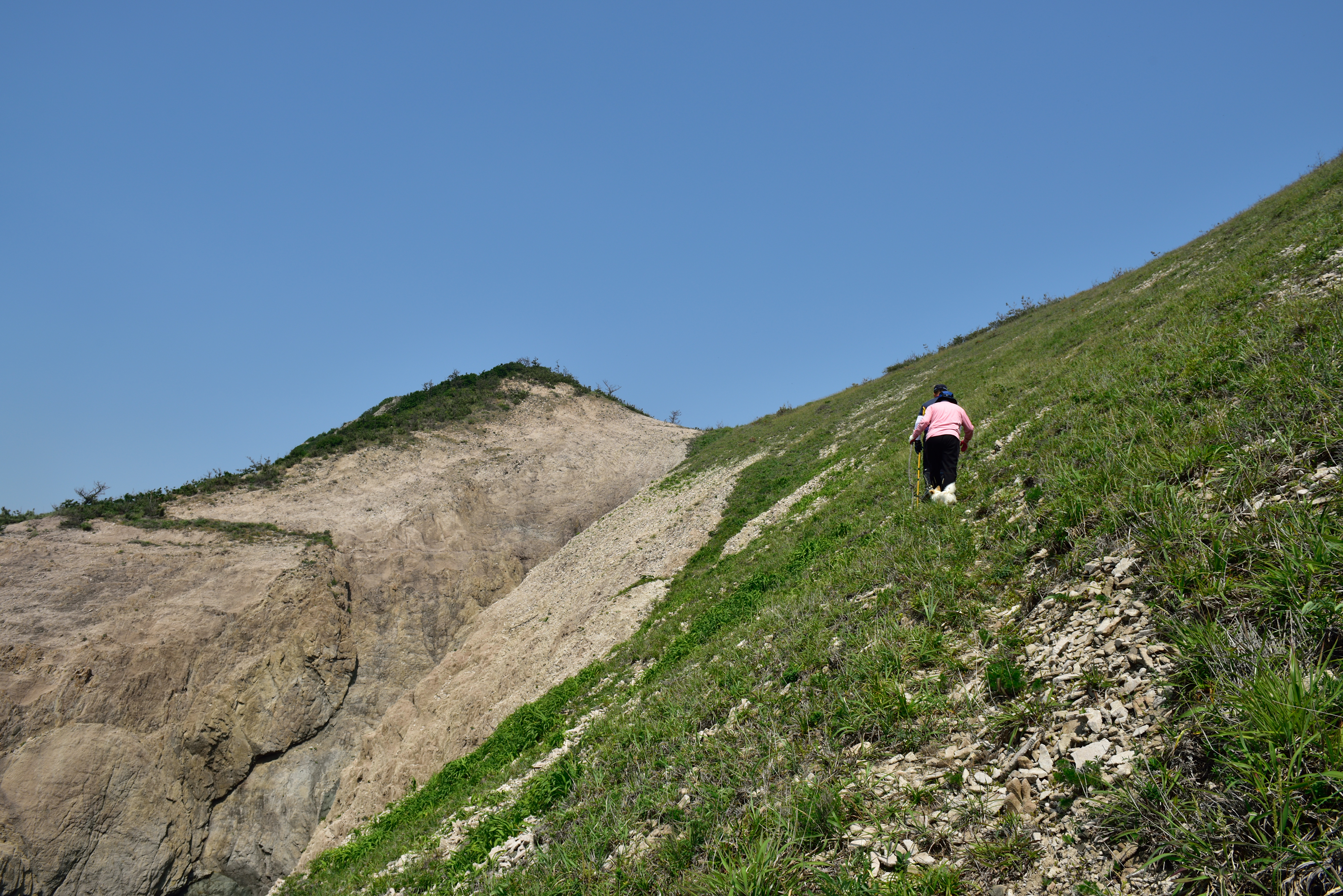 가파른 동북쪽 해안선을 끼며 산행을 시작했다. 가파른 비탈이긴 했지만 잡목이 없어 비교적 순탄한 산행이었다.