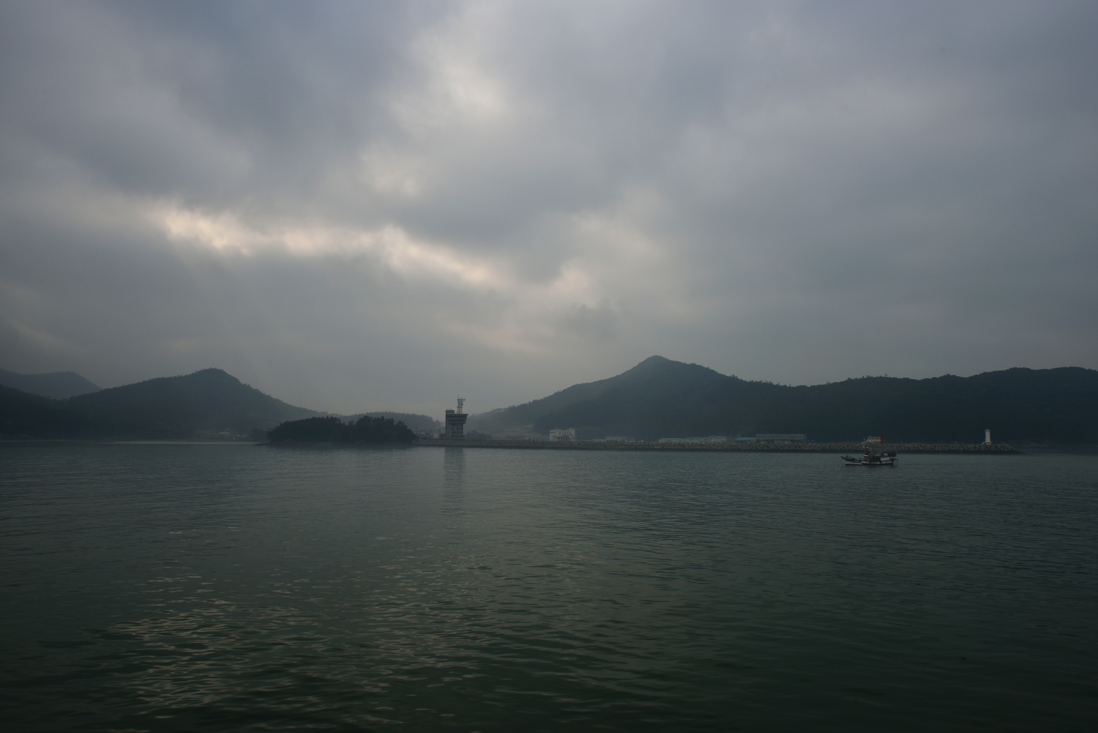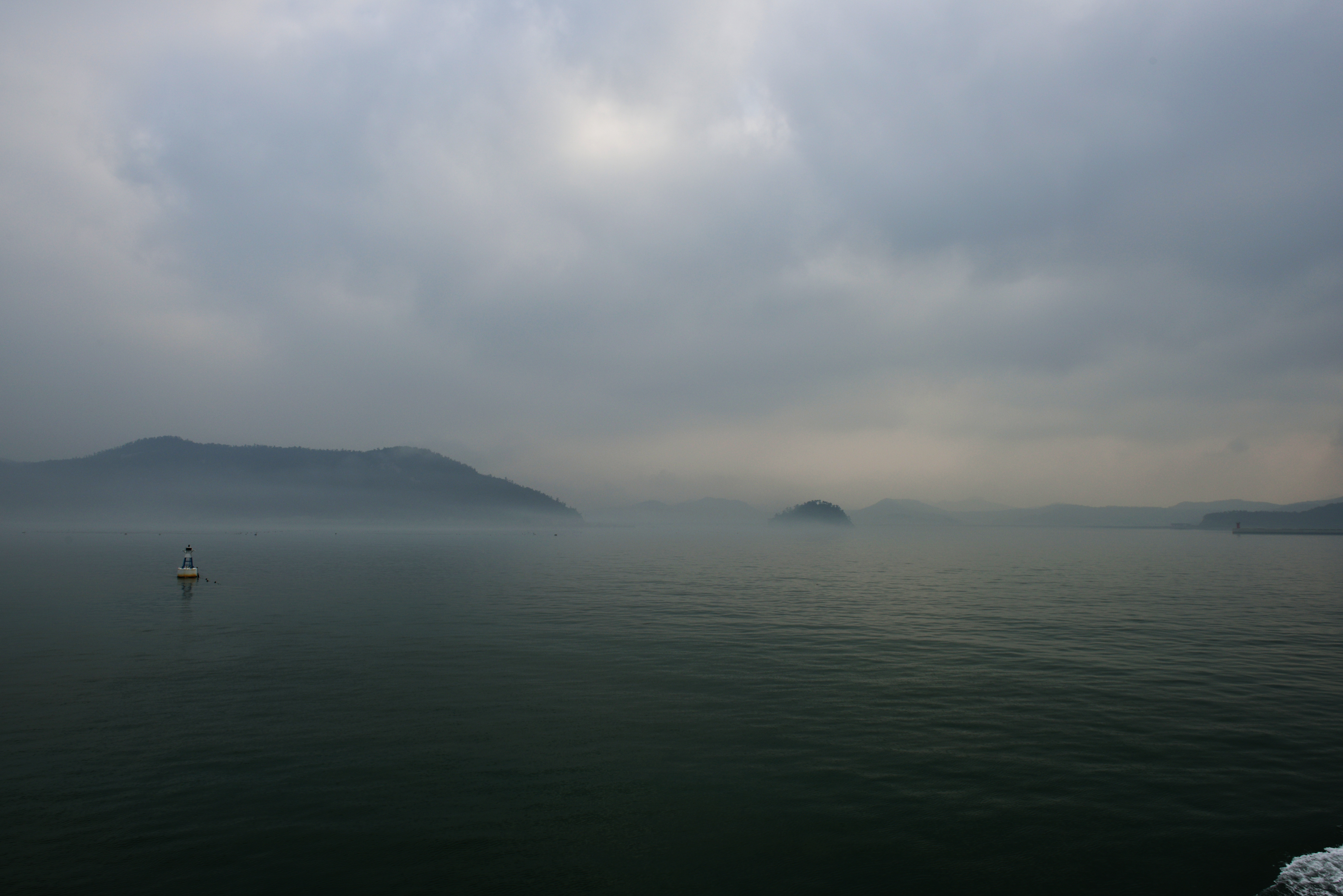 저녁 때가 되어 식사를 하려 몇 되지도 않은 식당들을 찾아 헤매었지만, 장사를 하지 않거나, 밥이 없다거나, 생선회나 탕이 주메뉴여서 밥사먹기가 여의치 않았다. 섬이란 특수성 때문이기도 하겠지만 친절하지도 않았고... 몇 년 전, 진도에 갔다가 그곳 식당과 숙박업소들의 불친절이 떠올라 기분이 그리 좋지 않았다. 하는 수없이 부두 앞 식당에서 간단하게 저녁을 먹고 부두에 나와 안개 쌓인 밤경치를 구경하다 잠이 들었다.