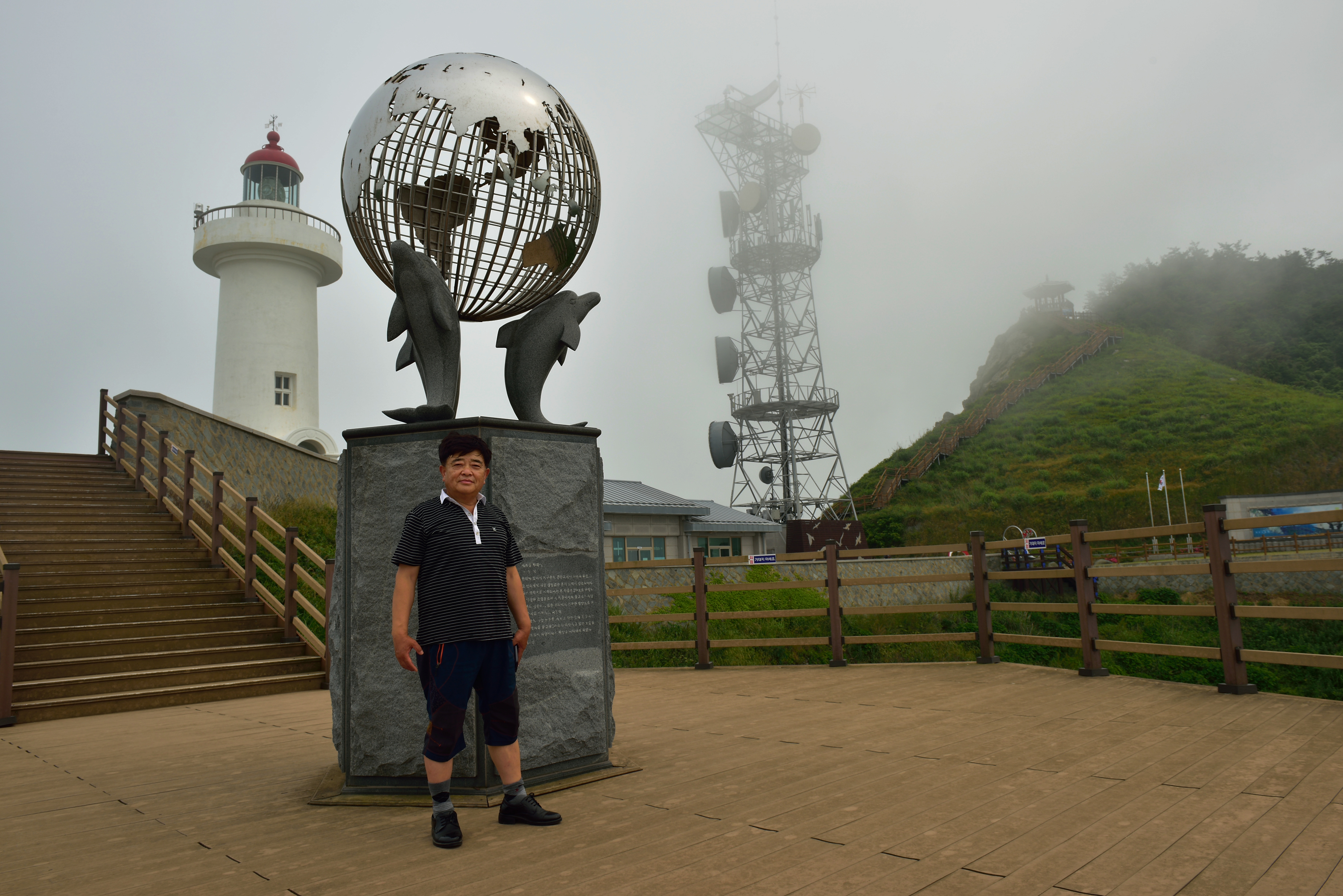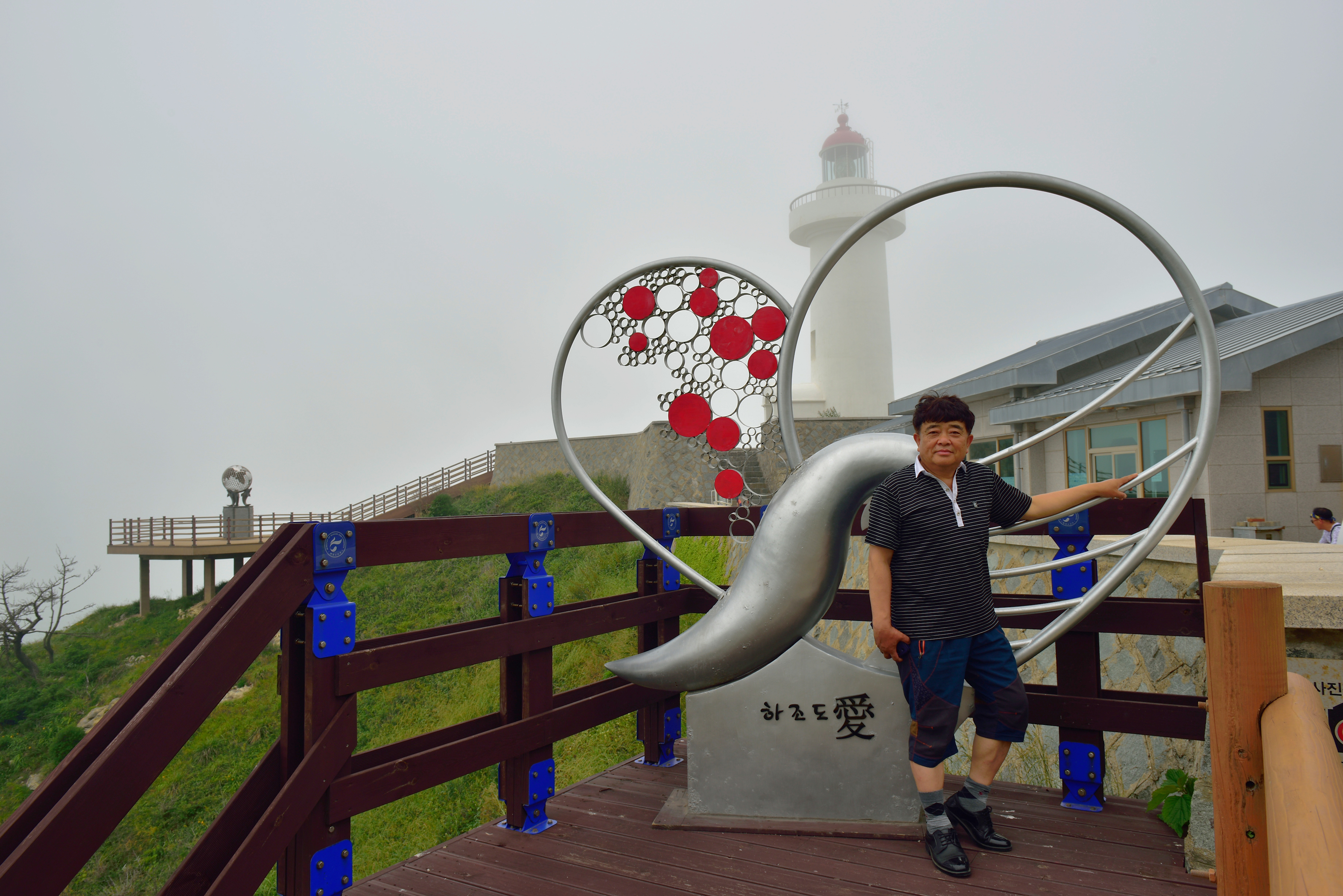 창유항에 내려 아름답다는 하조도 등대로 가서 그곳 경치를 구경하다가 상조도 두리산 전망대까지 이동하여 전망대를 한 바퀴 돌면서 다도해 전경을 360도로 돌아보았다. 크고 작은 섬들이 망망대해 해무 속에 아련히 떠있었다. 북쪽 멀리 한켠으로 진도가 길게 누워있었는데, 이곳에선 진도만 해도 나가서 살고 싶은 대처일 듯싶었다. 하기사 진도는 육지와 다리로 연결되었으니 섬이라 보기도 어렵겠지만...