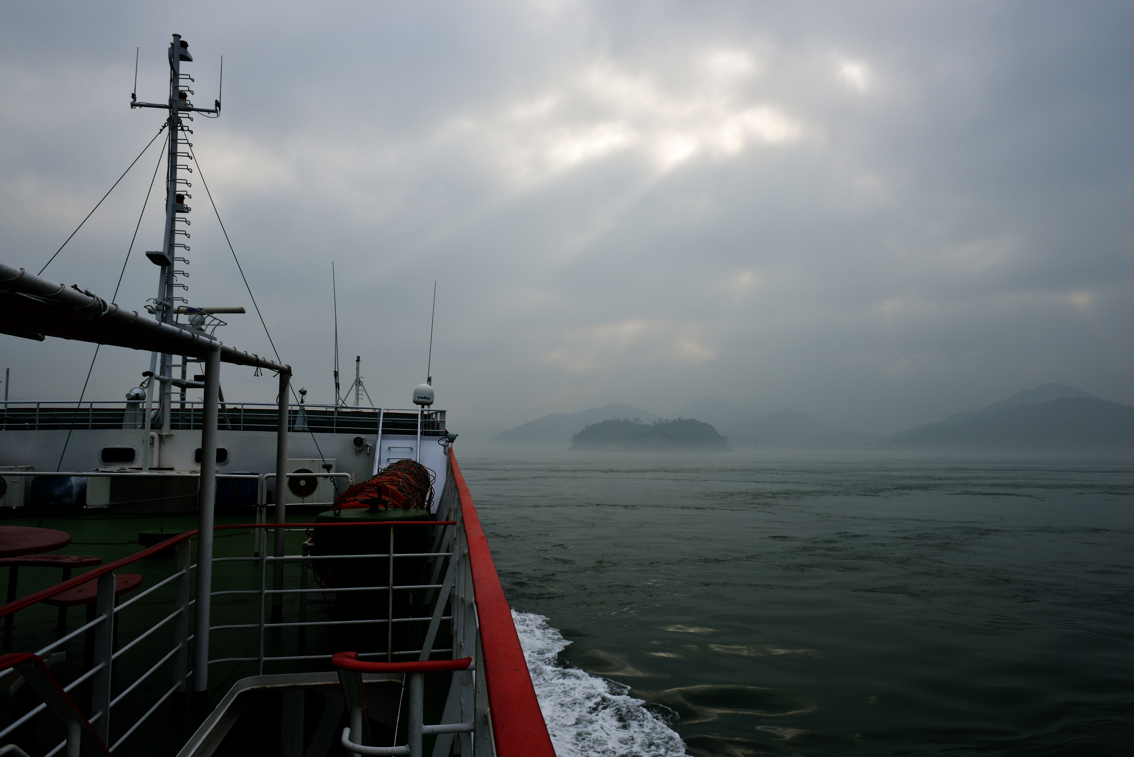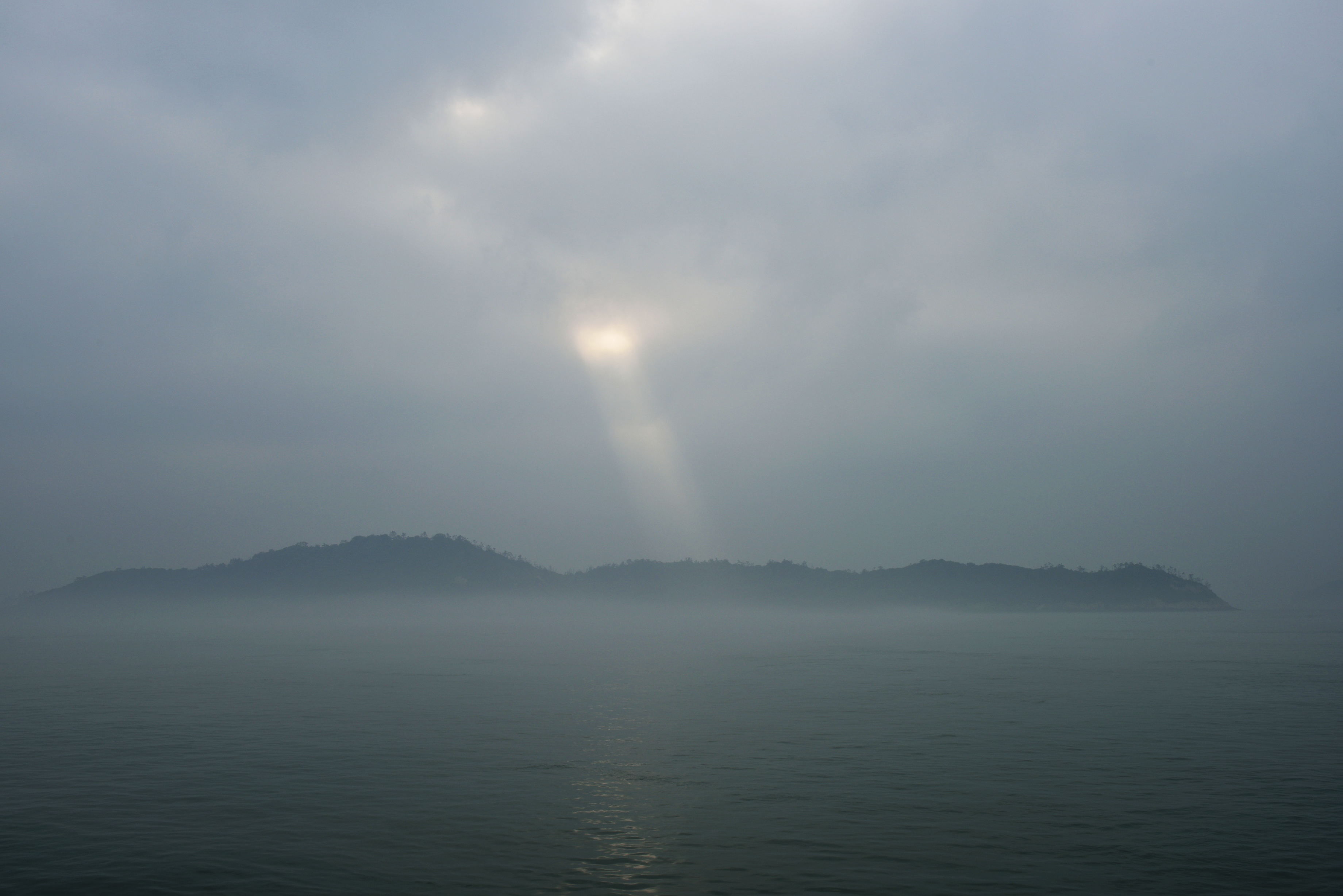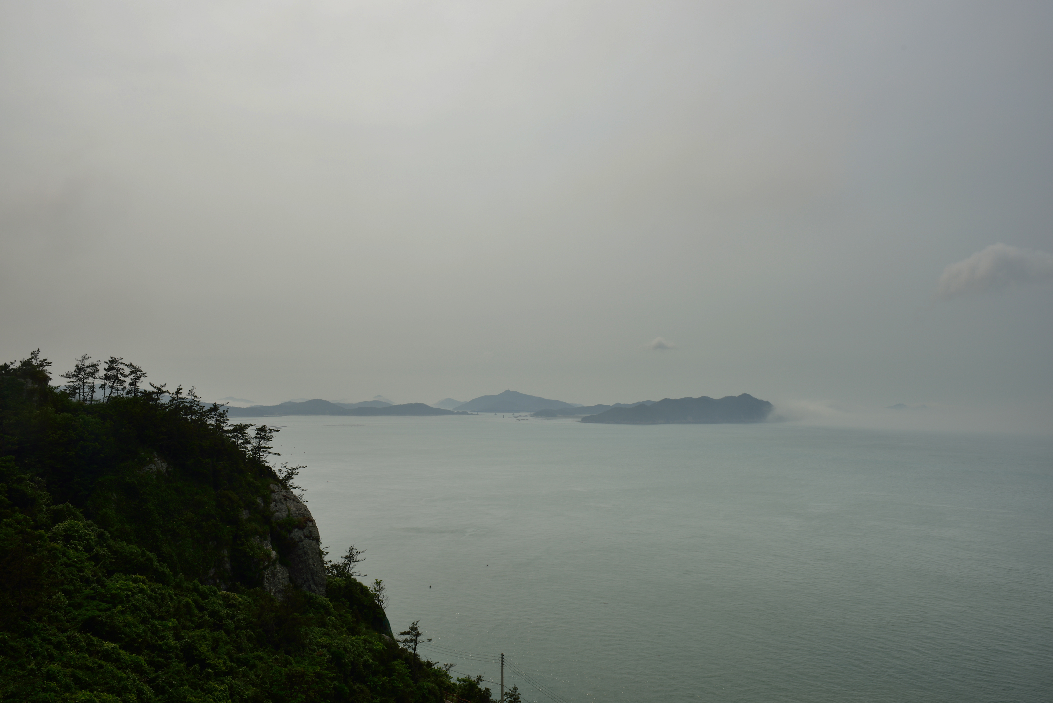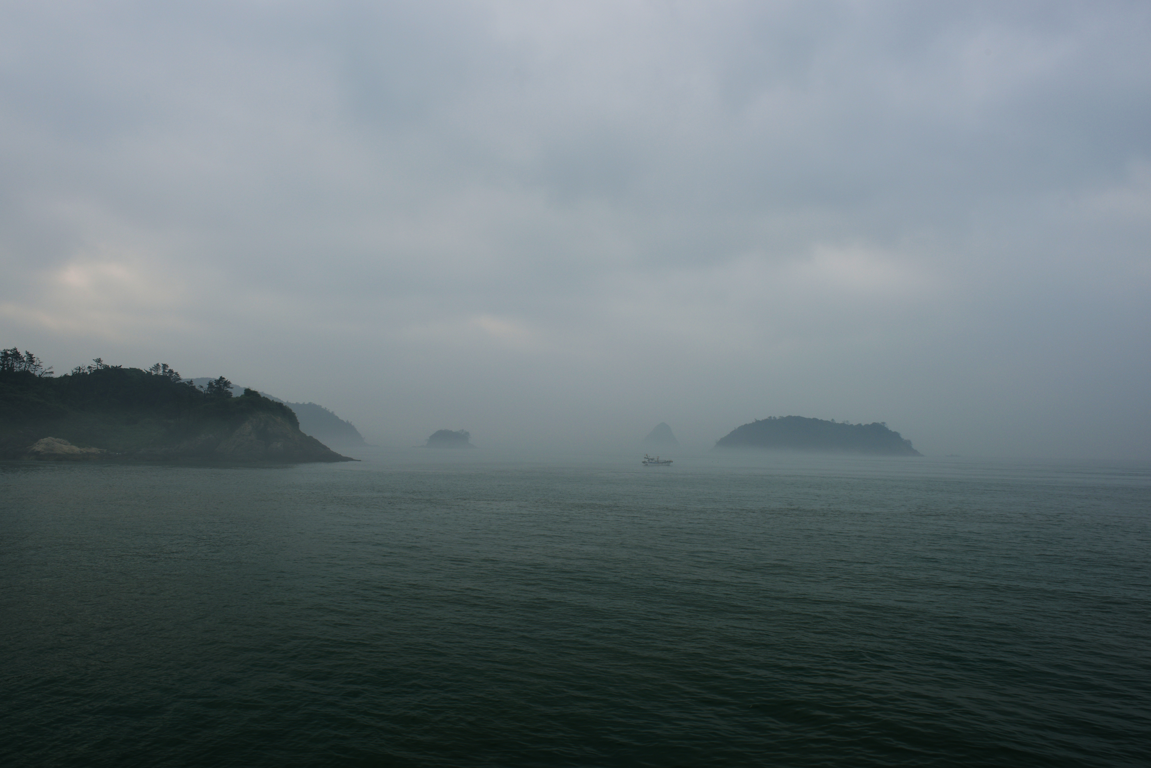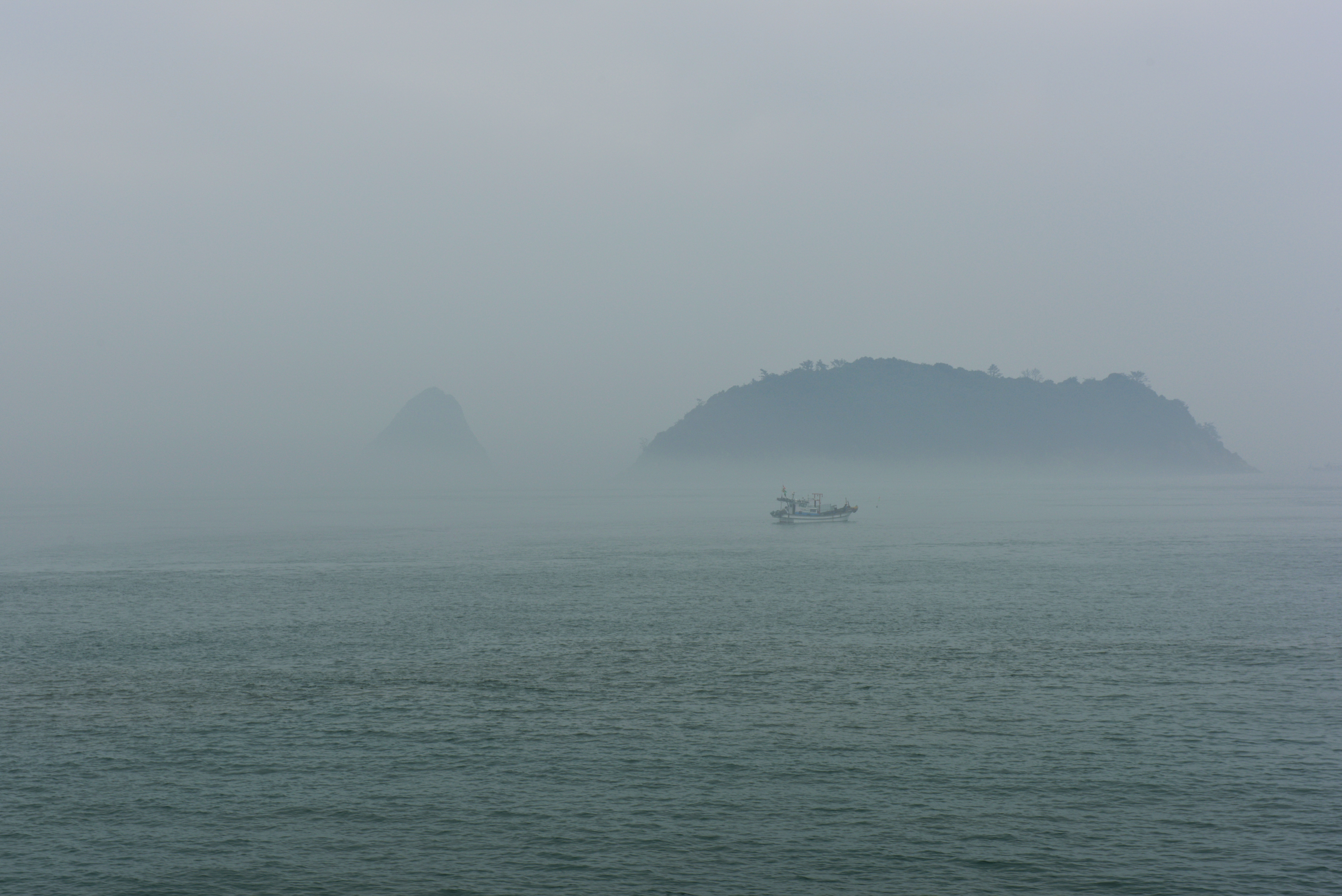 거차도 방향, 해무에 가려 희미하게 보였다.