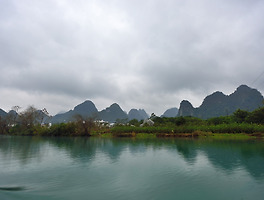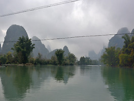 양삭을 떠나 계림으로 떠나는 길에도 간간이 비가 내렸다. 양삭 시내를 벗어나 산길로 접어들었는데, 구불구불한 산길에다 좁은 농로라 뒷자리에 앉았던 나는 차멀미에 시달렸다. 차창에 서린 뿌연 김 때문에 풍경도 볼 수 없어 더욱 답답했던 것도 원인 중에 하나였을 것이다. 가파른 산 경사 면마다 다랭이밭을 일구어 낑깡을 심었는데, 냉해를 방지하기 위해 나무마다 비닐을 덮어 씌웠다. 골짜기를 넘고 넘으며 도착한 곳이 상공산. 주차장으로부터 높이 50여 미터 정도 되는 가파른 산이었는데 꼭대기까지 계단을 통해서 올라갔다. 한국인들이 개발한 관광명소라는데, 유명한 탓인지 계단 입구에 매표소까지 만들었다. 우리나라 도립공원쯤 될라나, 아무튼 인민들이 평등하고 모든 것을 공유해야 할 공산주의 국가임에도 중국인들의 상업적 수완은 놀라웠다. 가파른 계단을 돌고 돌아 산 정상에 오르니, 산 아래로 일망무제 탁 트인 곳에 굽이굽이 커다란 냇물이 휘돌아나가고, 물줄기를 에워싼 기암 봉우리들이 끝없이 이어져 까마득히 멀어지고 있었다. 낮게 드리운 비구름 때문에 기암 연봉들과 냇물이 어우러진 최고의 경치들을 보지 못하는 것이 한이었다. 카메라를 오른쪽 풍경에서부터 왼쪽으로 돌려 찍으면서 한 컷에 담지 못하는 아쉬움이 매우 컸다. 날씨만 맑았으면 아마도 천상의 모습을 담았을 것만 같았다.