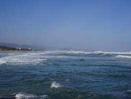 동해 바다 삼각파도, 백두파였다. 파도의 머리가 앞으로 꺾여 바람에 날리면서 해안으로 몰려왔다.