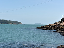 동거차 항만 안에서 바라보이는 조도 부근의 바다