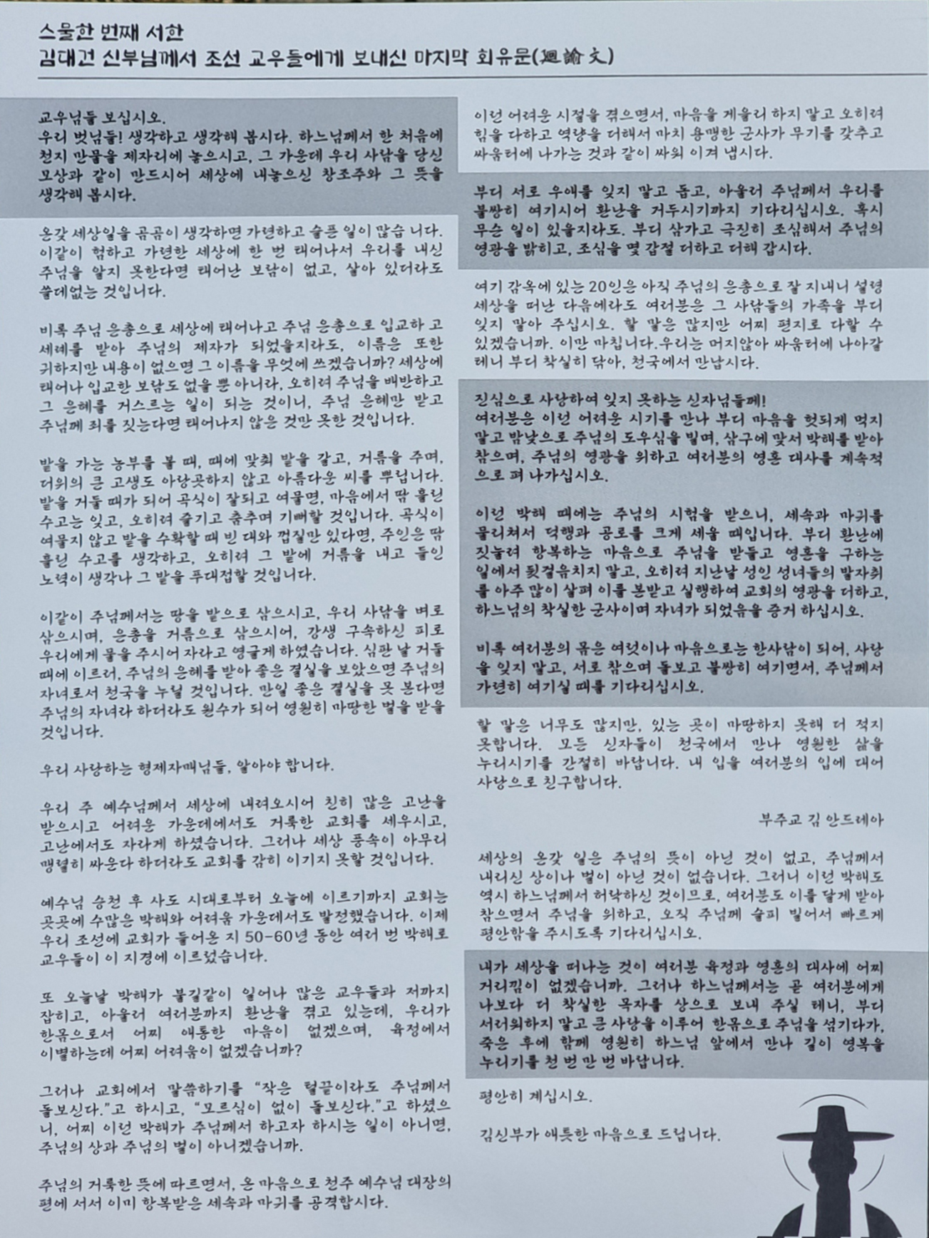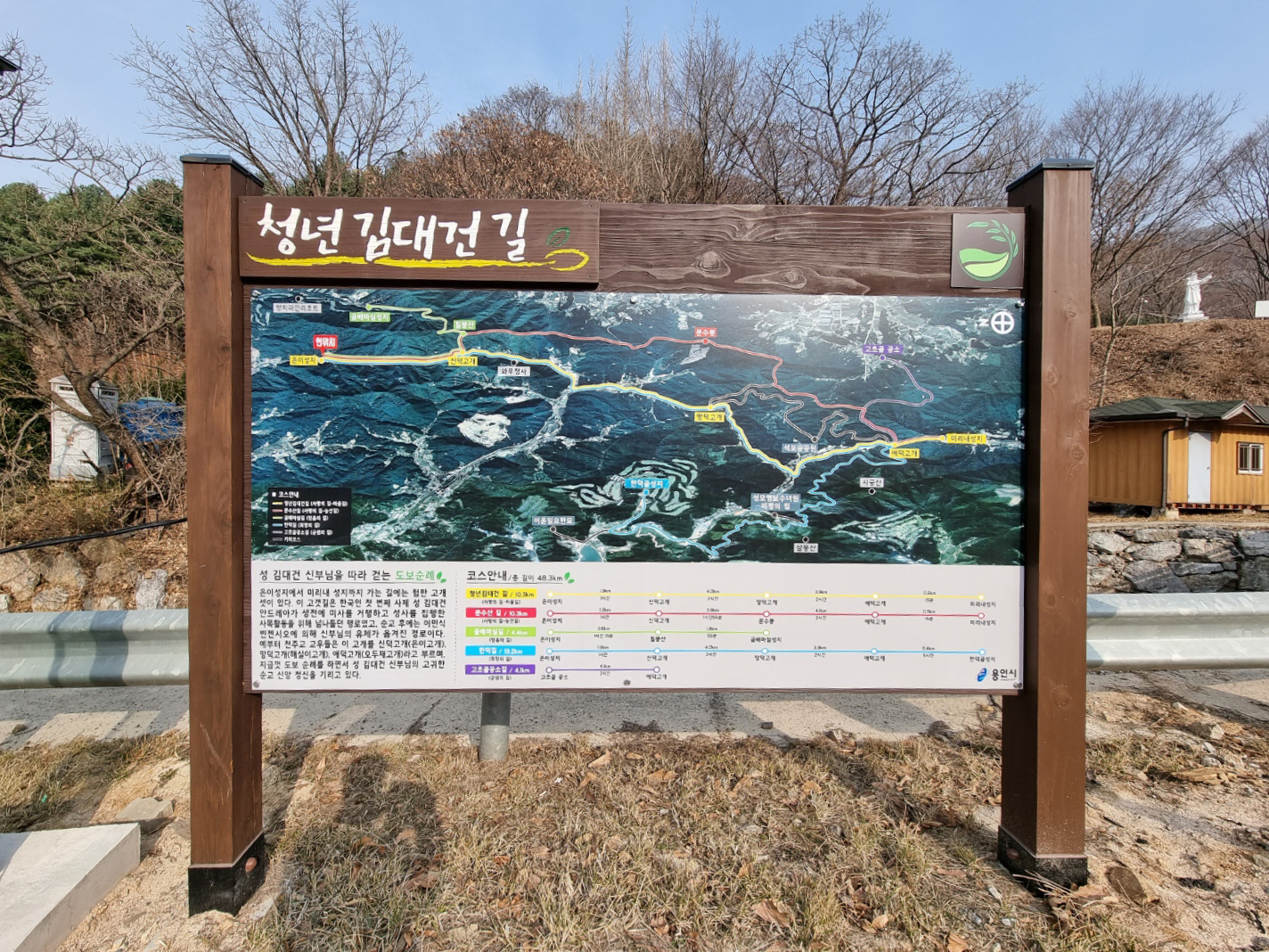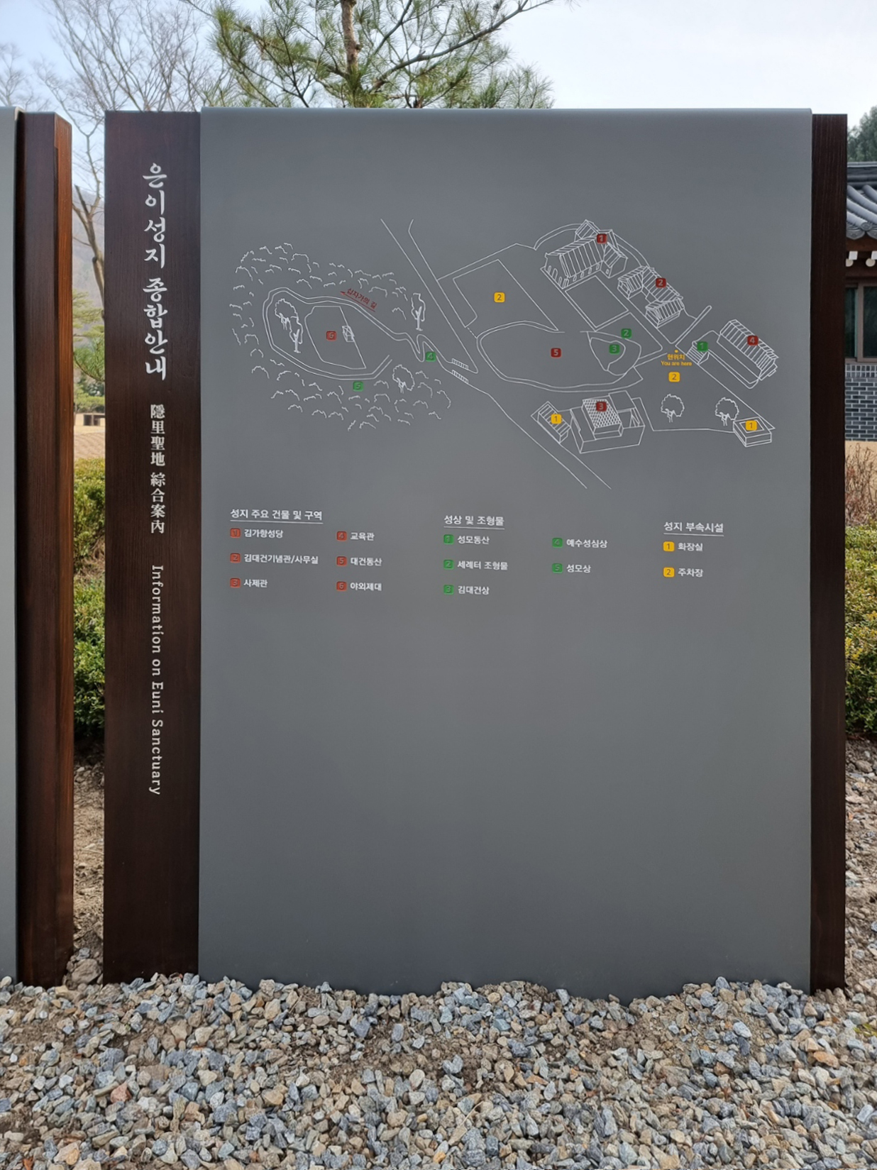 낮 기온이 올라서인지 미세먼지가 극성을 부렸다. 코로나에 미세먼지, 집 주변 가까운 거리 산책마저 힘든 날이었다. 그래서 찾은 은이 마을 은이 성지였다. 은이(숨을 隱, 마을 里) 마을은 천주교 신자들이 숨어 살아서 마을 이름이 그렇다고 한다. 이곳에서 김대건 안드레아 신부님이 1836년 프랑스 선교사로 최초 입국한 모방 신부님이 15세 소년 김대건에 '안드레아'라는 세례명으로 세례성사와 첫 영성체를 주고, 신학생으로 선발한 곳이다.