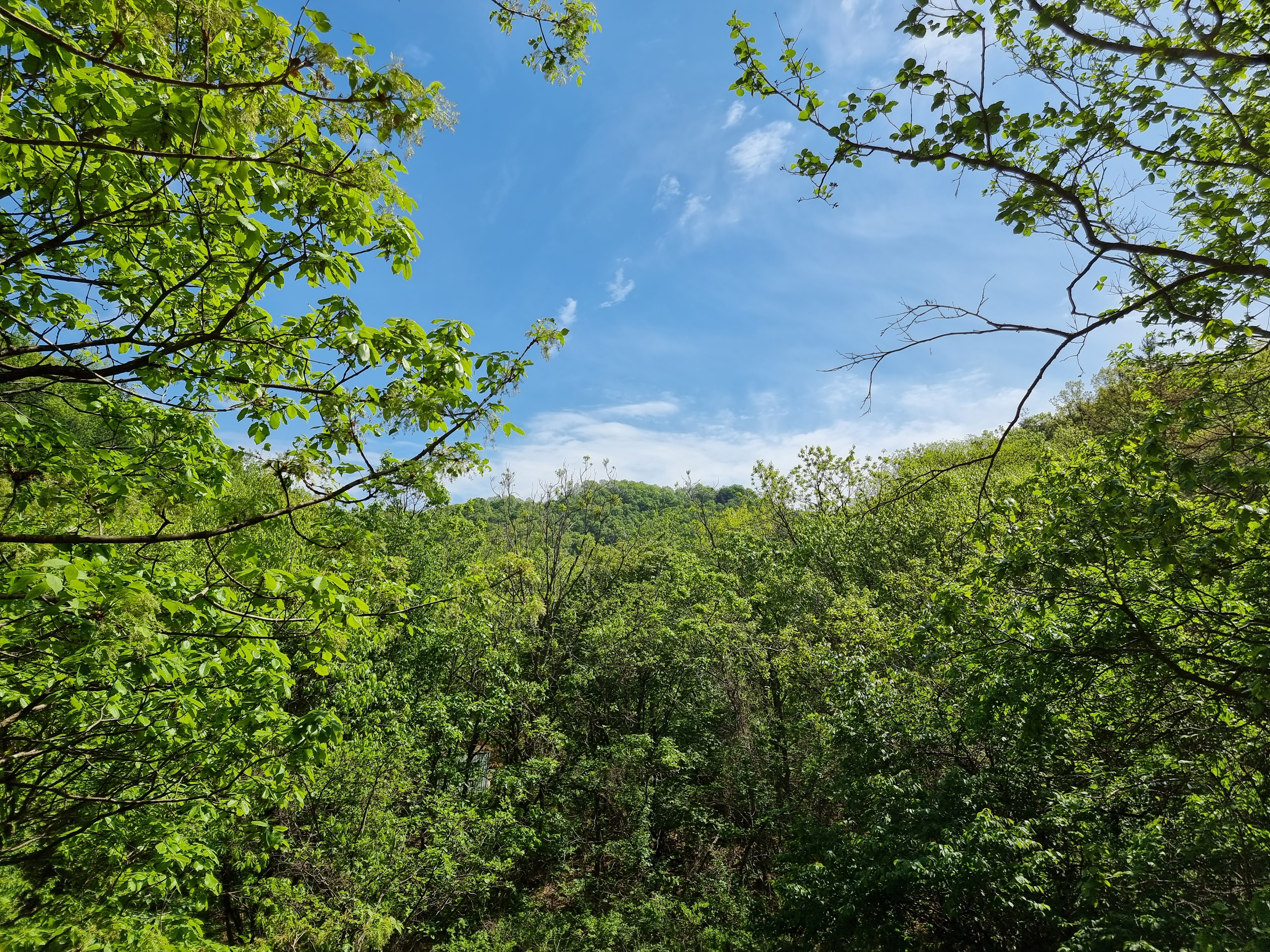 숲 사이로 드러난 청명한 하늘