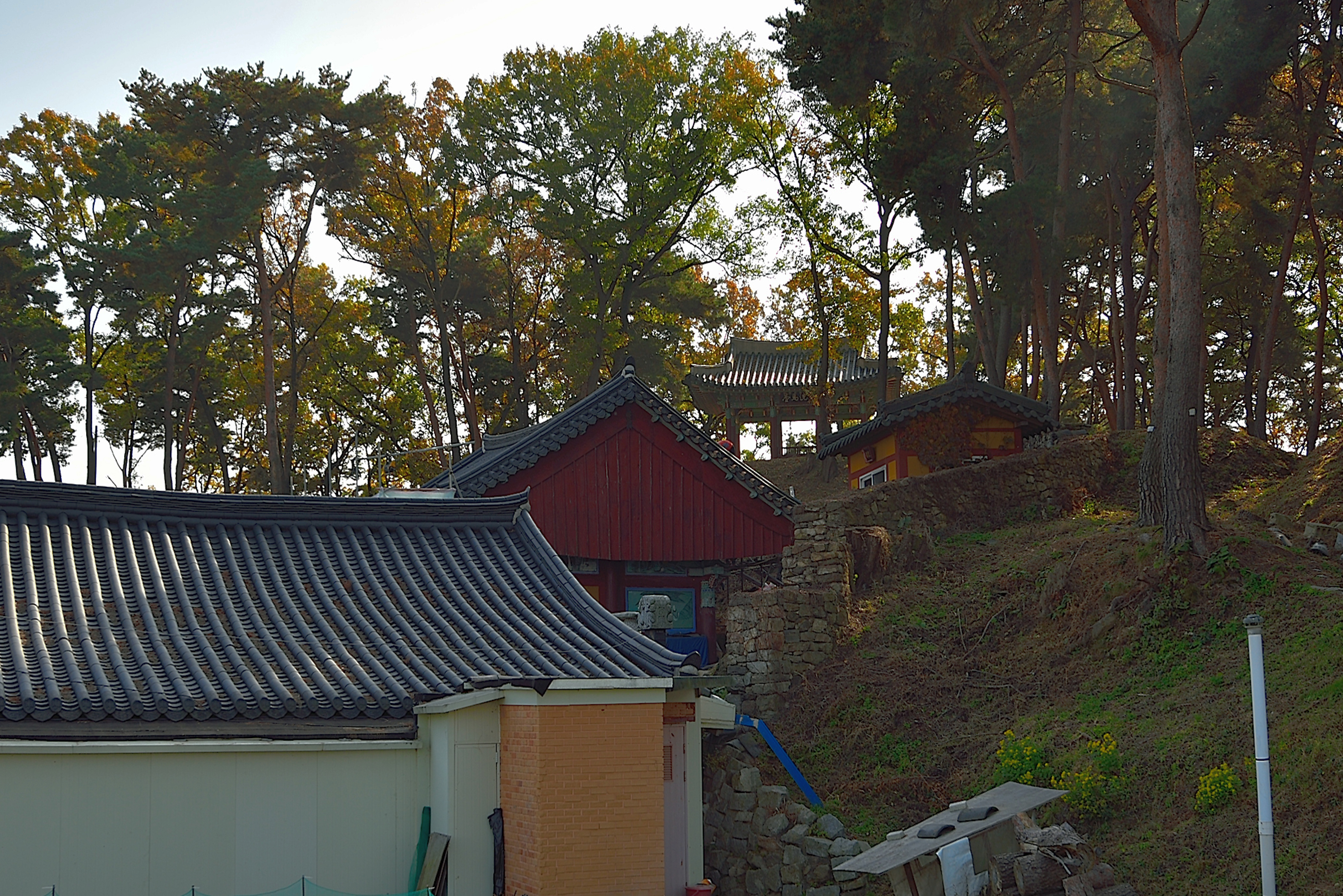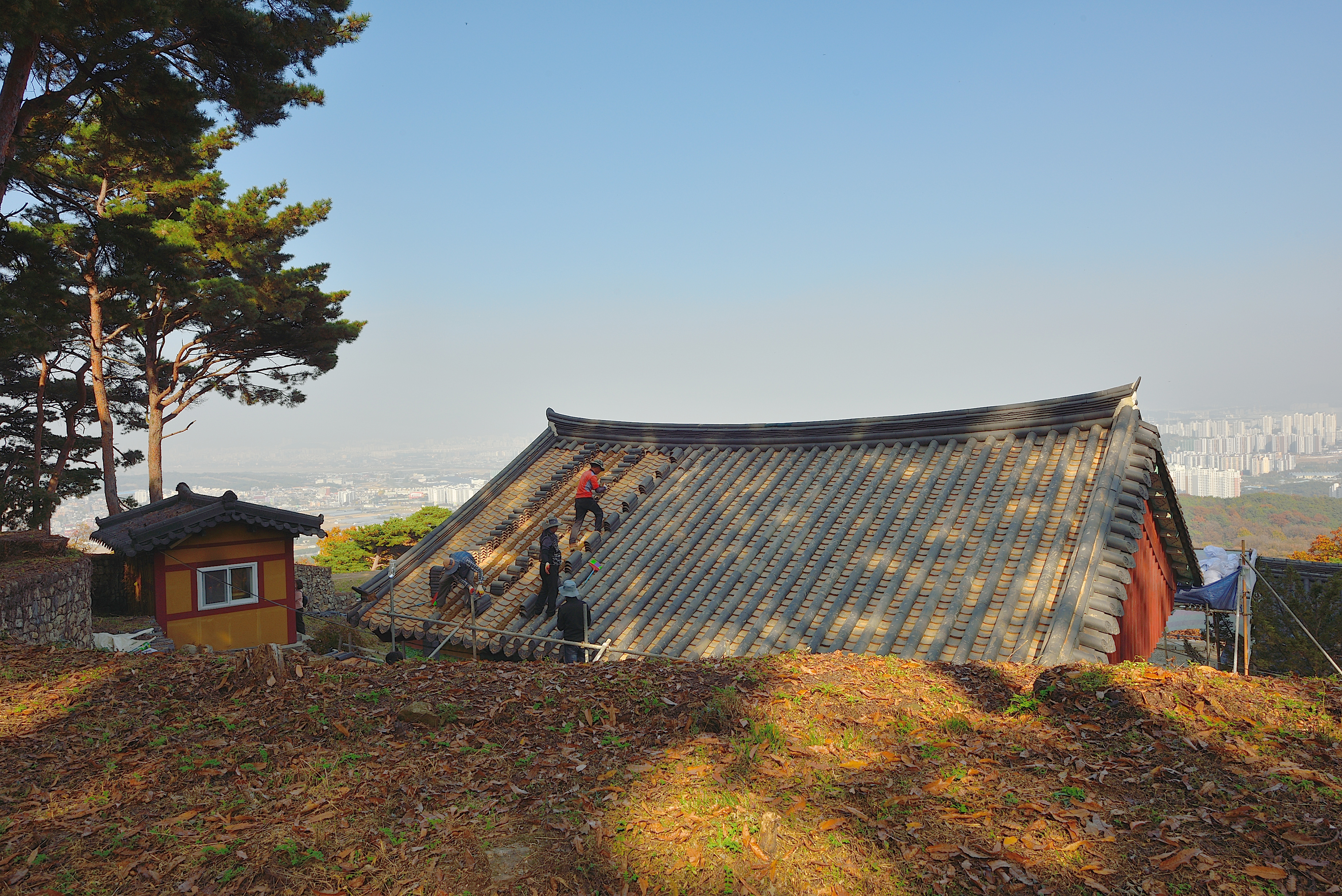 세마대 북쪽 바로 아래 있는 보적사는 지붕 보수공사가 한창이었다.