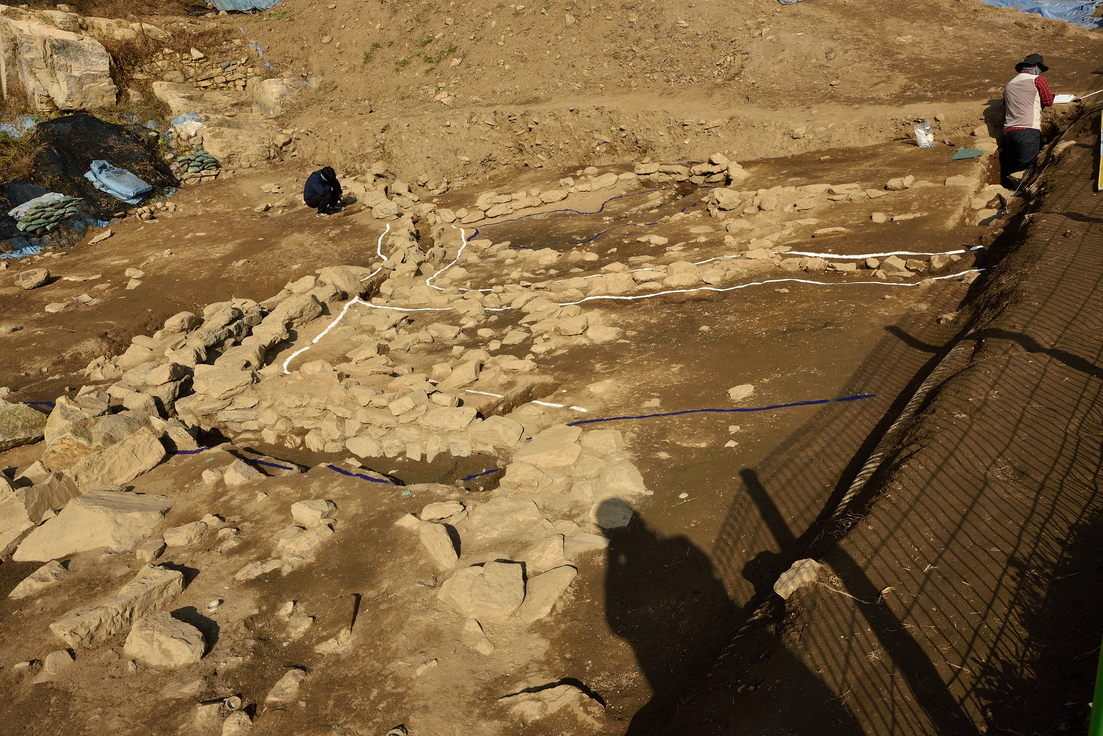 북쪽 성벽, 발굴 보수 작업이 한창이었다.