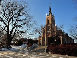 삼존석굴 길목에 있는 한밤 돌담마을 홍천뢰 솔숲