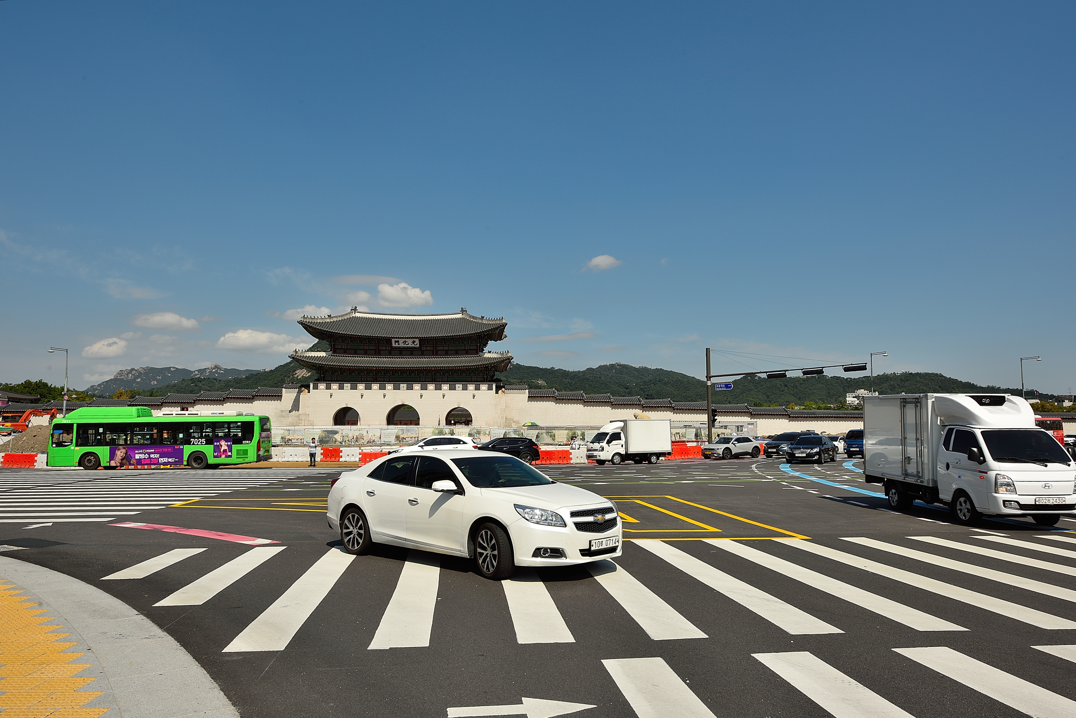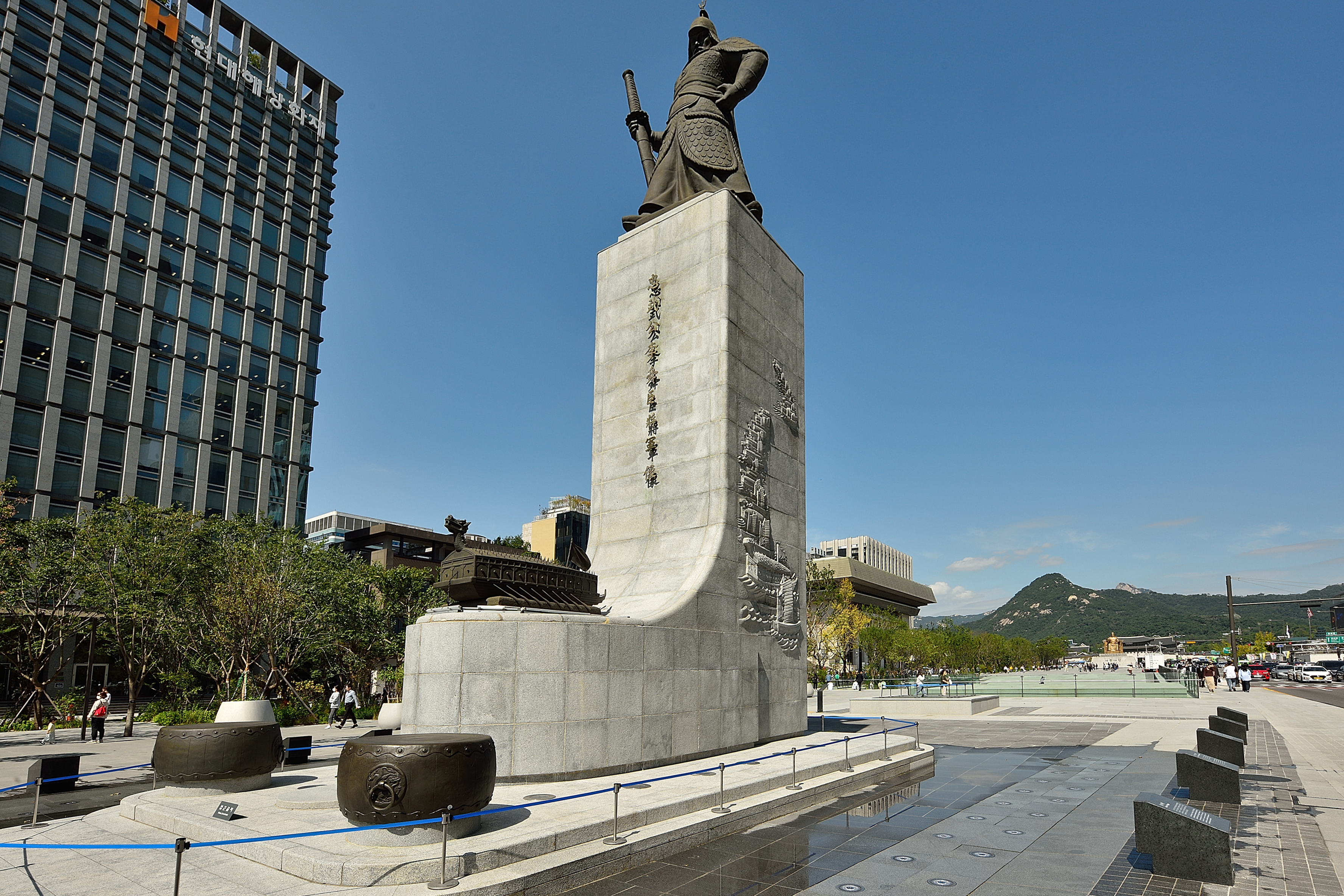 광화문 앞 광장이 달라졌다. 세종문화회관 쪽 도로는 나무들이 울창한 숲으로 바뀌었다. 광장 왼쪽으로 나무를 심은 커다란 돌화분도 듬성듬성 놓여 있었다. 필요할 때 시위 방지용으로 쉽게 옮길 수도 있다는 말도 있어서 보기에 그리 좋아 보이지 않았다. 언제나 듬직하게 광화문을 지키고 계신 이순신 장군 동상을 지나 경복궁으로 향했다. 18년 독재자 박정희가 세운 장군의 동상은 개선의 여지가 많음에도 반세기 이상을 그 자리에 우뚝 서 오늘도 부릅뜨신 눈으로 세종로를 지키고 있다. 오른손으로 잡은 장검과 중국 장수의 갑옷, 거북선 아래 엎어 놓은 북 등, 수많은 오류가 지적되고 있음에도 무심한 세월은 호국의 신 충무공 곁을 비껴서 지나간다.