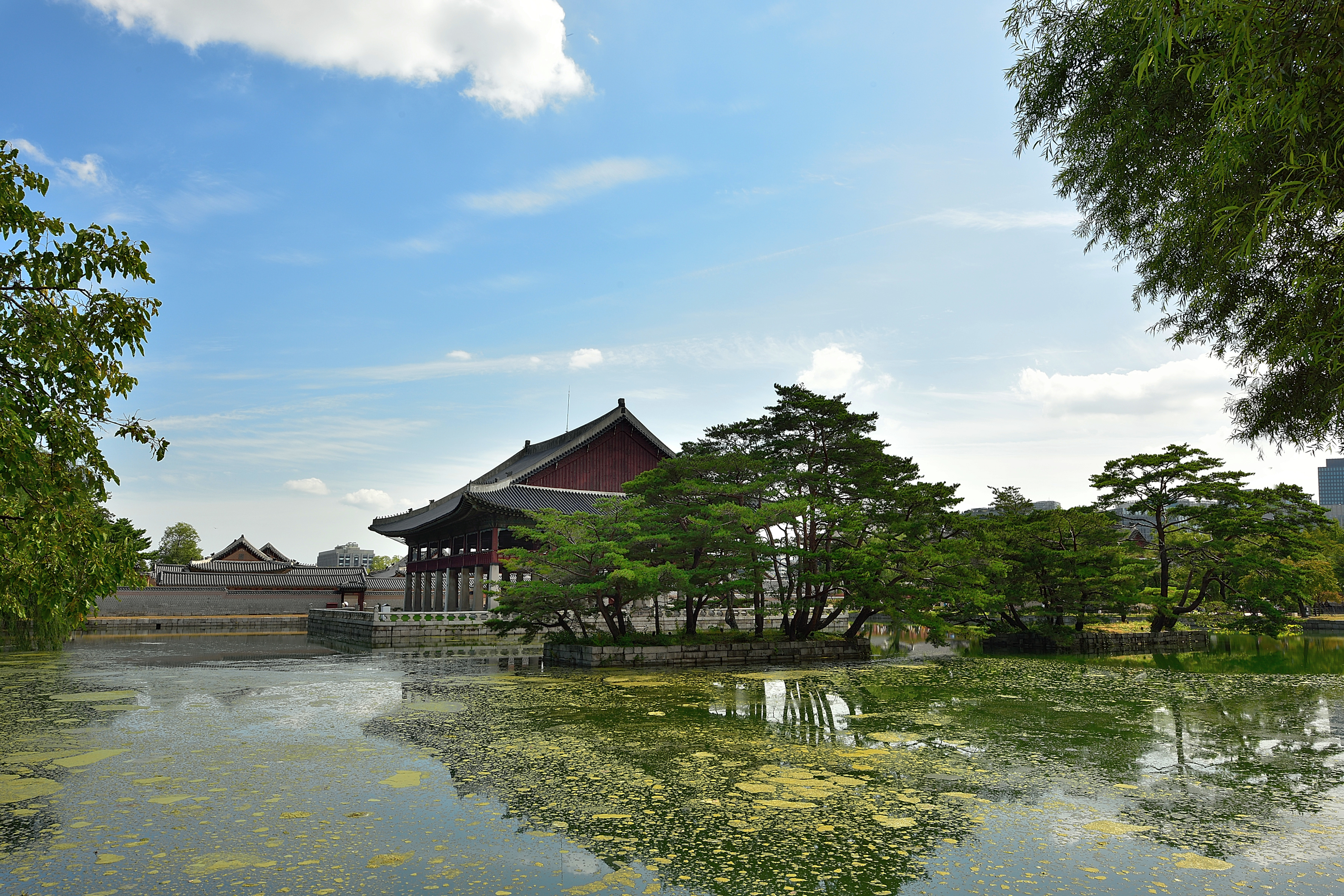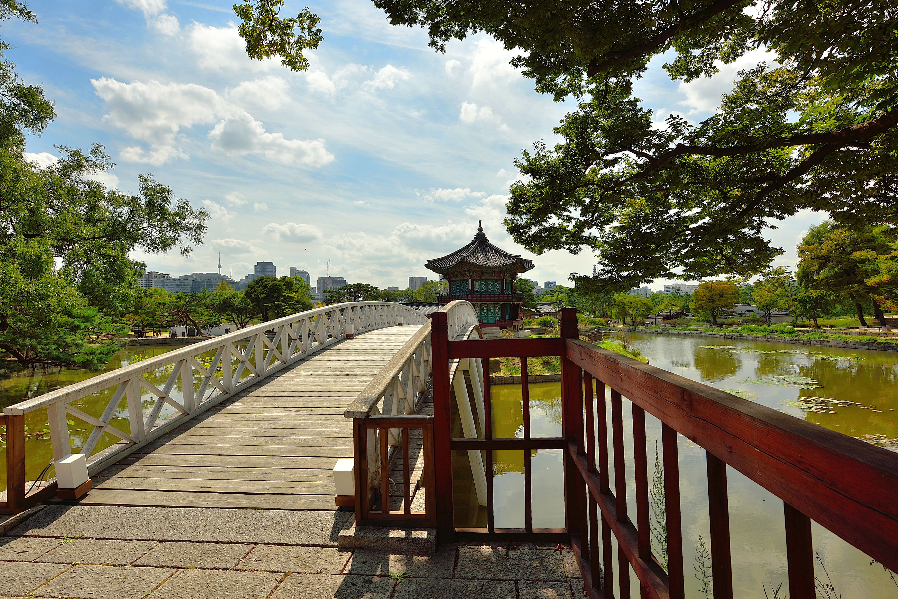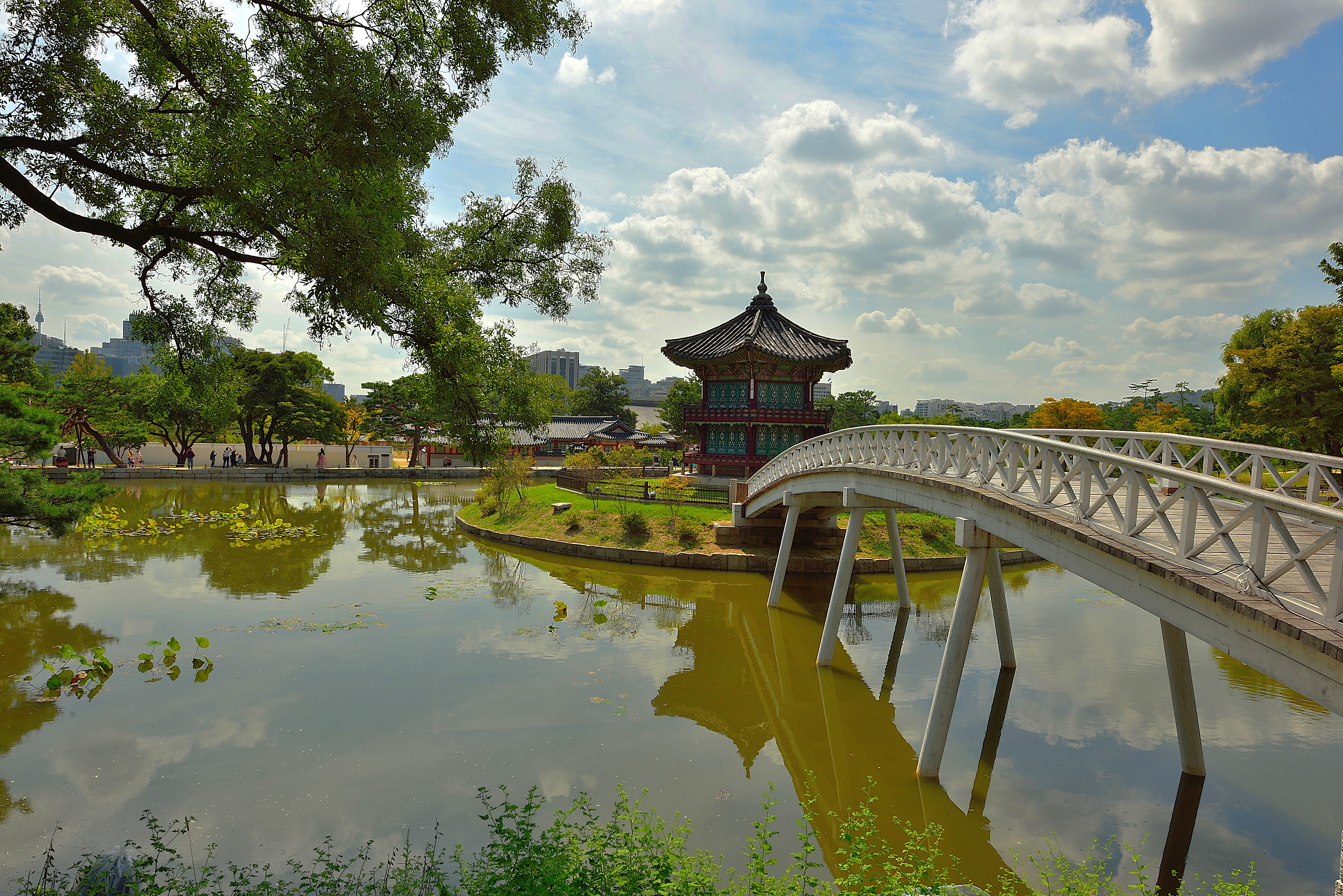 그동안, 다리 공사를 끝낸 향원정