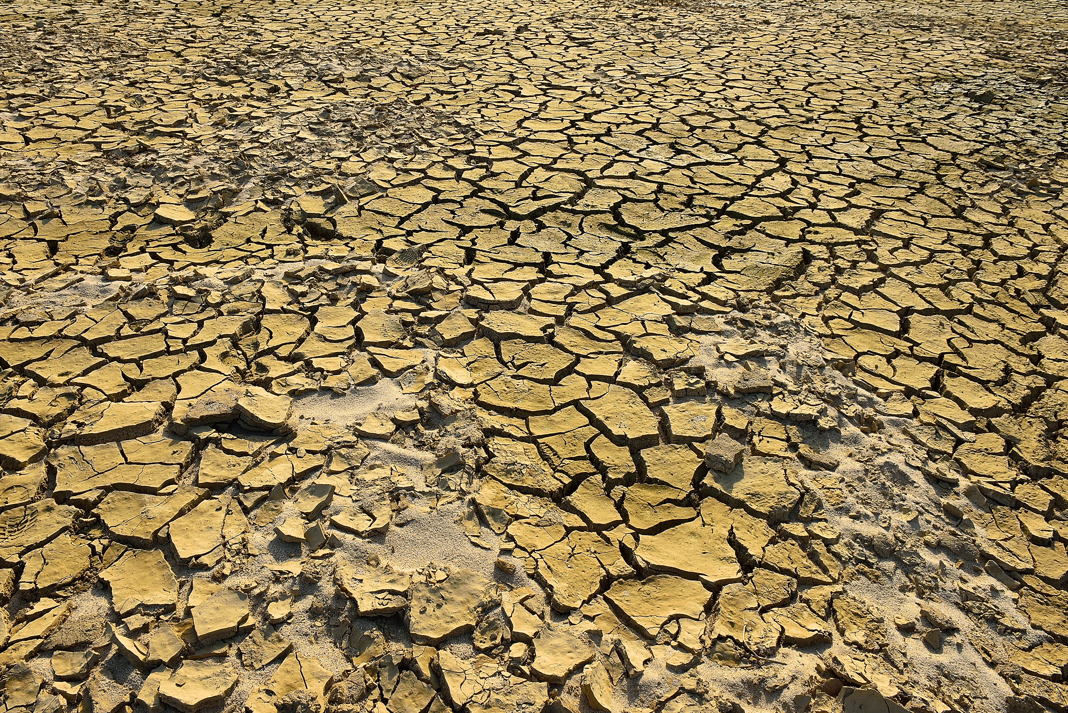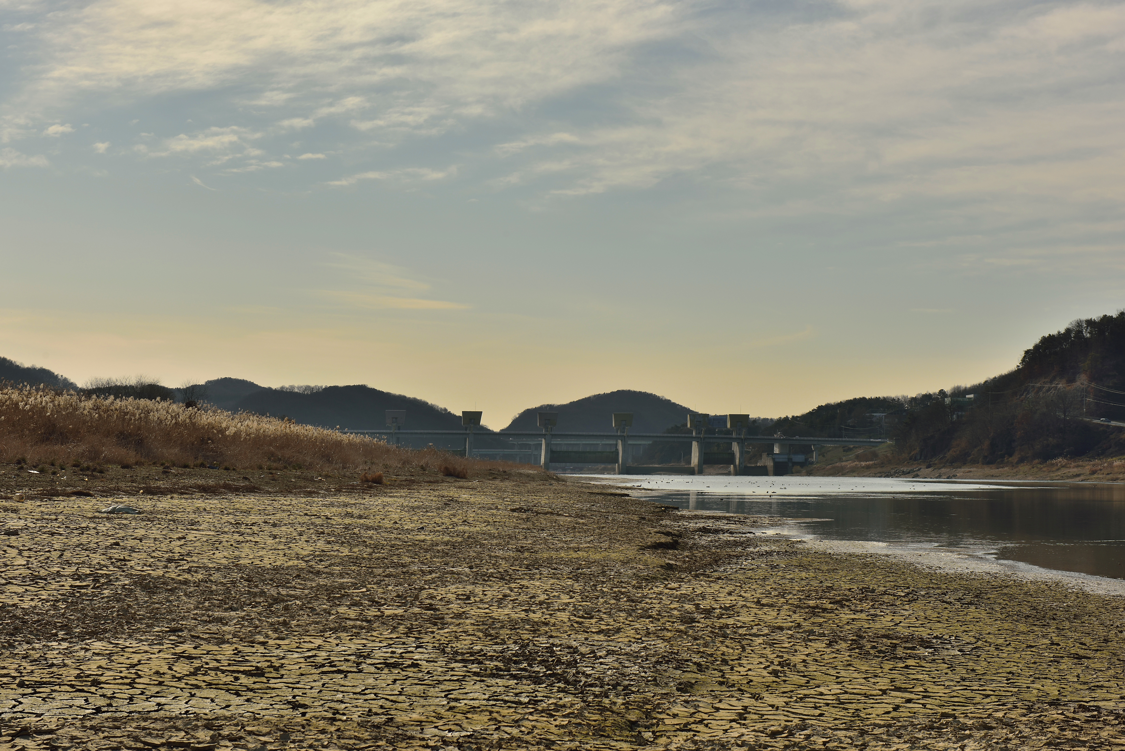 물이 말라 강변의 진흙뻘이 거북등처럼 갈라져 있다. 공주보를 닫았을 때 뻘이 모래 위에 쌓였다가 마르면서 갈라져 흉칙스러웠다.