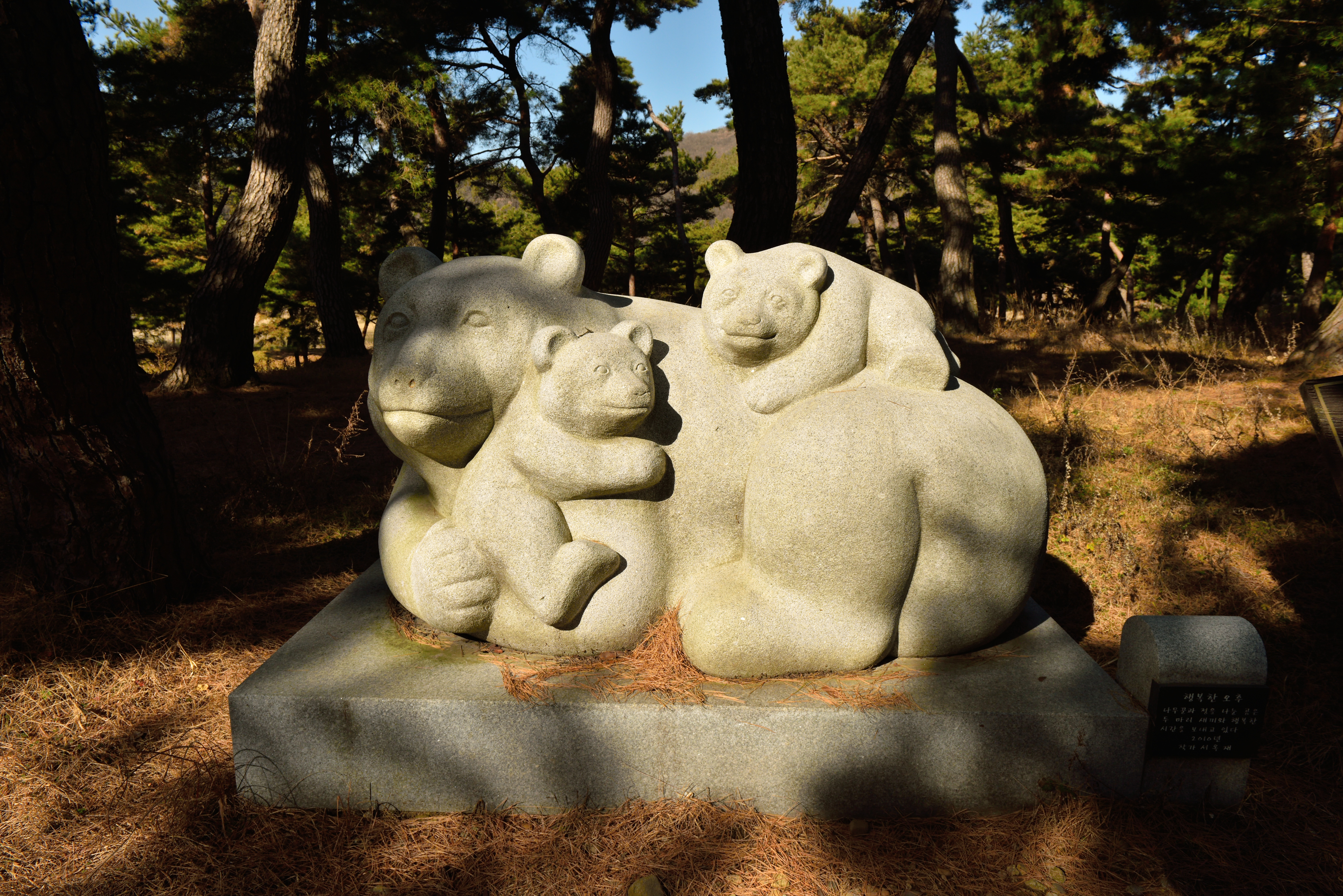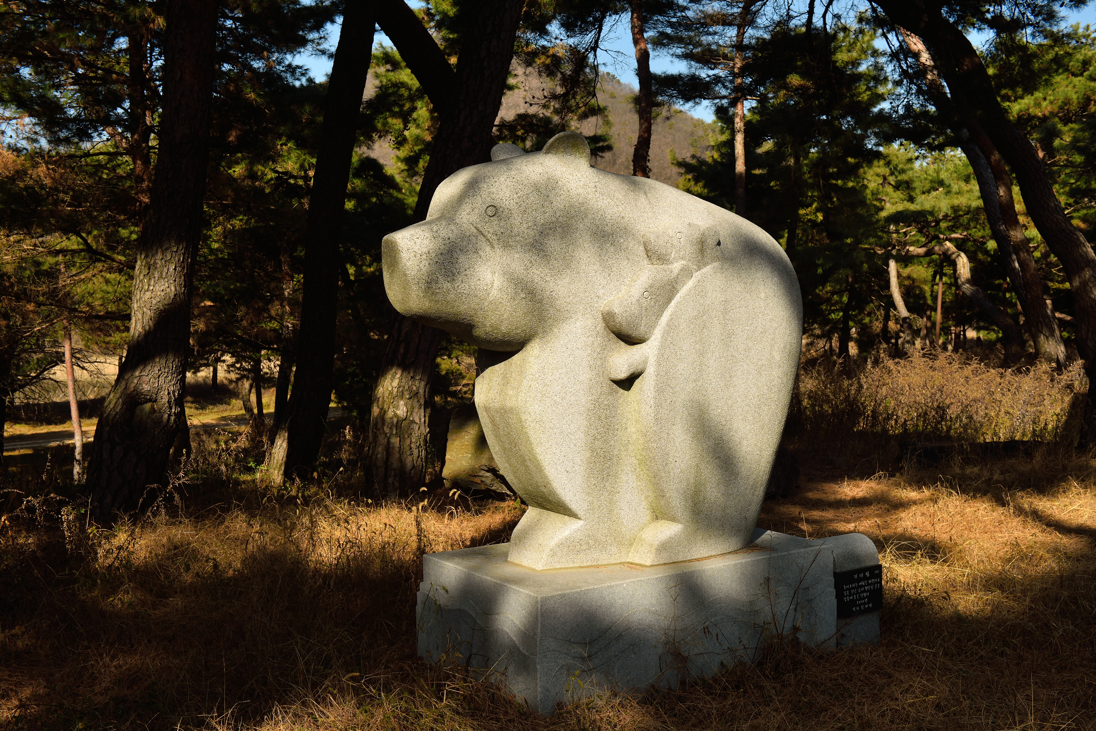 숲길 주변의 곰 석상