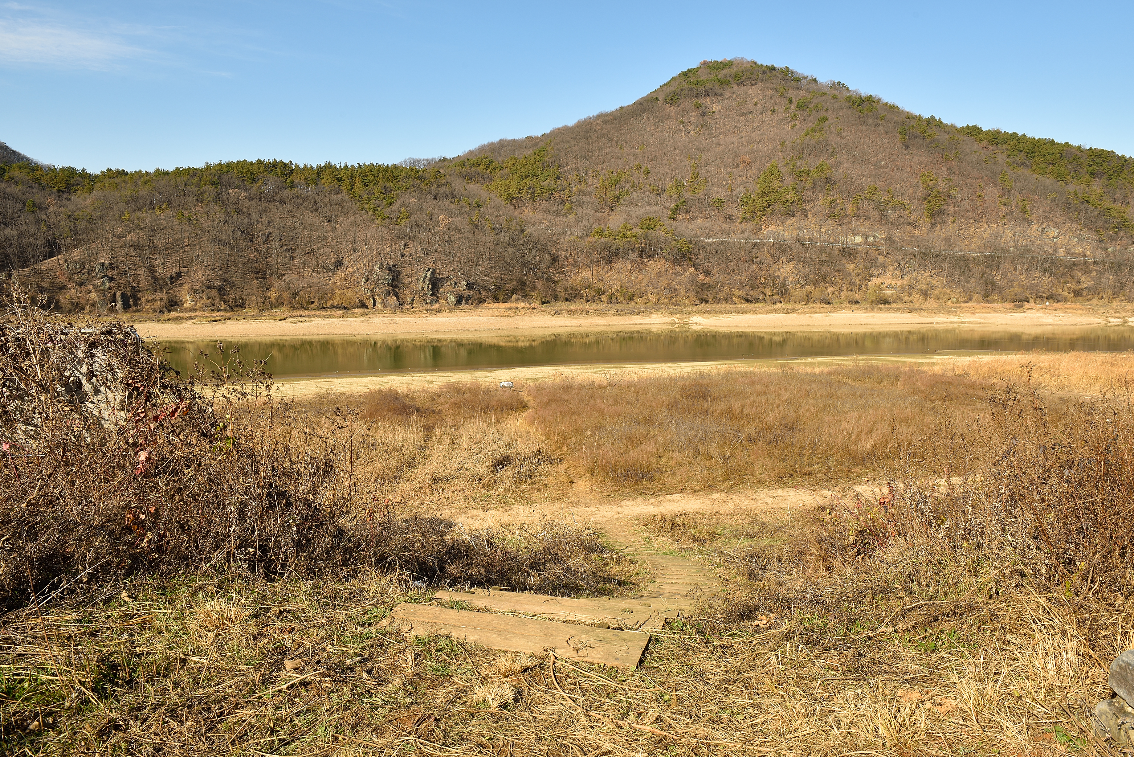 곰나루는 웅진(熊津)이다. 옛날엔 웅진이라 불렀다. 지금은 곰을 한자어 공(公)으로 음차하여 공주(公州)라 부른다. 백제를 세운 온조왕이 부여의 후예이고 보면, 단군 신화에 나오는 토템 신앙과도 연관이 있어 보인다. 아마도 부여족은 곰을 숭배했을 것이다. 내 멋대로 해석하며 곰사당을 둘러보고 큰길을 따라 나루 전망대까지 걸어 수신단을 보았다. 수신단 아래 계단으로 내려가 갈수기로 물이 마른 고마마루를 잠시 걸었다. 곰나루... 웅진이 바로 이곳이었다.