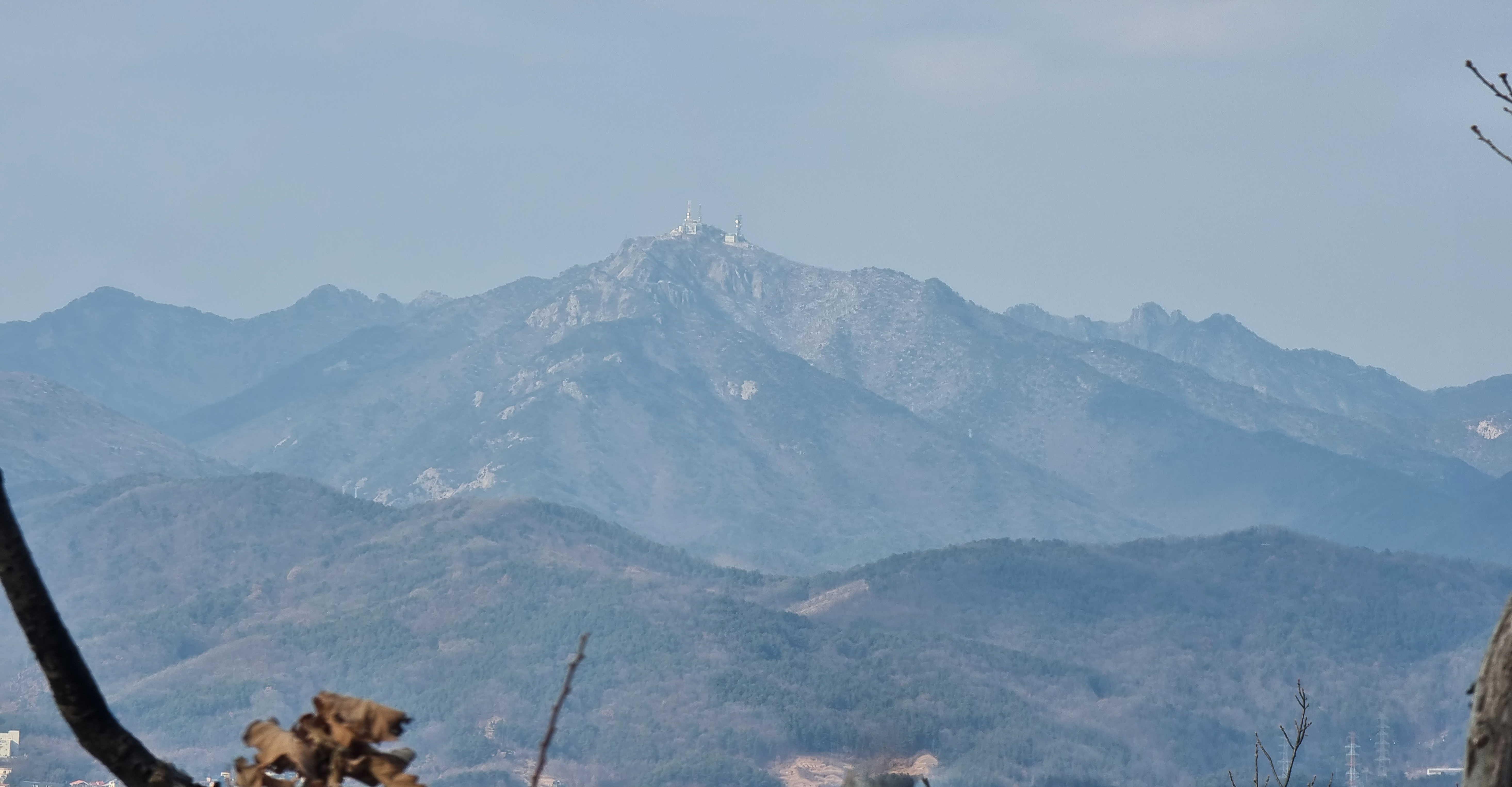 되돌아 내려오면서 북쪽을 보니 계룡산이 지척이었다. 왼쪽부터 연천봉 문필봉, 가운데가 천황봉 오른쪽엔 삼불봉...