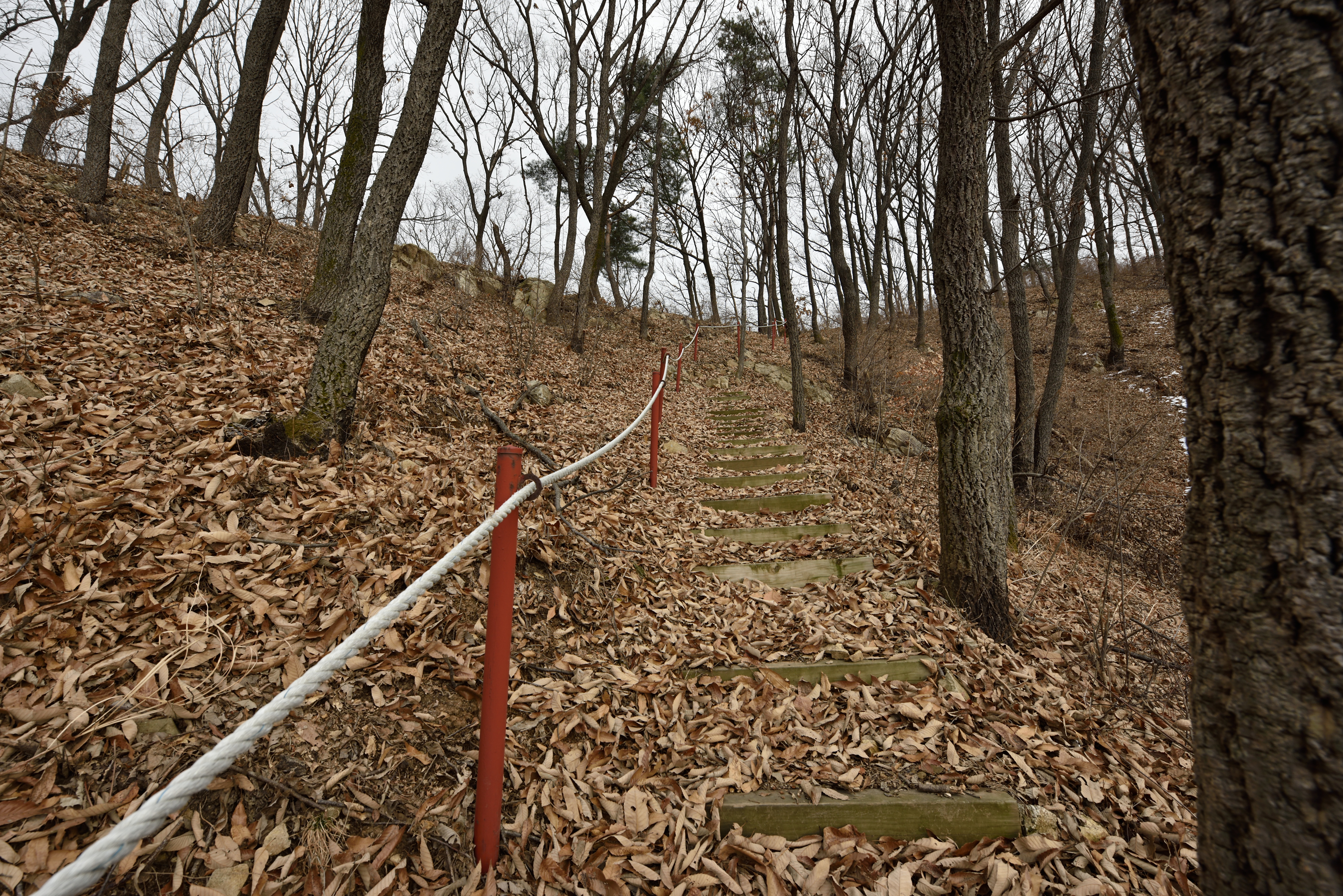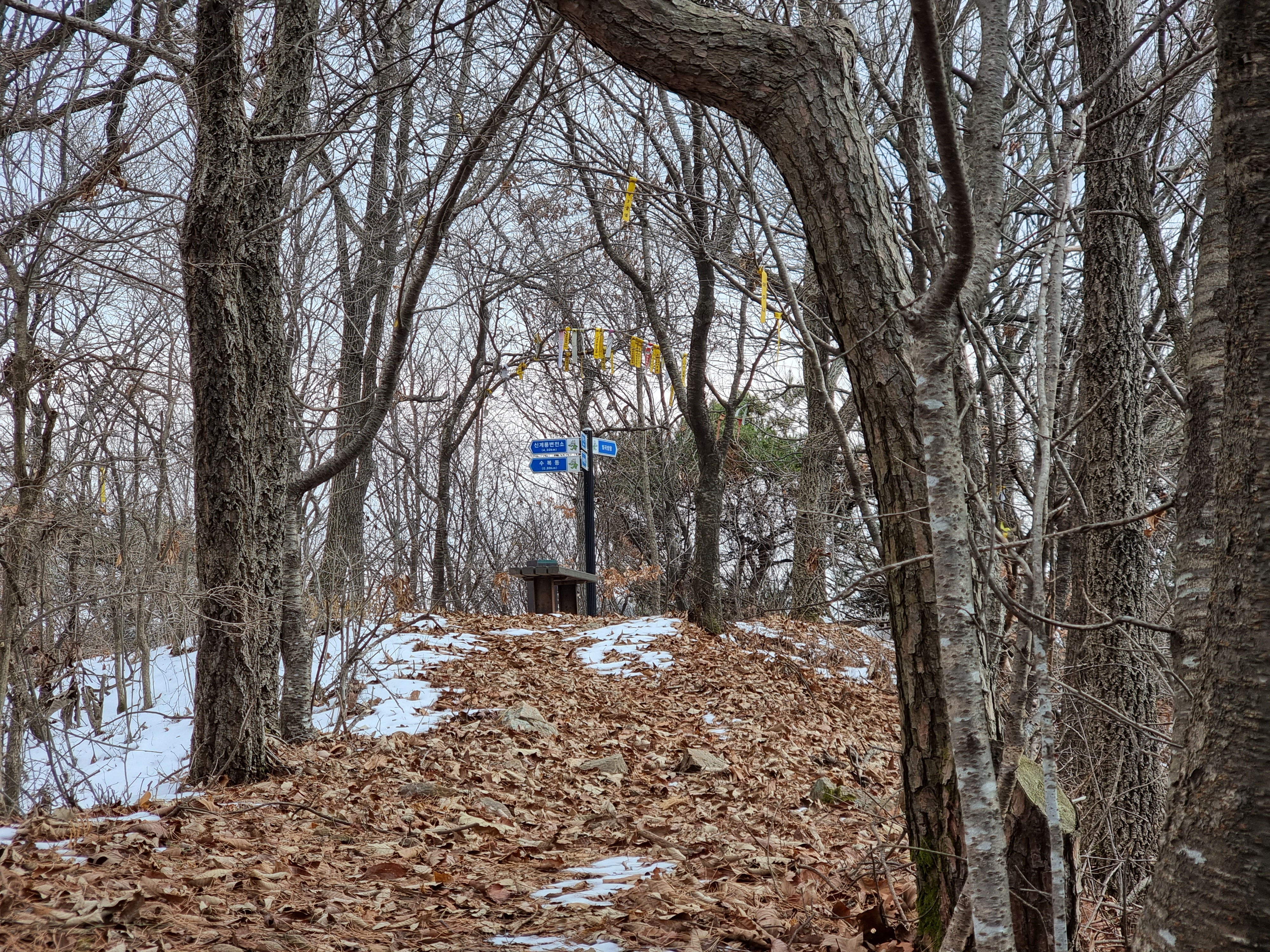 왕건 둘레길로 가지 않고 정상으로 오르는 길로 향했다. 역시 미끄럽다. 운동화를 신은 탓에 눈길이 미끄럽고 불편했다.