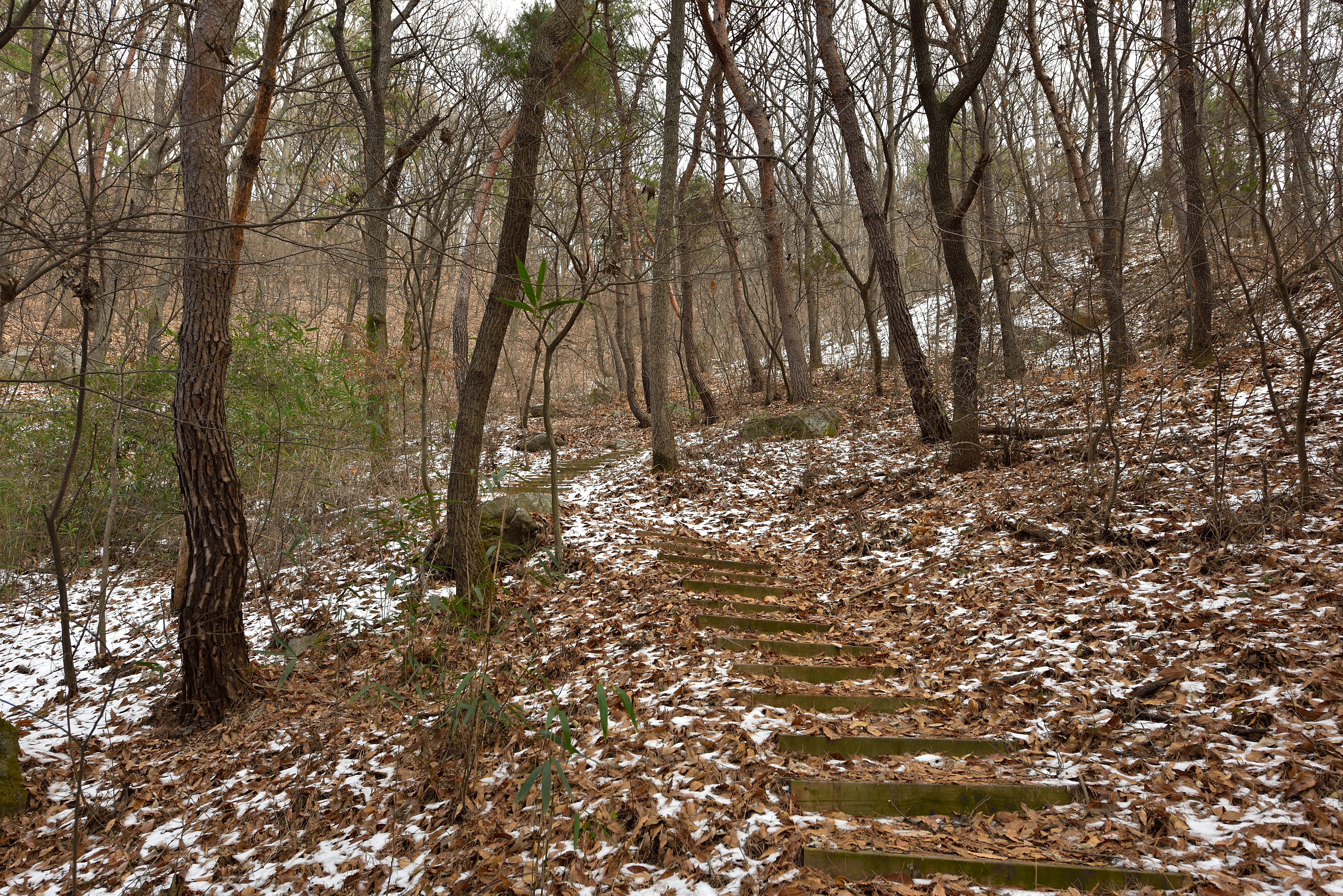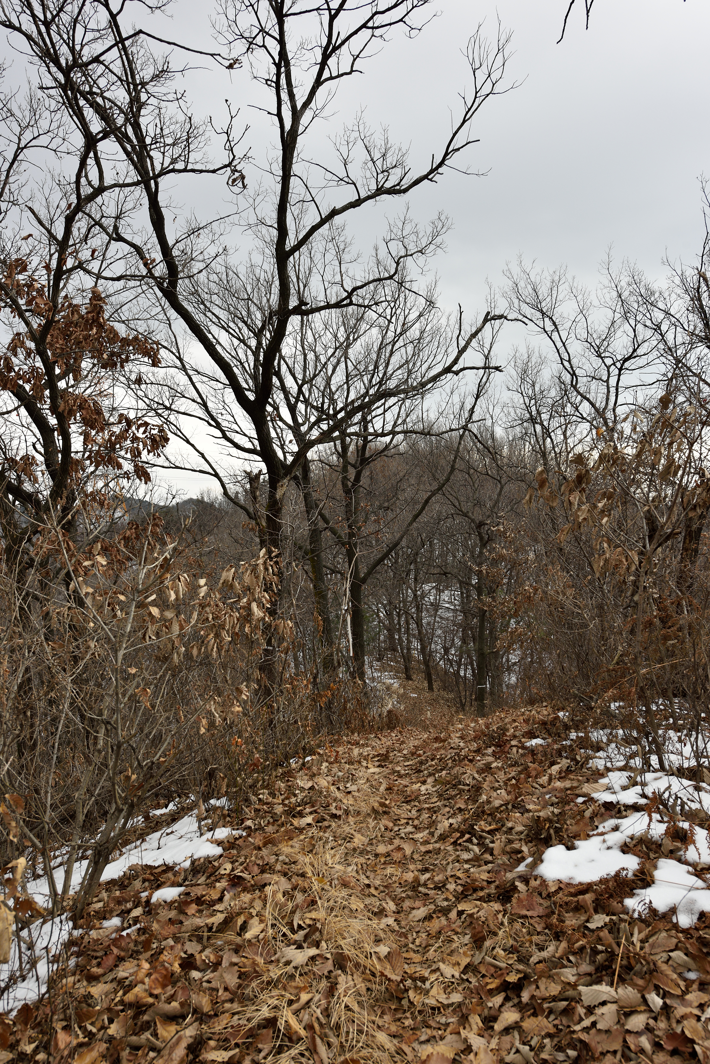 산등성이에 오르니 사람의 발자국이 없다. 짐승들 발자국뿐... 능선을 따라 남쪽으로 걸었다.
