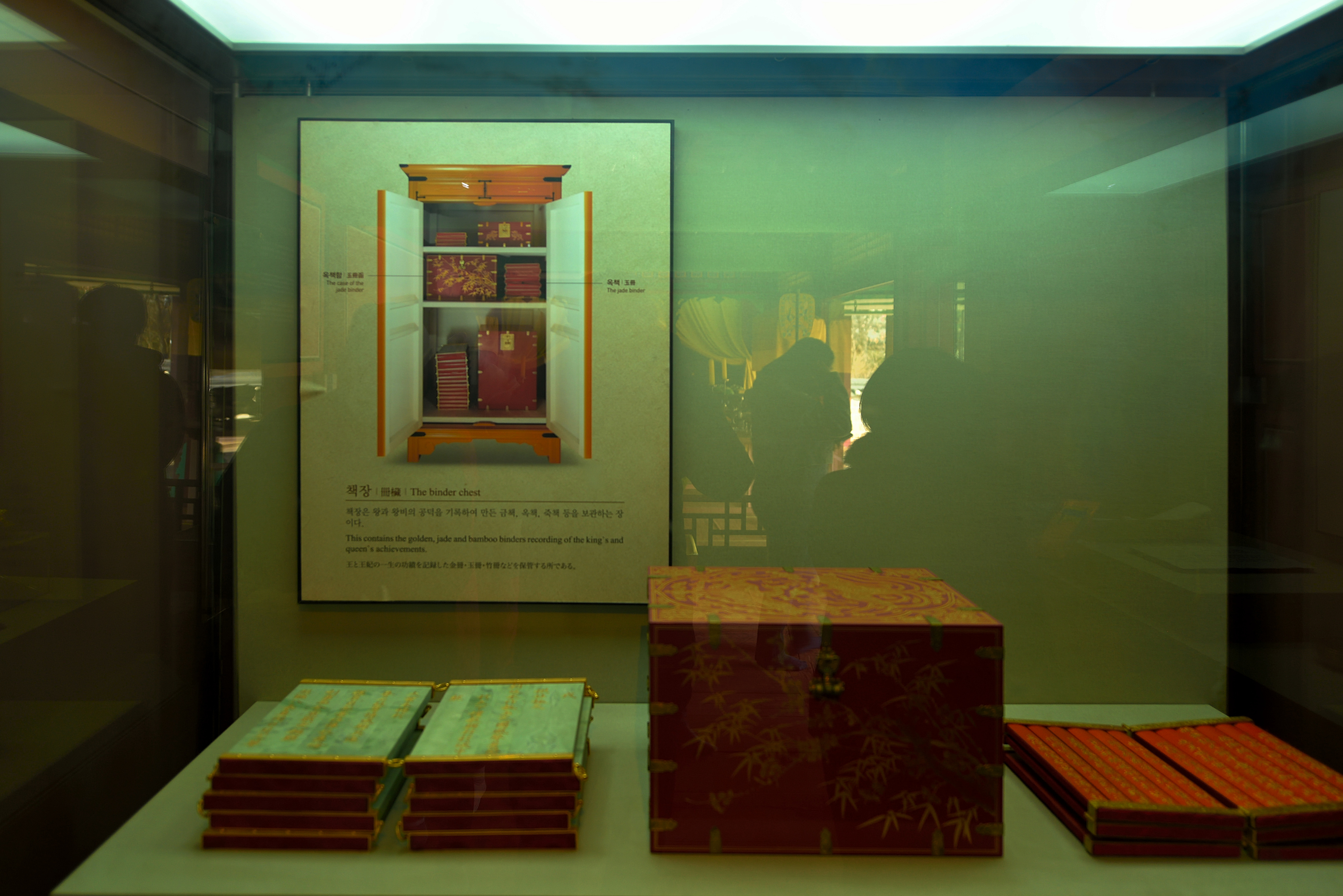 옥책과 옥책함, 죽책, 왕과 왕비의 공덕을 기록하여 만든 금책, 옥책, 죽책을 함에 넣어 책장에 보관한다.