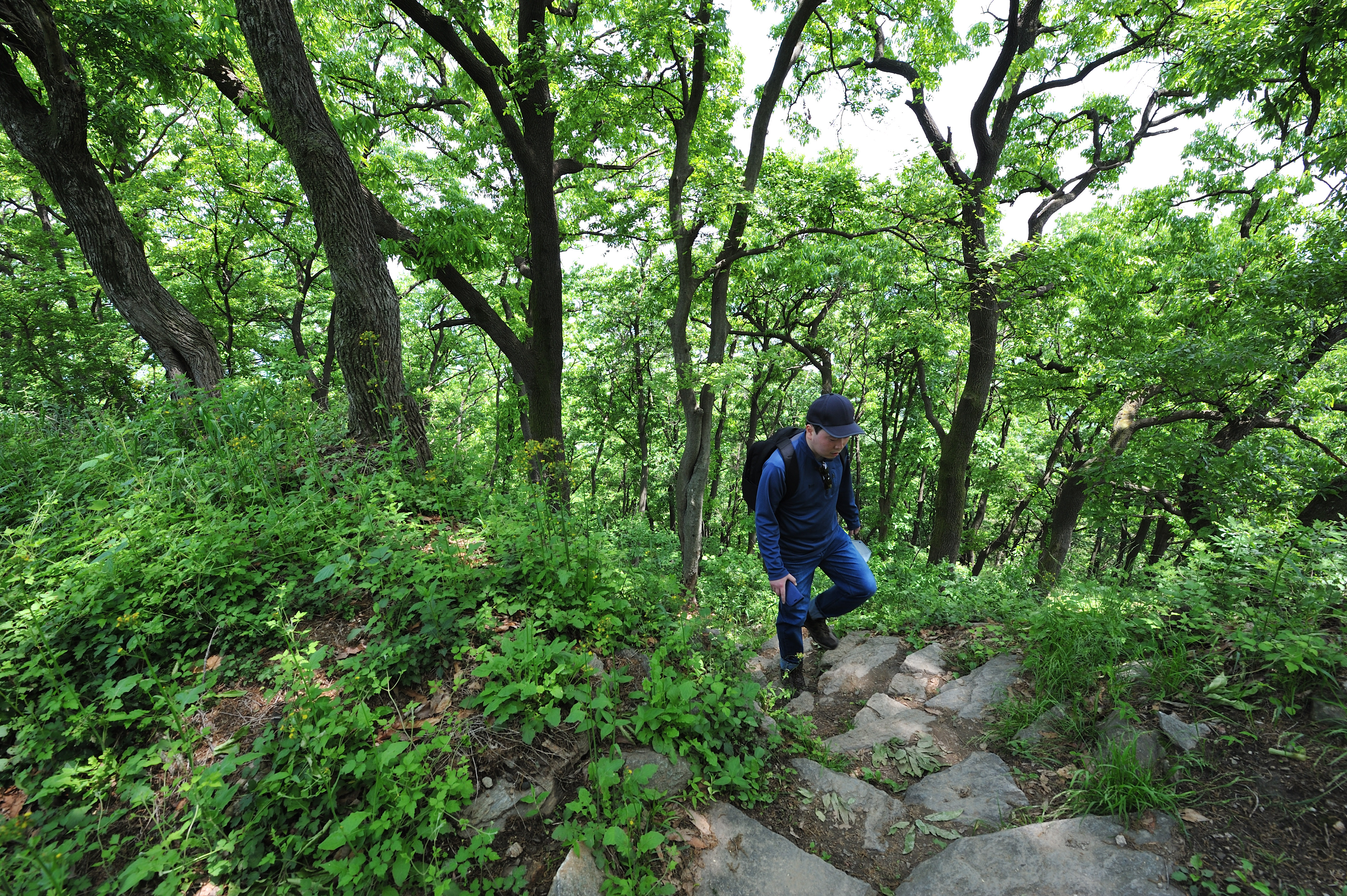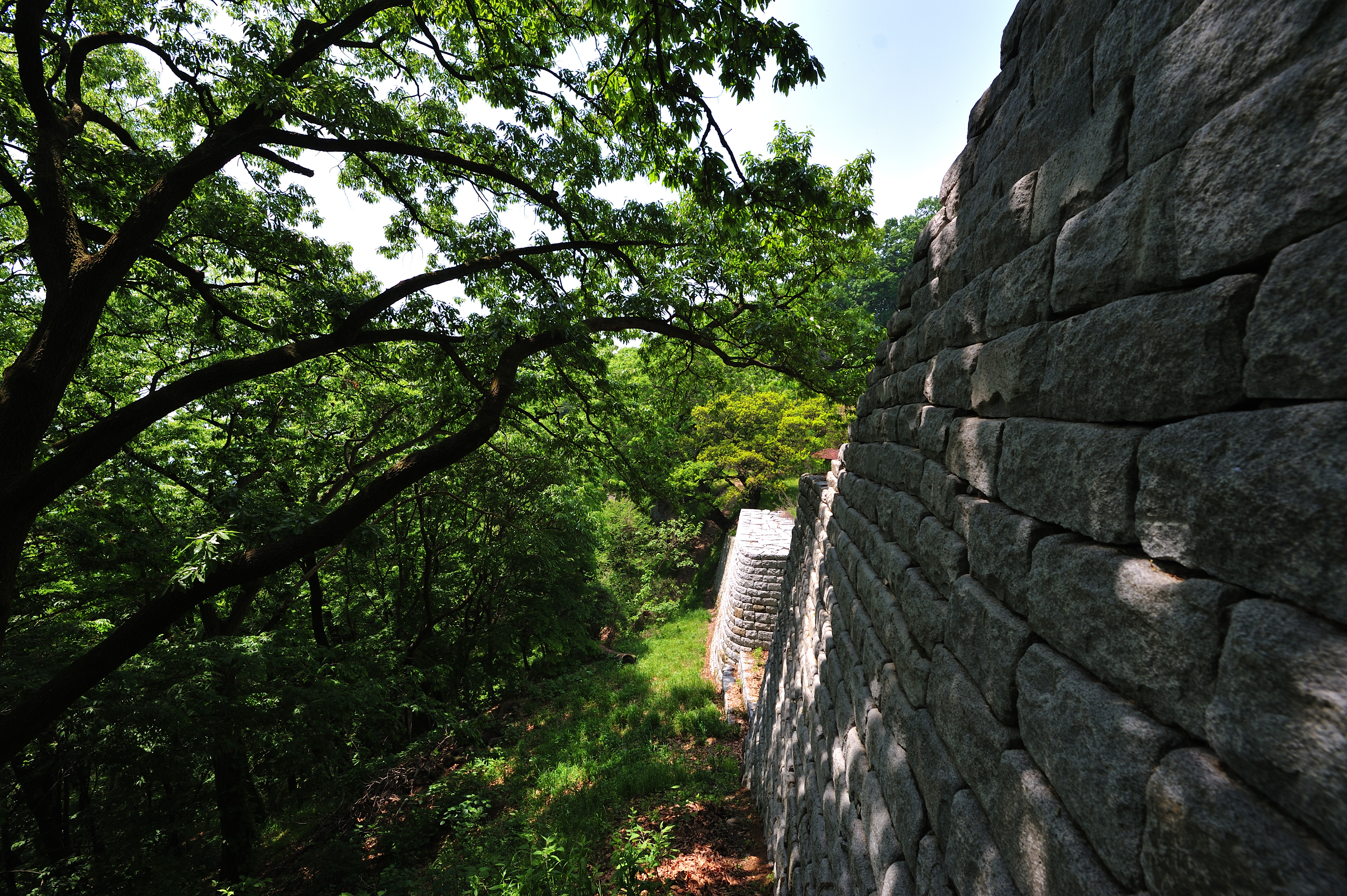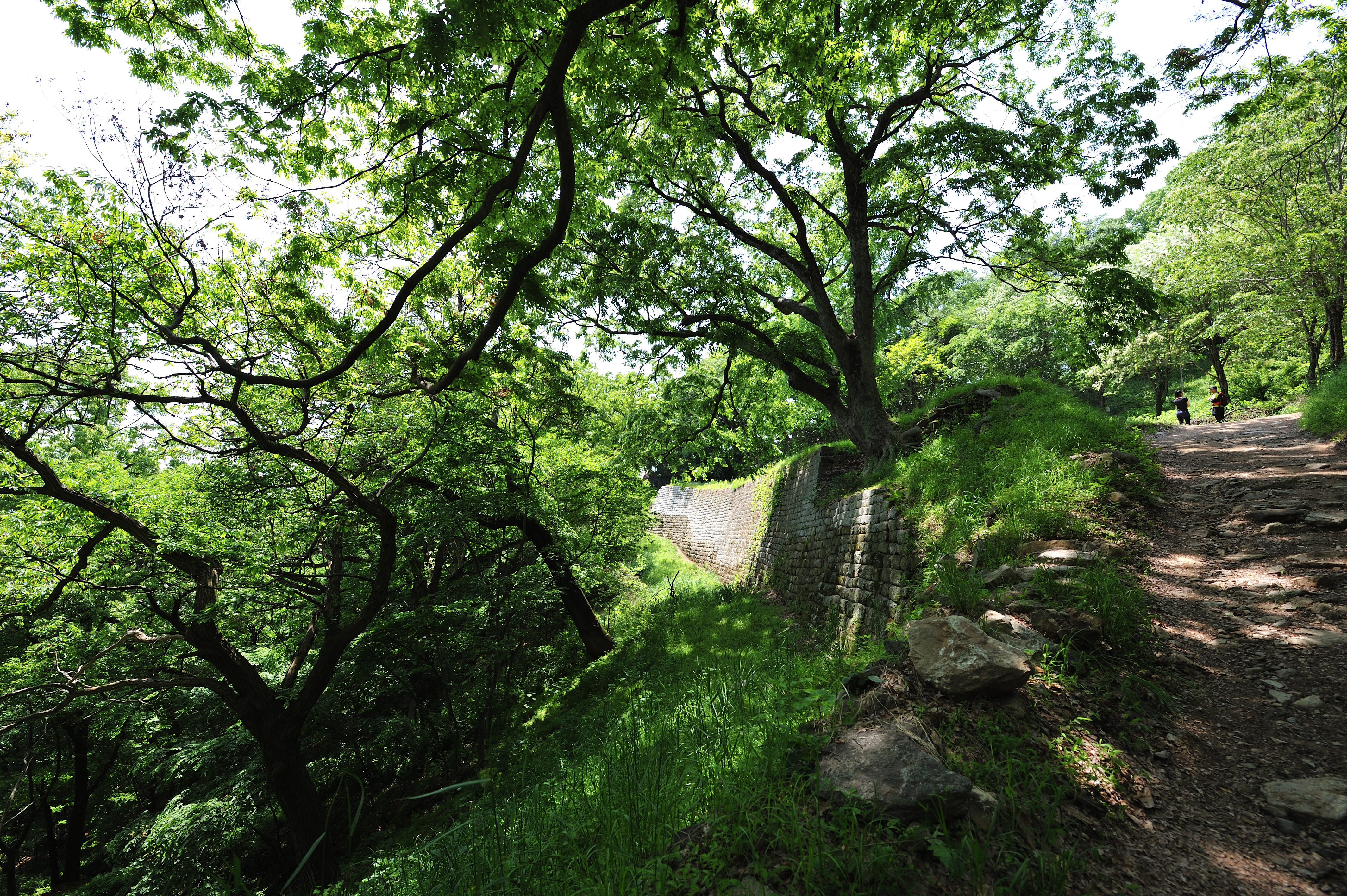 성을 내려오며 아쉬워서 뒤돌아 나무 사이로 보이는 석성을 한 컷 담았다.
