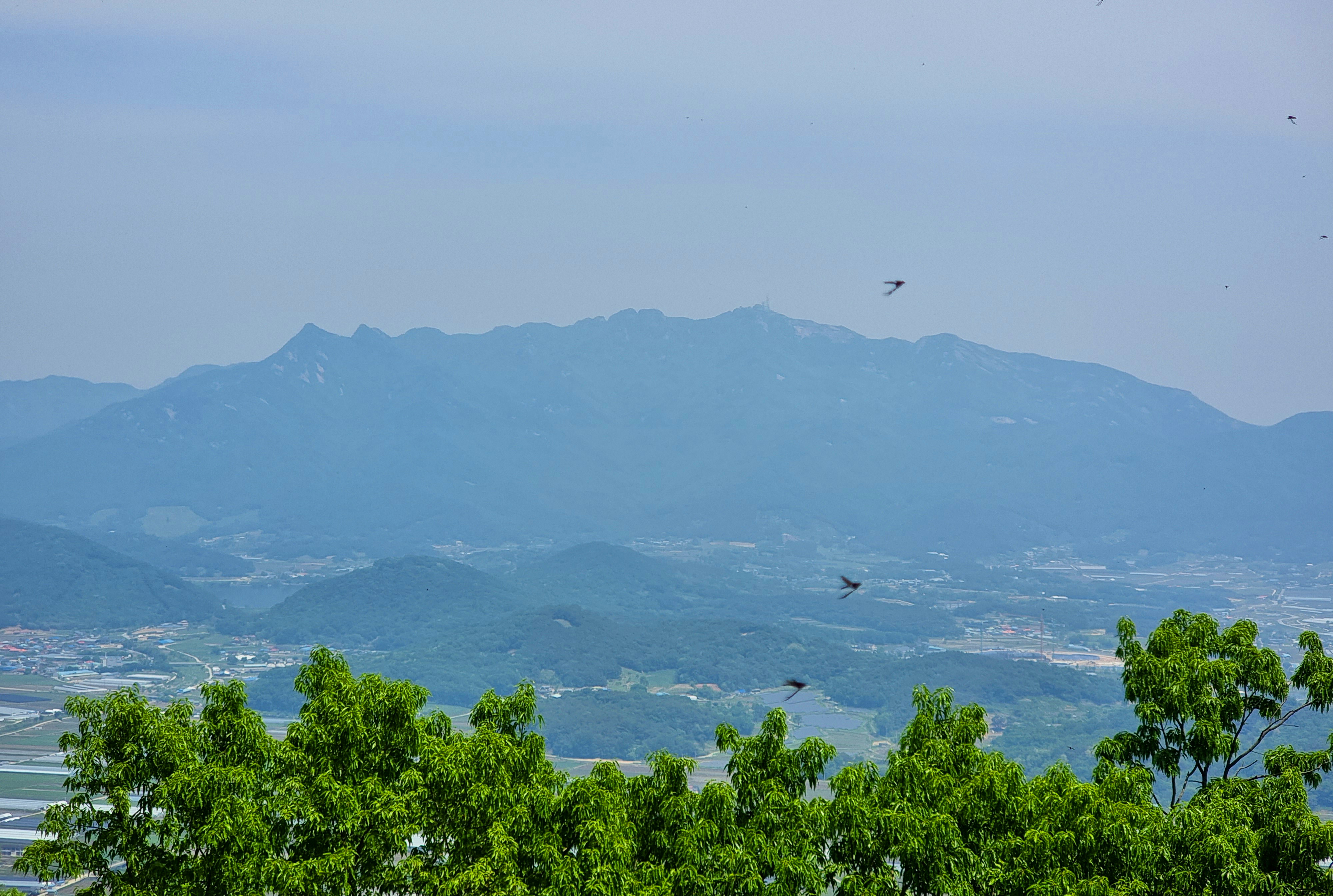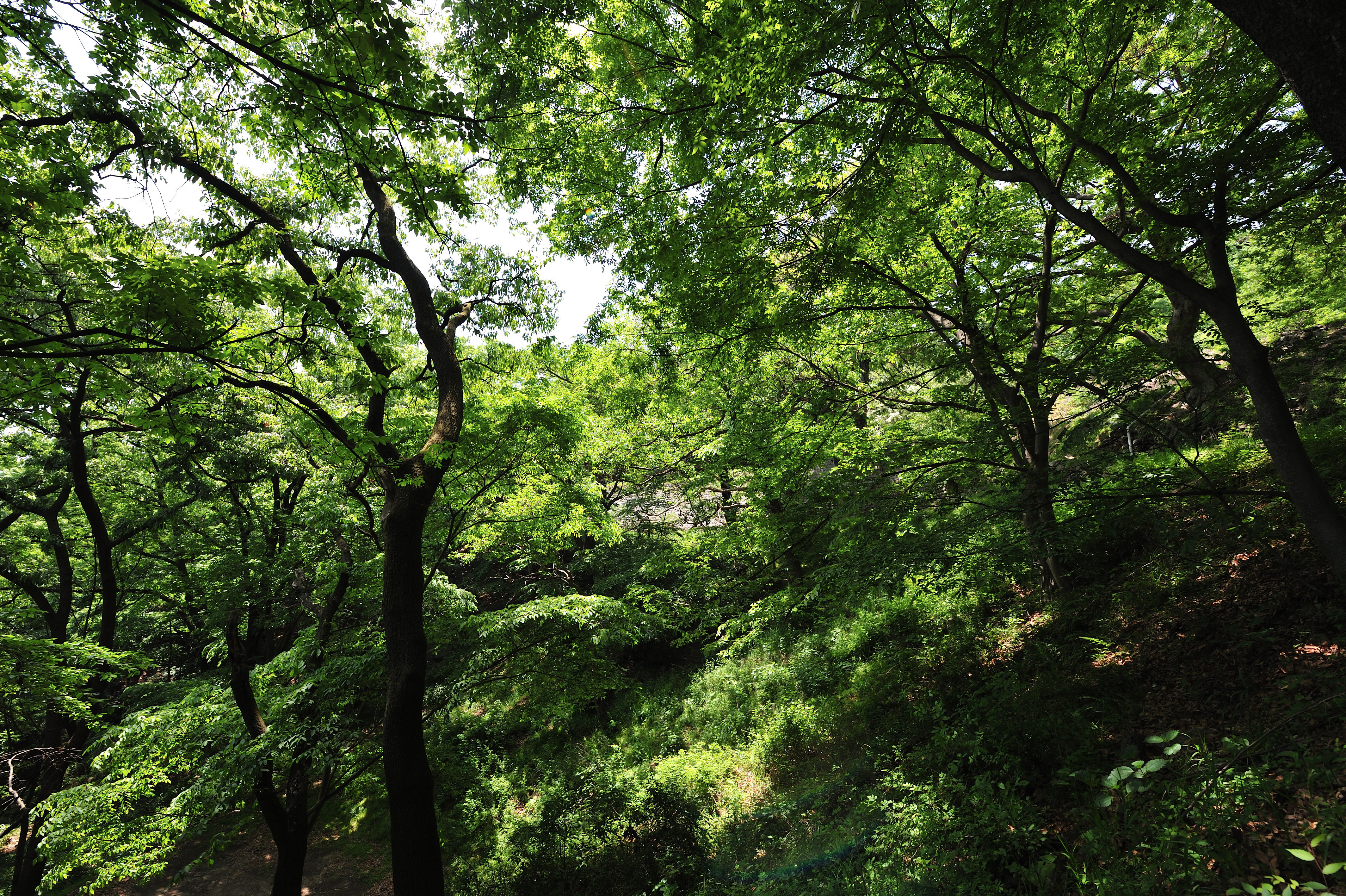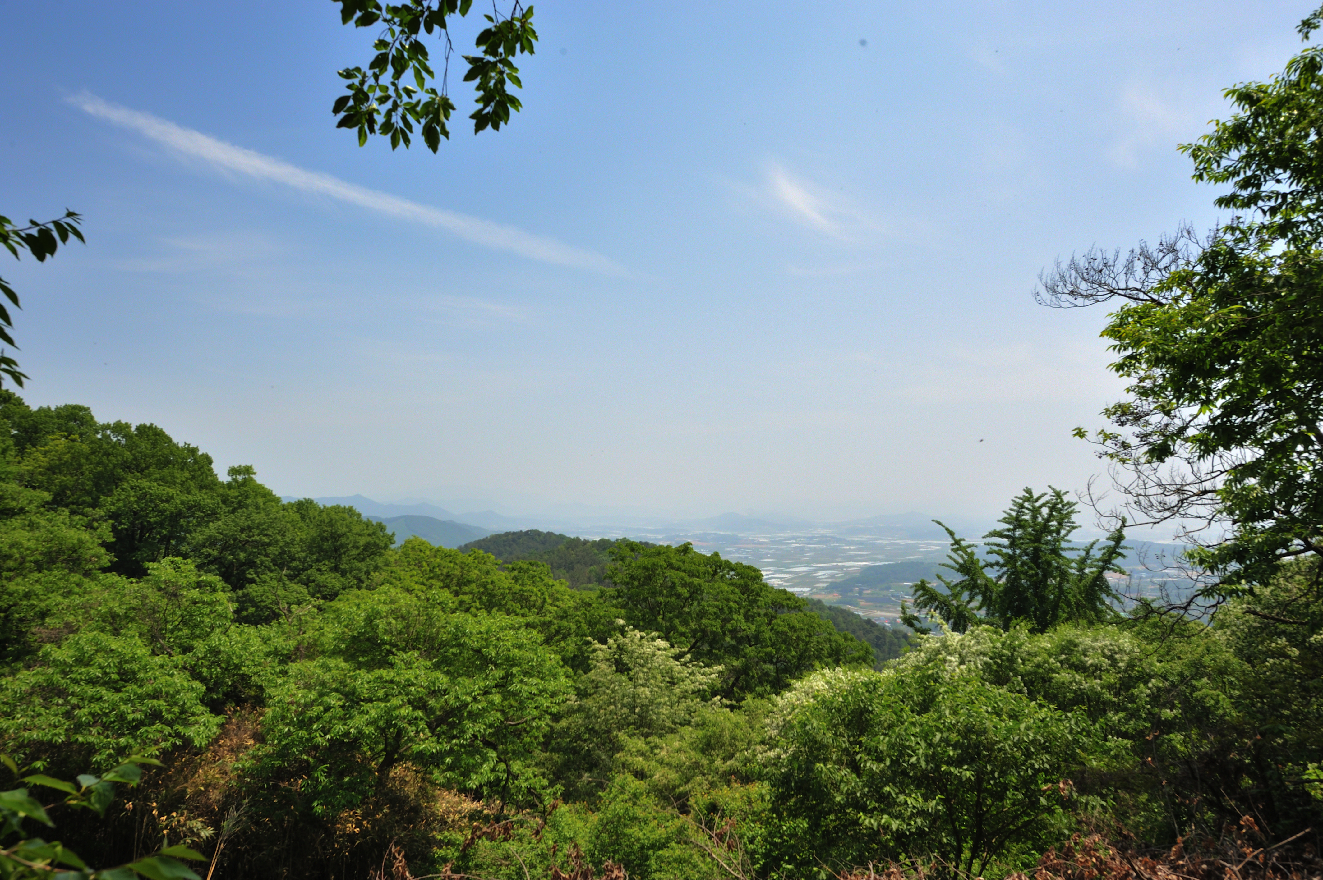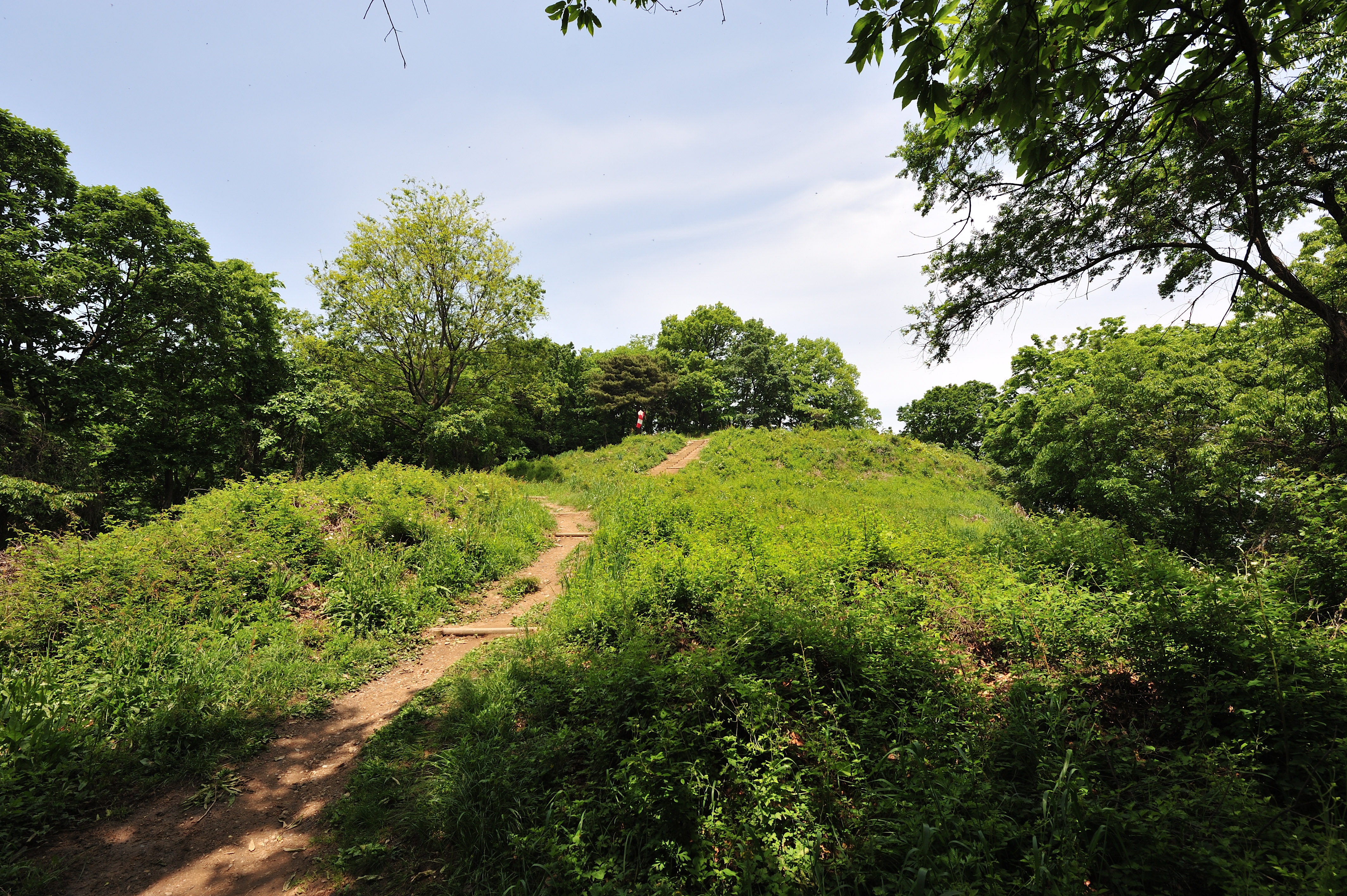 성을 내려오며 아쉬워서 뒤돌아 나무 사이로 보이는 석성을 한 컷 담았다.