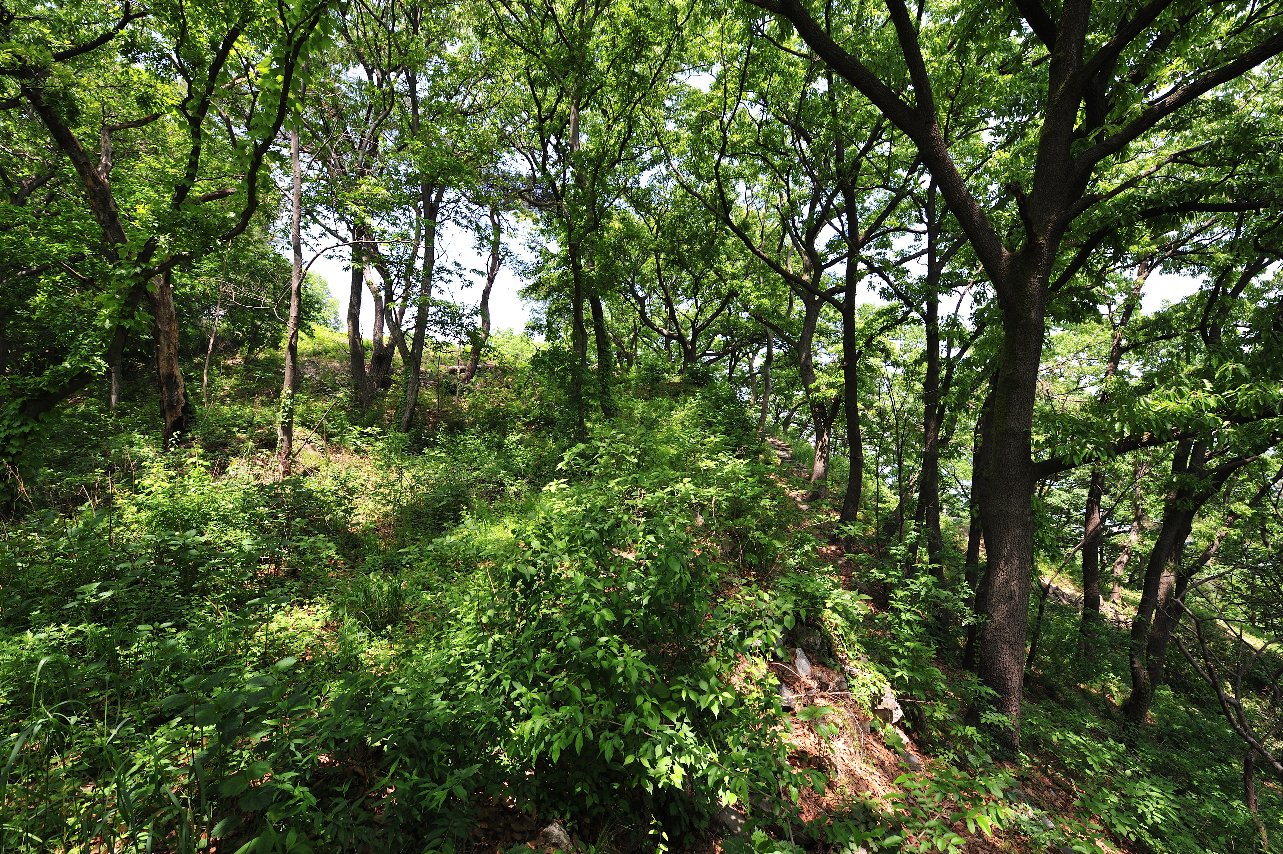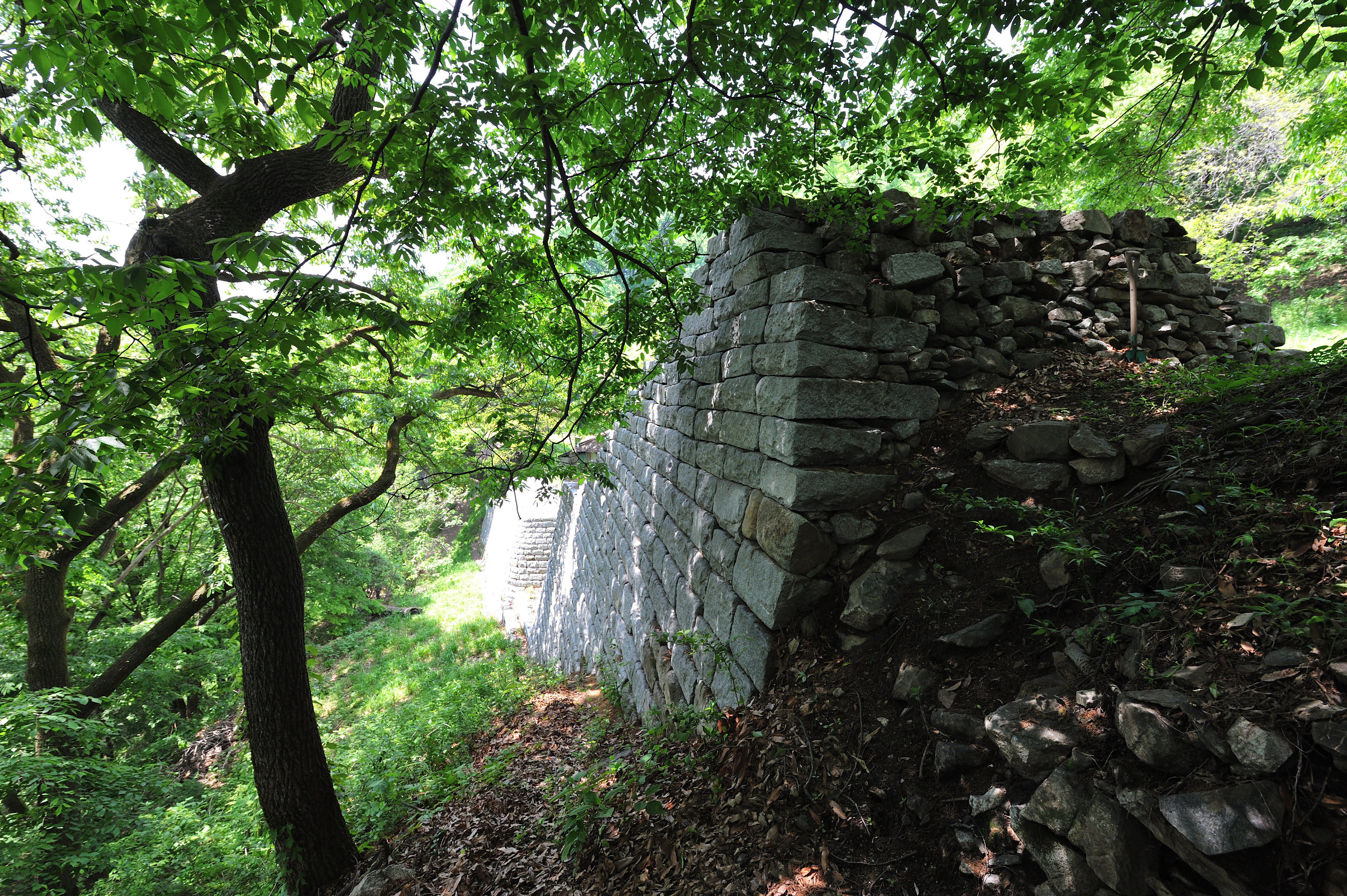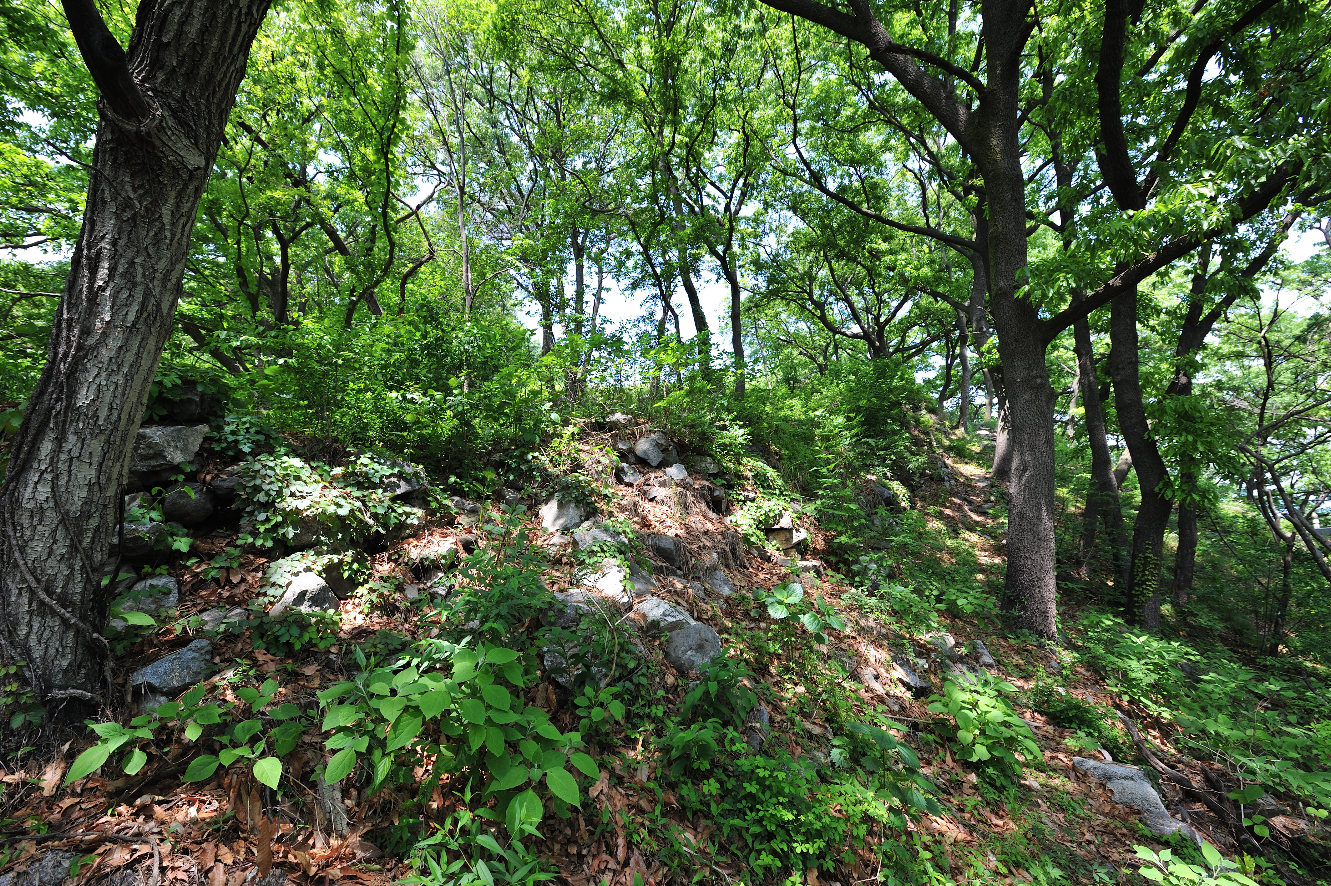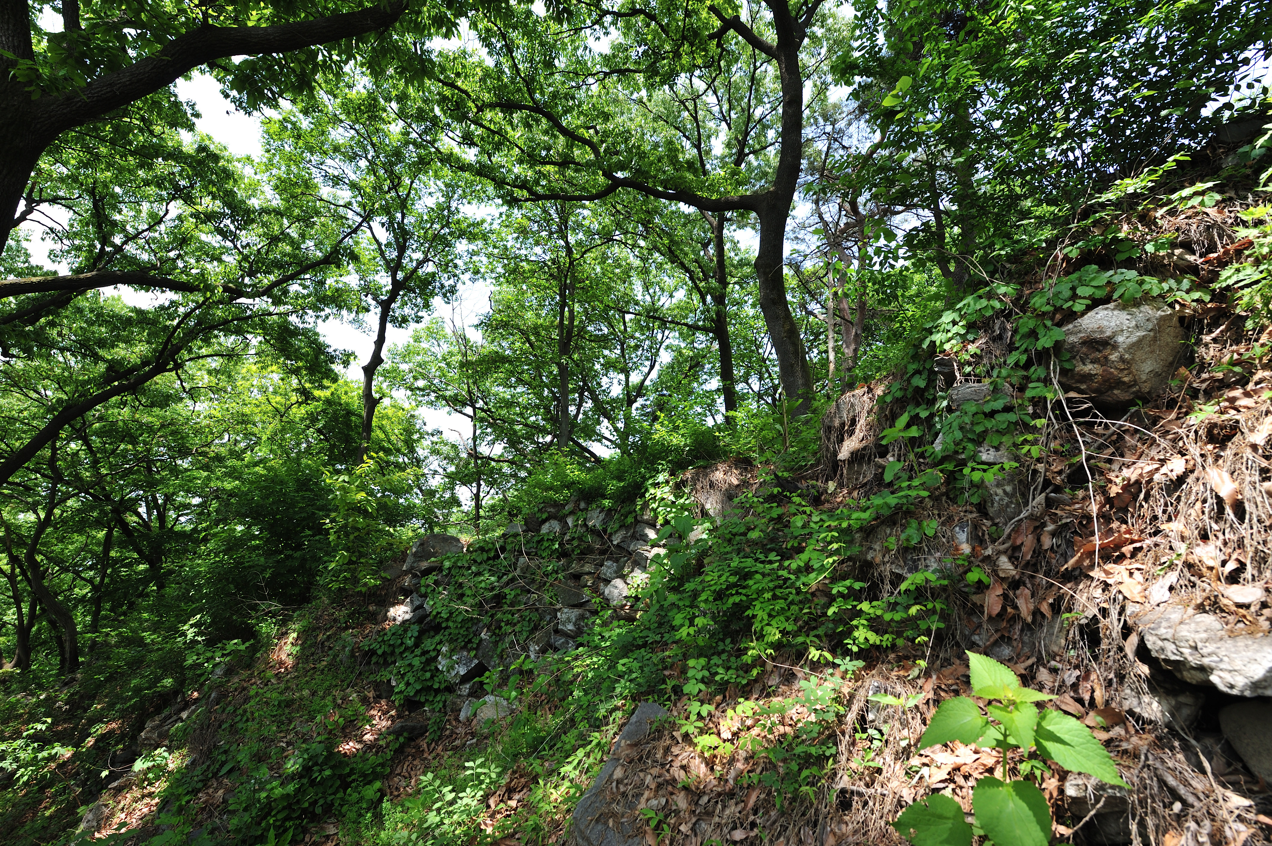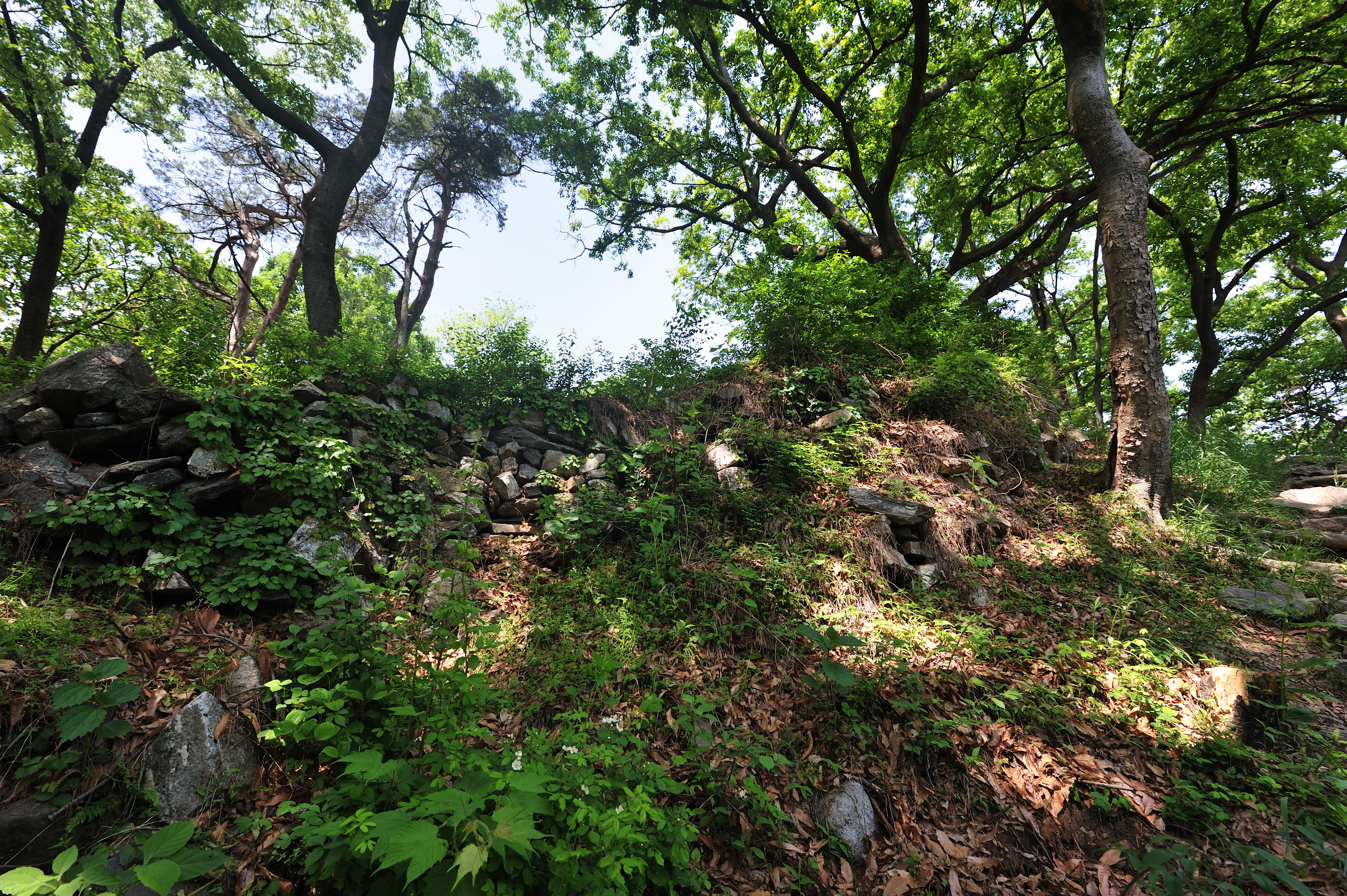 폐가 아래 석성의 흔적을 따라 동쪽으로 걸었다. 일부는 무너지고 나무들이 뒤엉켜 성벽의 흔적만 볼 수 있는 곳도 있었다.