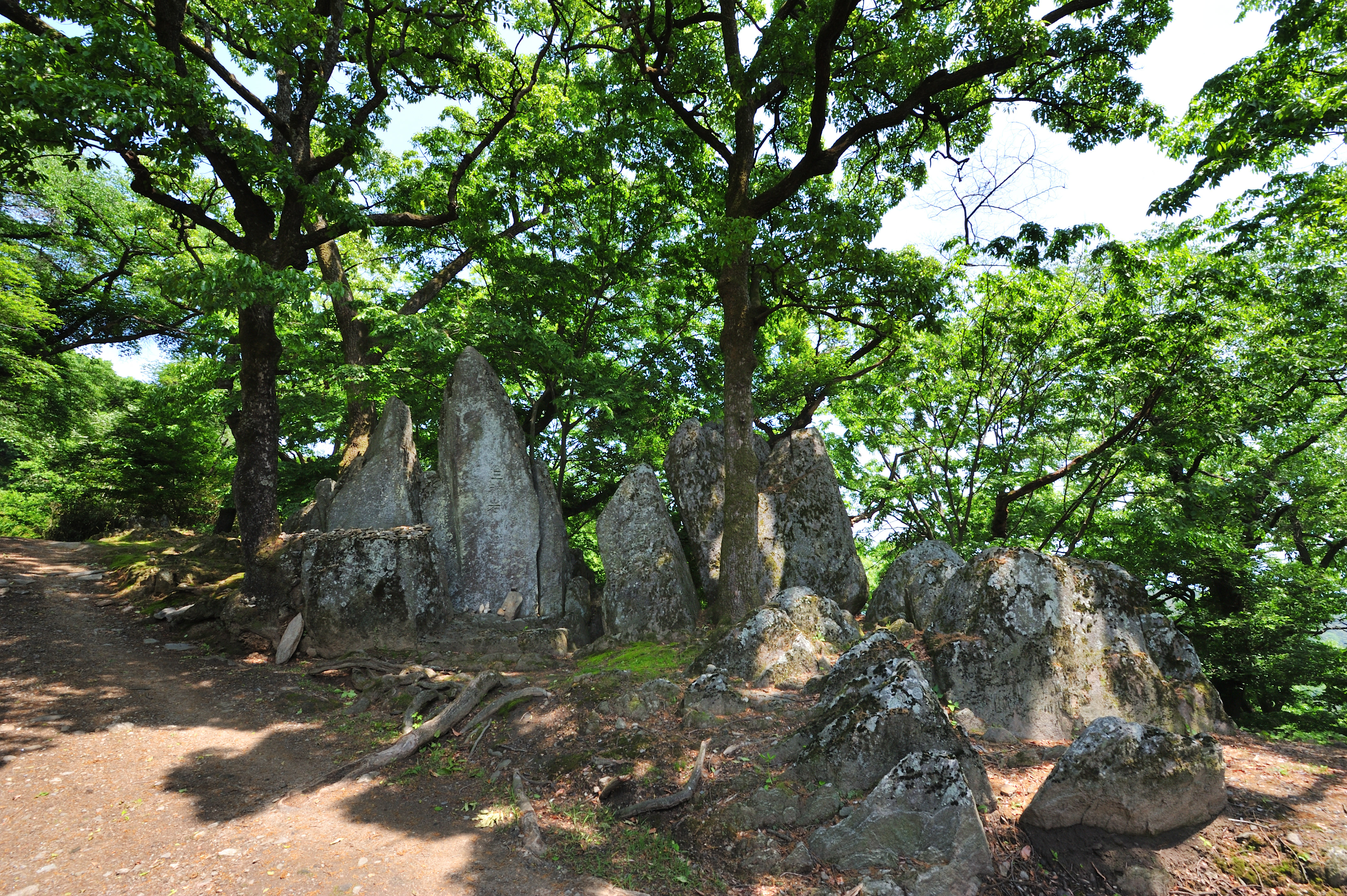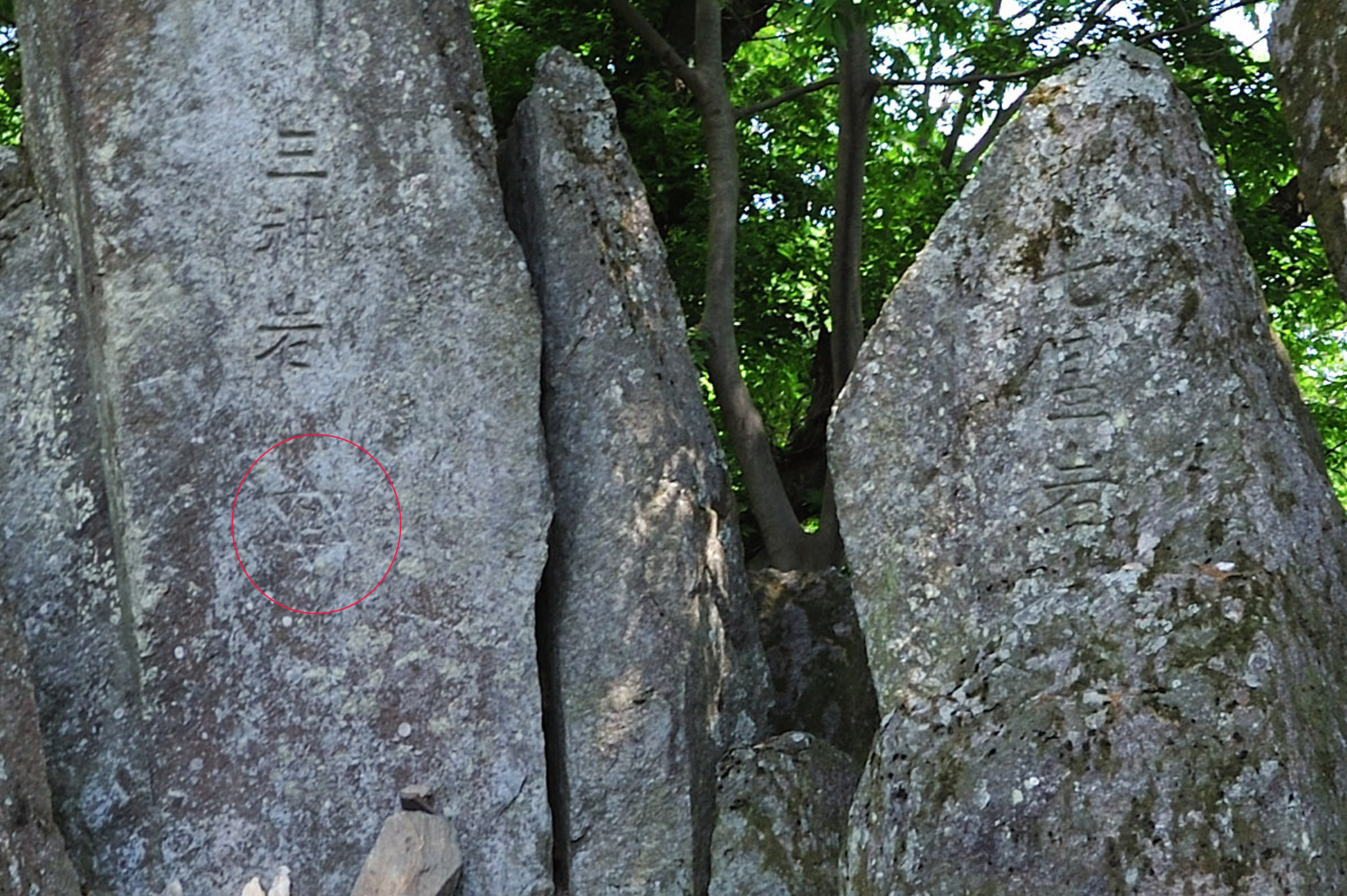 아래로 내려오니 기이한 입석들이 여러 개 서 있어 자세히 보니까 삼신암, 칠성암이란 글씨가 음각되어 있었다. 삼신암 글씨 바로 아래에는 '다윗의 별'이란 유태인들의 육각별 문양이 새겨져 있어 놀라웠다.