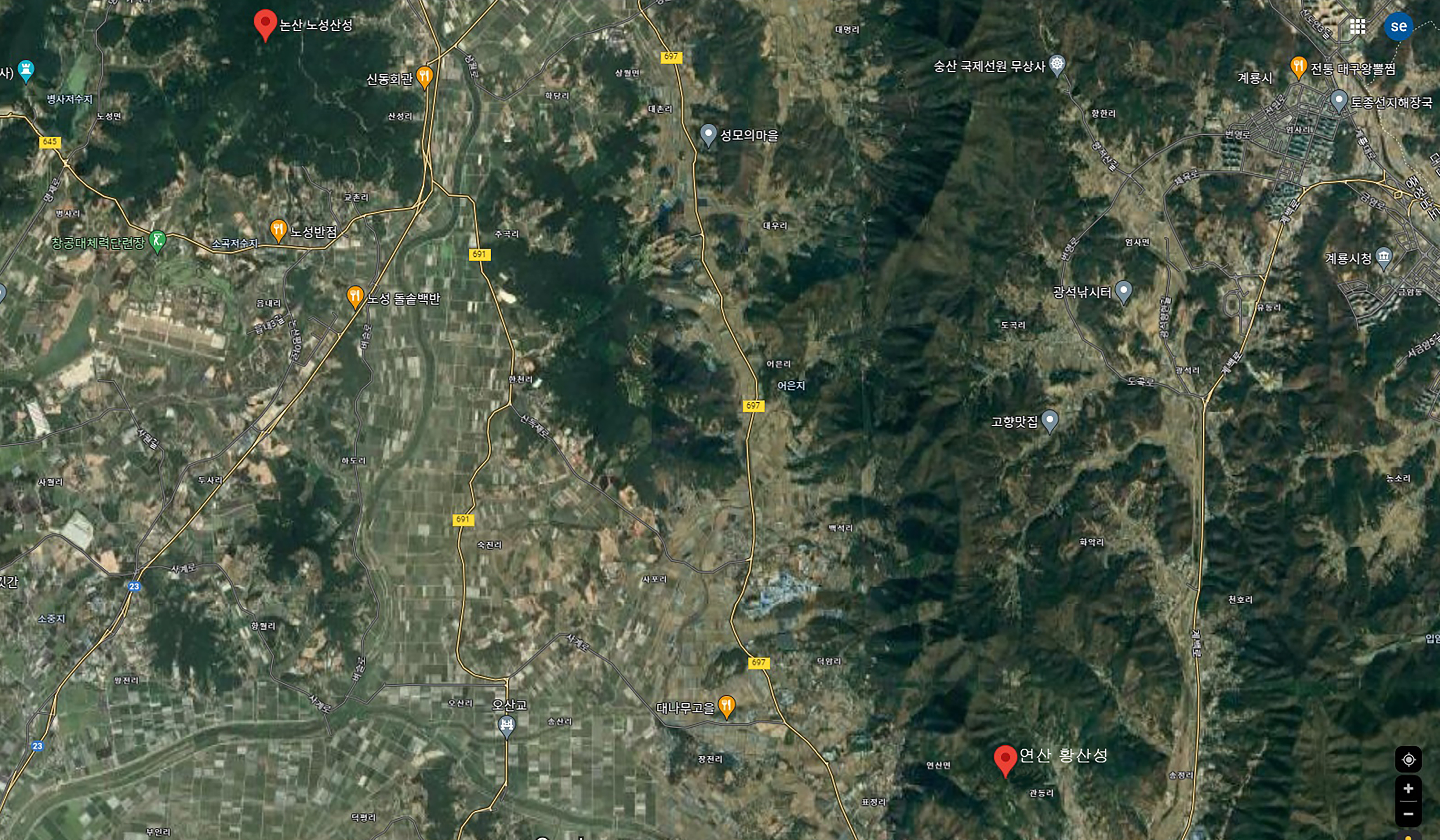 노성산성과 연산 황산성 -구글 지도