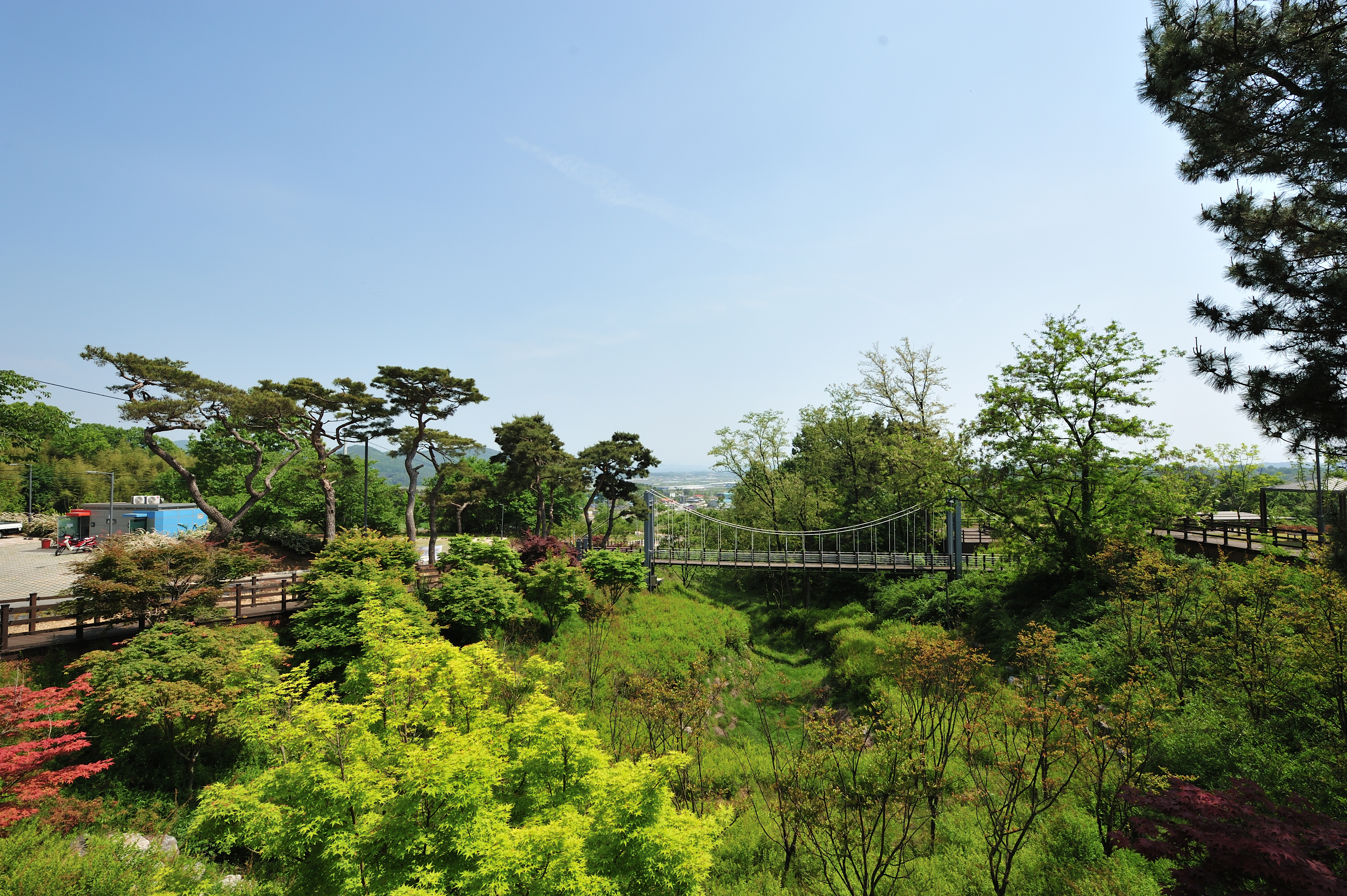 노성산성 오르는 초입의 주차장이 있는 애향동산 출렁다리, 전국적으로 출렁다리와 케이블카 설치가 사태난 듯 넘쳐난다.