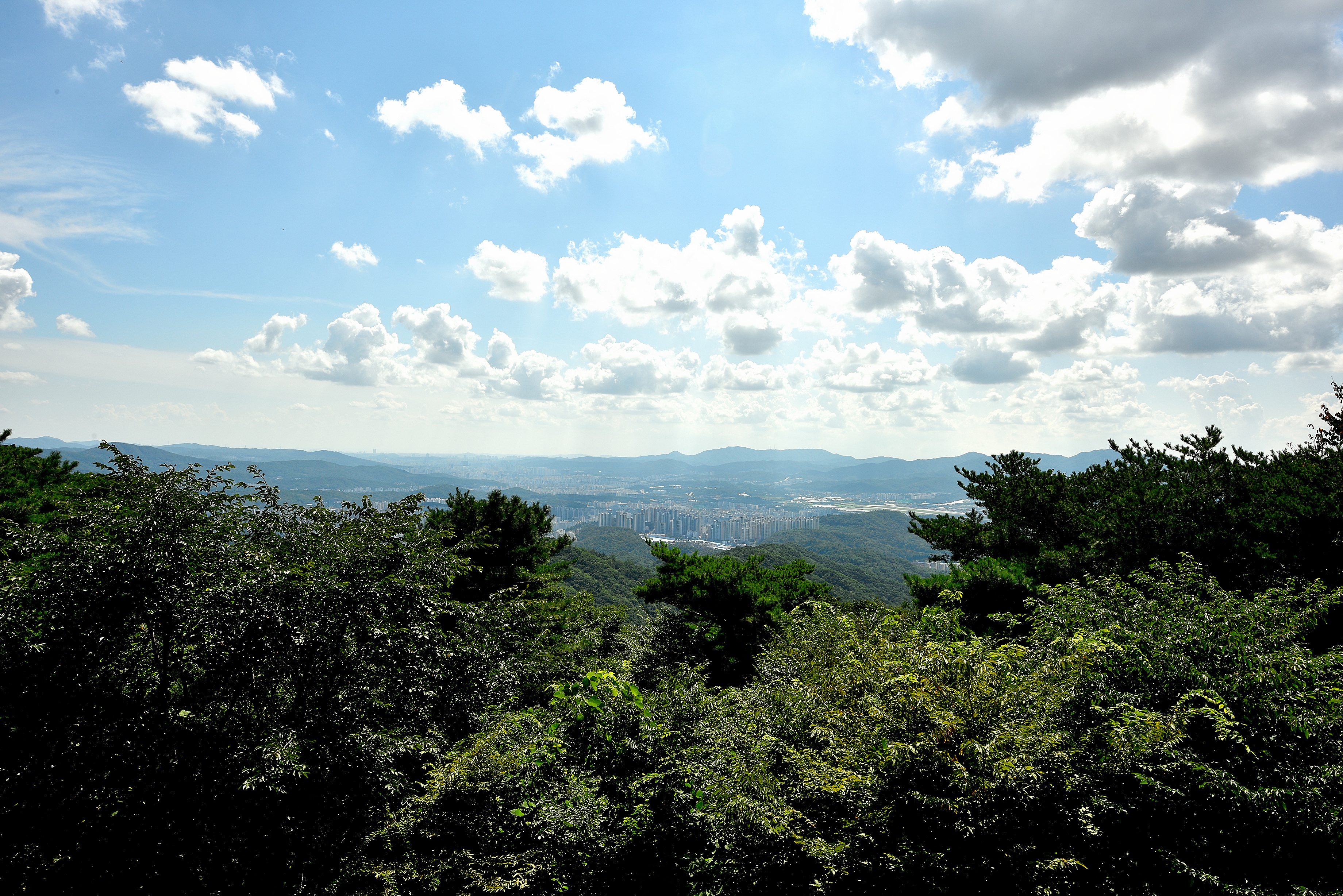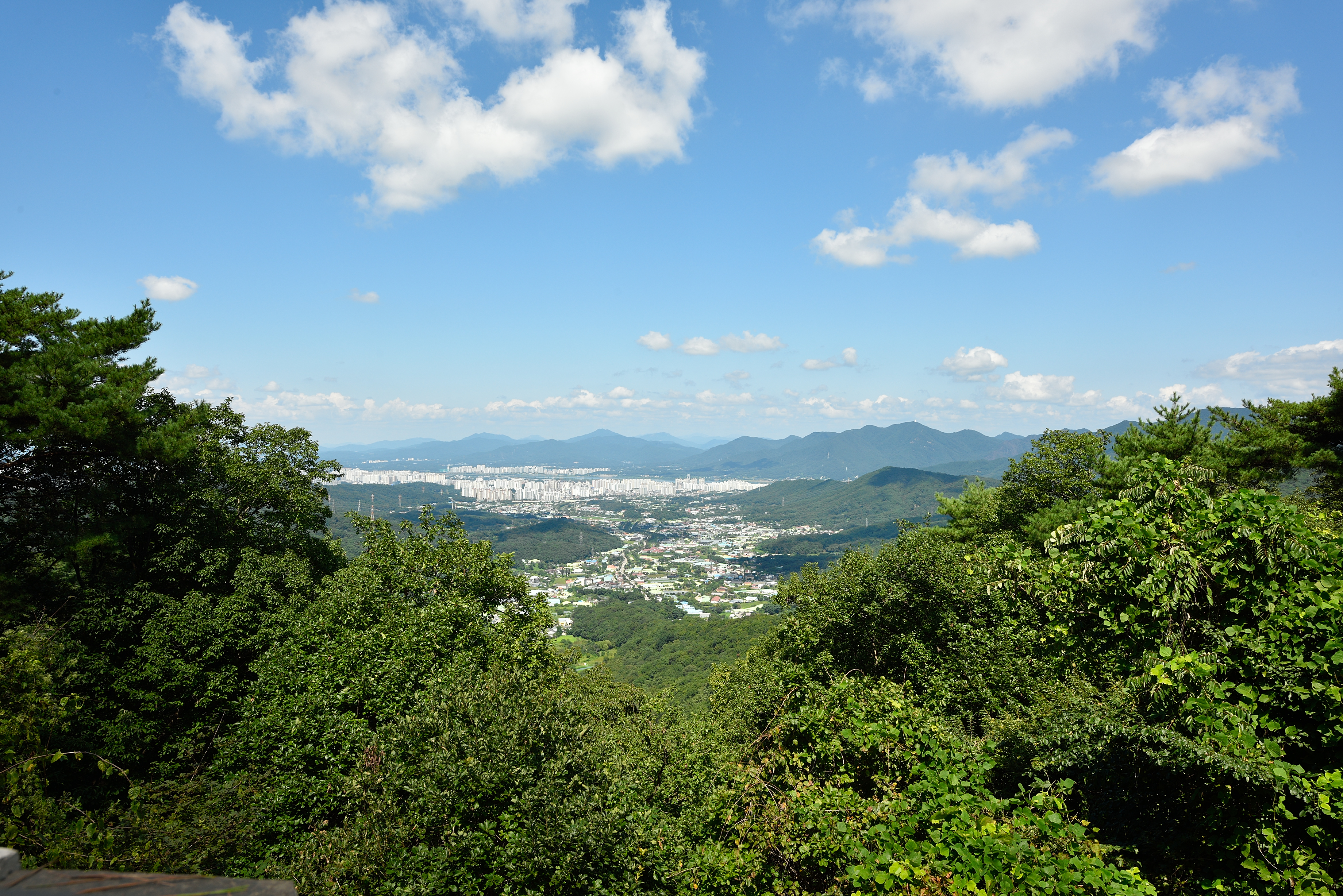 수어장대에서 바라보는 남쪽 풍경, 멀리 수원 광교산이 보였다.
