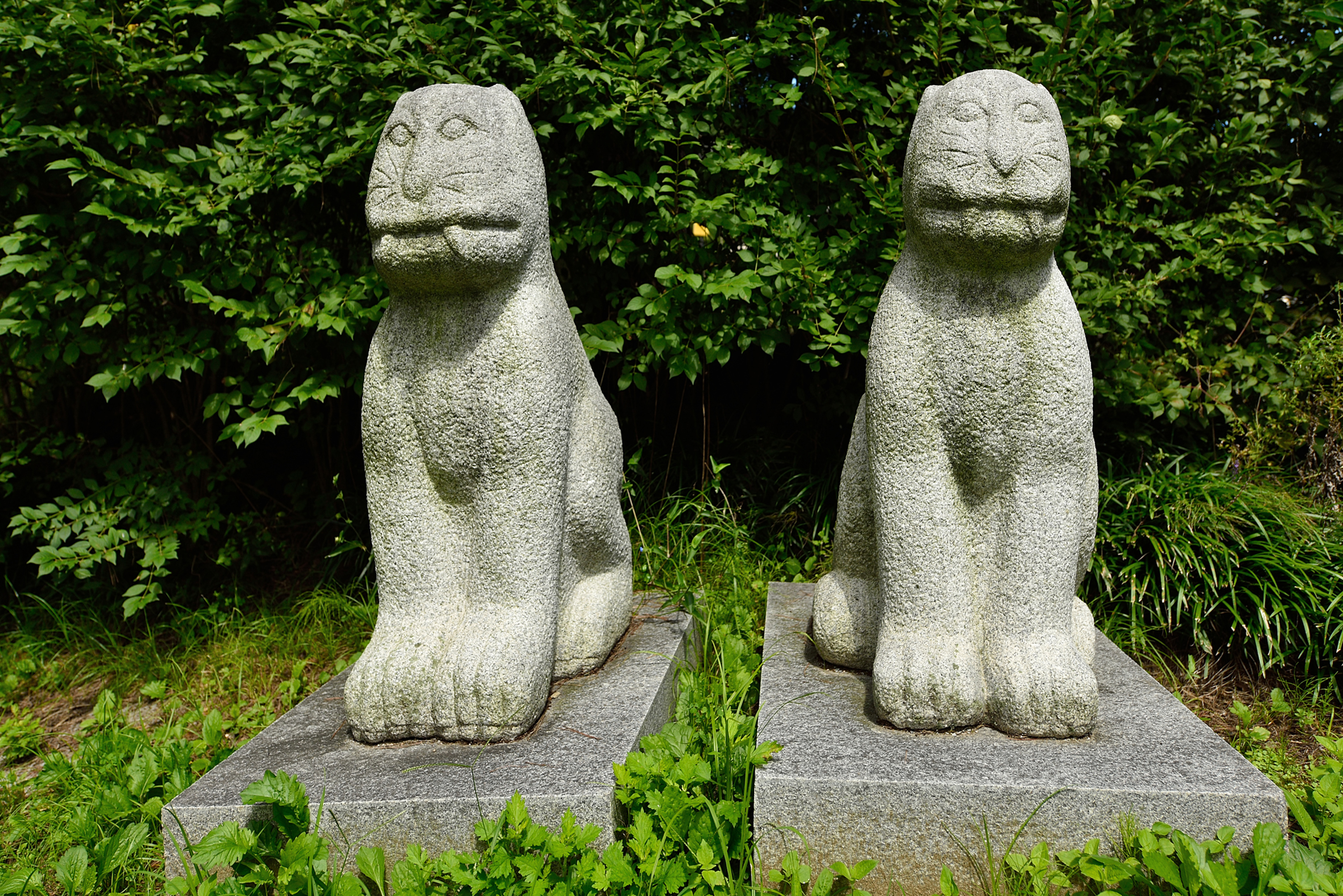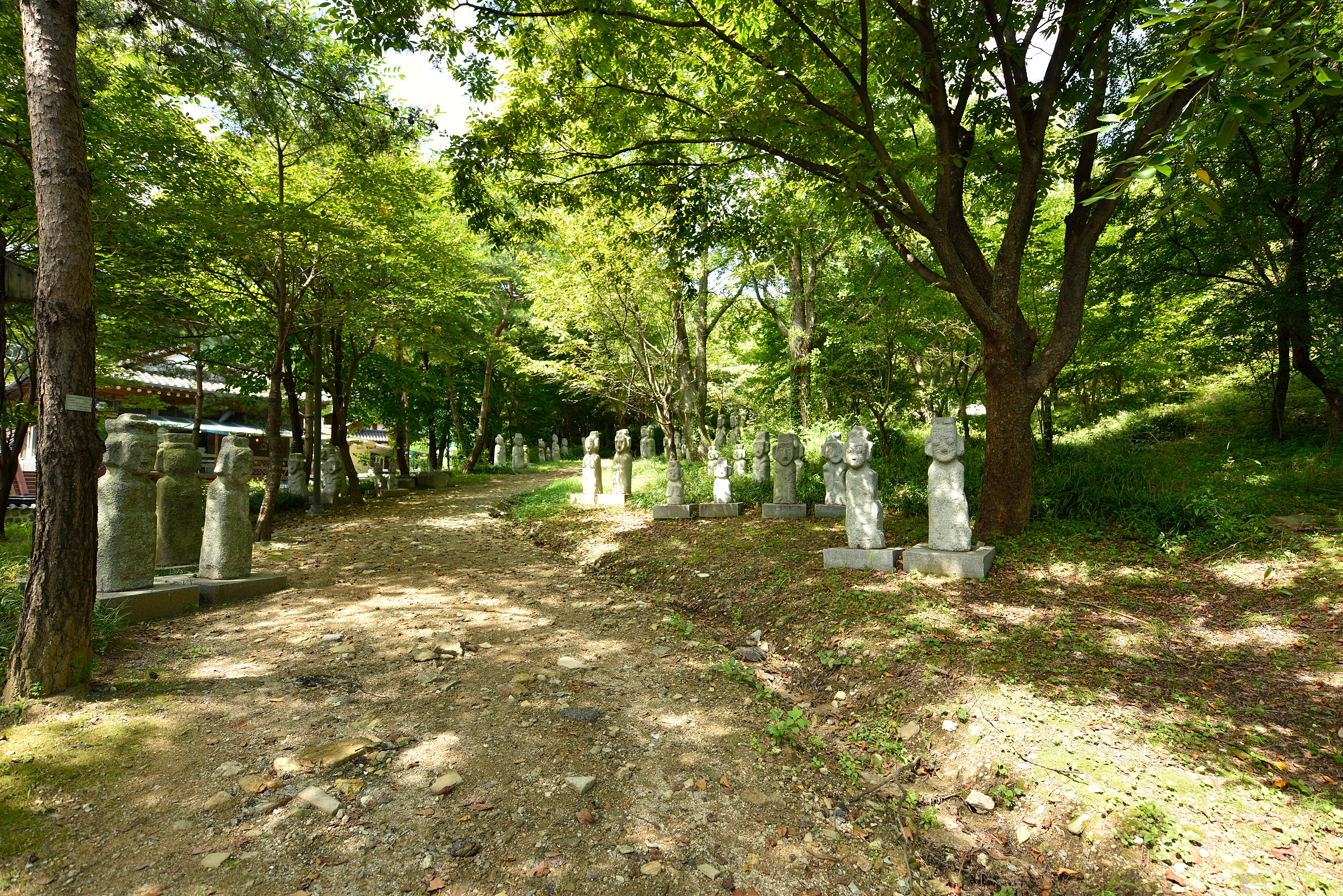 행궁에서 인화관으로 가는 숲사잇길에 세워 놓은 각종 석물들