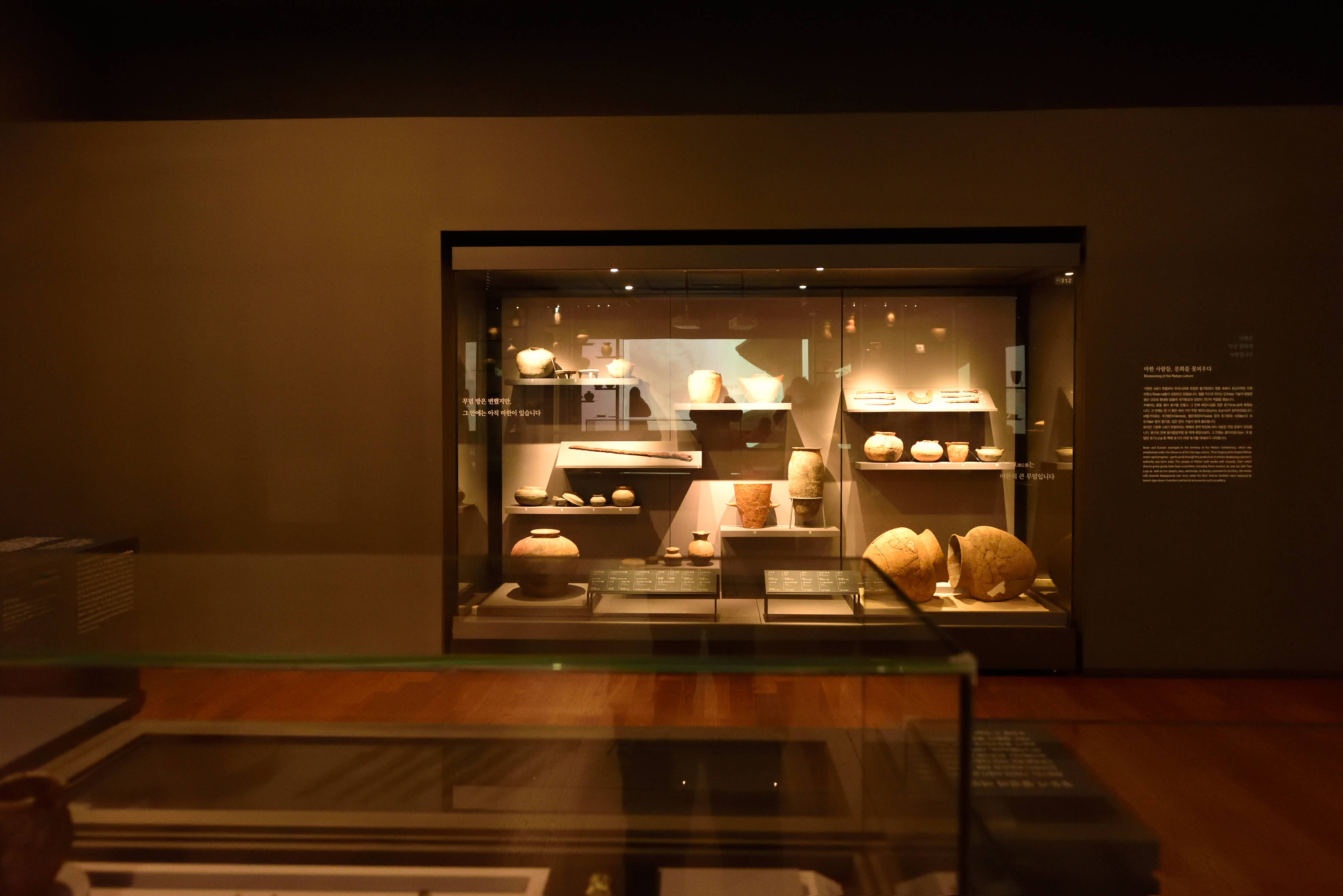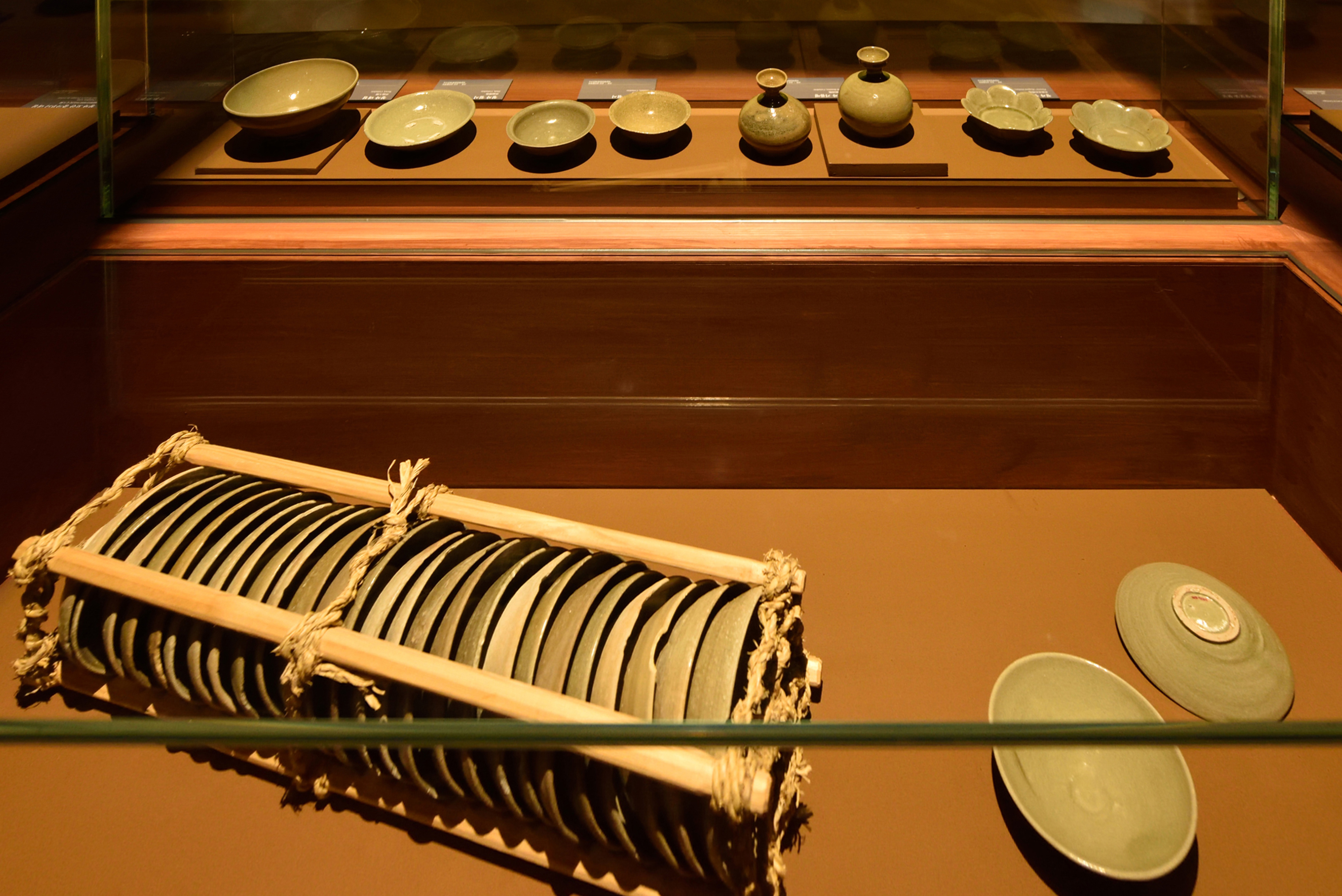 해저 난파선에서 유물을 발굴하는 영상을 배경으로 건저 낸 청자들을 전시하고 있었다.