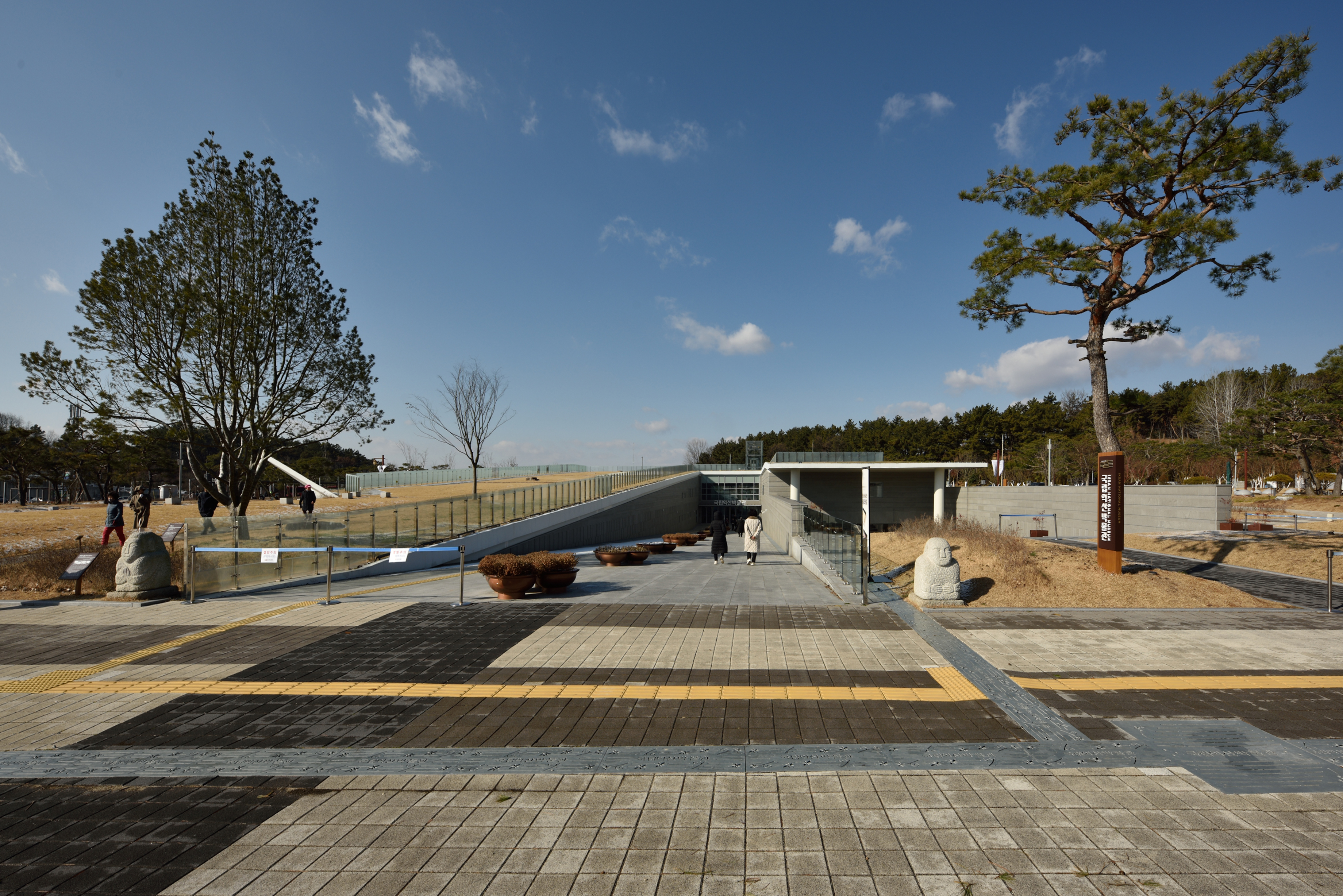 익산 쌍릉에서 미륵사지로 이동하여 주차장에서 예전과 달라진 모습에 입구를 찾느라 한참이나 헤맸다. 지나는 사람에게 물었으나 그이가 알려준 곳에 입구는 없었다. 혹시나 해서 예전의 박물관에 갔지만, 그곳은 어린이 박물관으로 용도를 바꿔 인터넷 예약 후 관람하도록 운영하고 있었다. 할 수 없이 직원에게 물어 왔던 길을 되돌아가 옥상에 잔디를 덮은 기다란 건물 앞으로 갔다. 그곳이 새로 마련한 익산국립박물관이었다. 주차장에 안내도라도 세웠으면 쉽게 찾을 수 있었을 텐데...