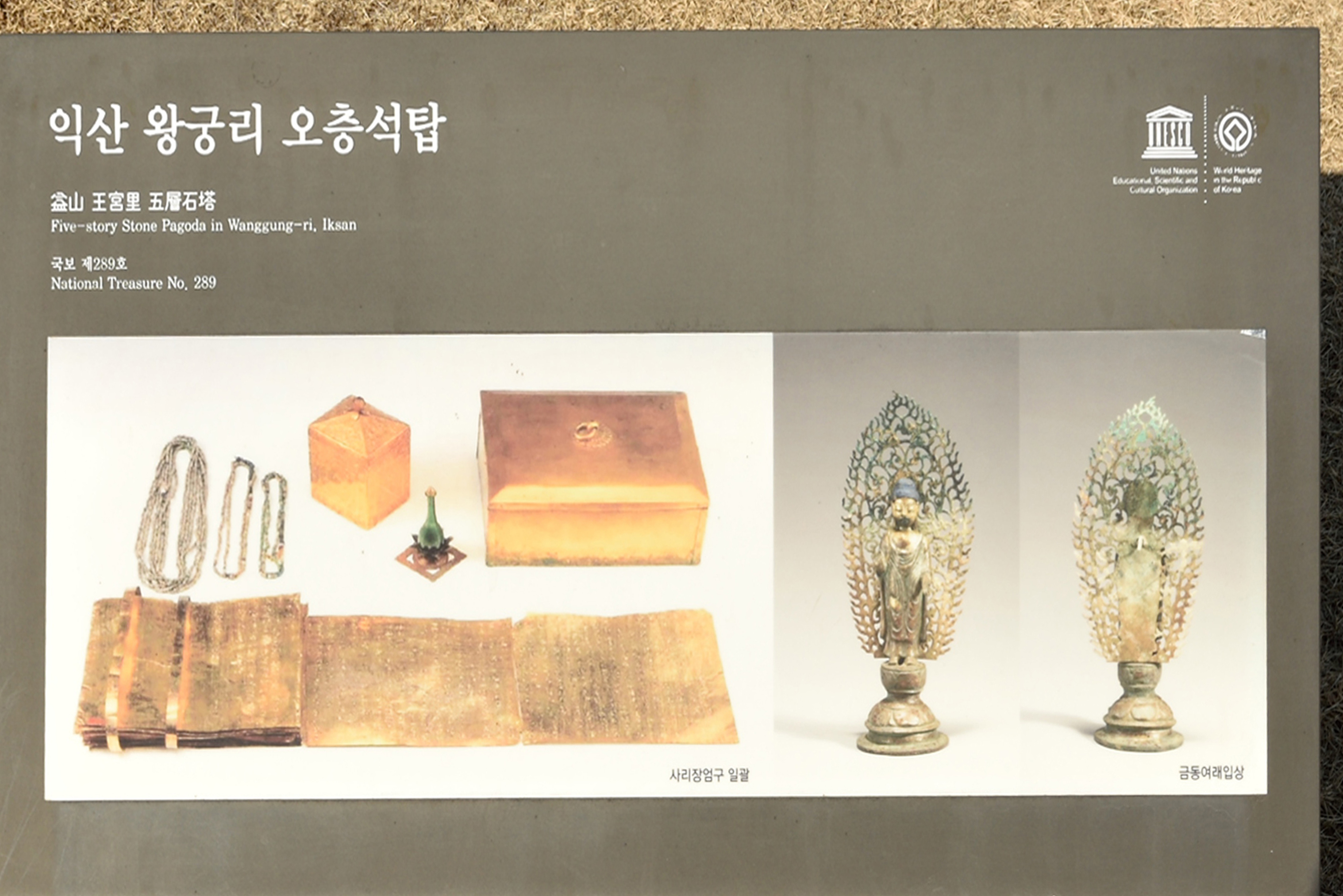 입체영화 상영관에서 약 7분 정도의 만화 입체영화를 보고 하늘정원이라는 옥상에 올라가 두루 익산의 들판을 둘러보았다. 호남의 광활한 평야가 펼쳐져 있었다. 그 중심 조금 높은 구릉지대에 오층석탑이 서있었다. 왕궁이 쇄락해진 다음 그 터에 석탑이 들어서며 사찰이 들어선 것으로 짐작된다. 직원의 말씀으론 서울 한성 백제의 몽촌토성은 유네스코지정 세계문화유산에 들지 못했으나, 이곳은 세계문화재로 지정된 것으로 미루어 그 중요성이 인정되었다는 것이었다.