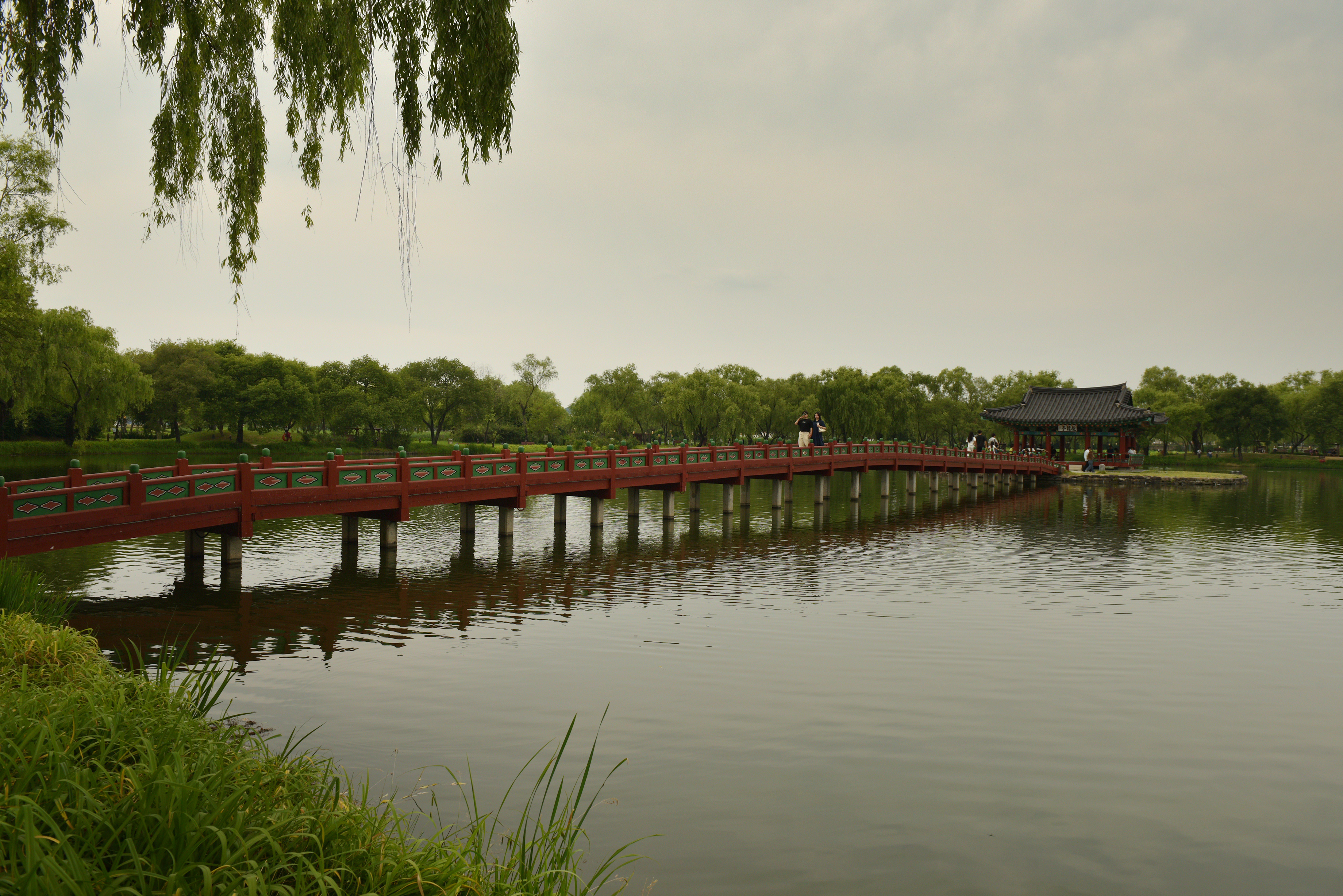 궁남지를 둘러싸고 왕이 되기 전, 마를 파는 총각으로 변장한 서동과 궁궐에서 쫓겨난 선화공주의 연애담이 낭만적인 전설로 이곳에 전해져, 연못 가운데 둥근 섬을 만들고 정자를 만들었다. 정자 이름은 '포룡정' 용을 안은 정자란 뜻이다. 선화공주와 무왕의 옛이야기를 생각하며 연못 주변을 산책 삼아 한 바퀴 돌았다. 다행히 날씨가 흐려 햇볕은 그리 따갑지 않았다.
