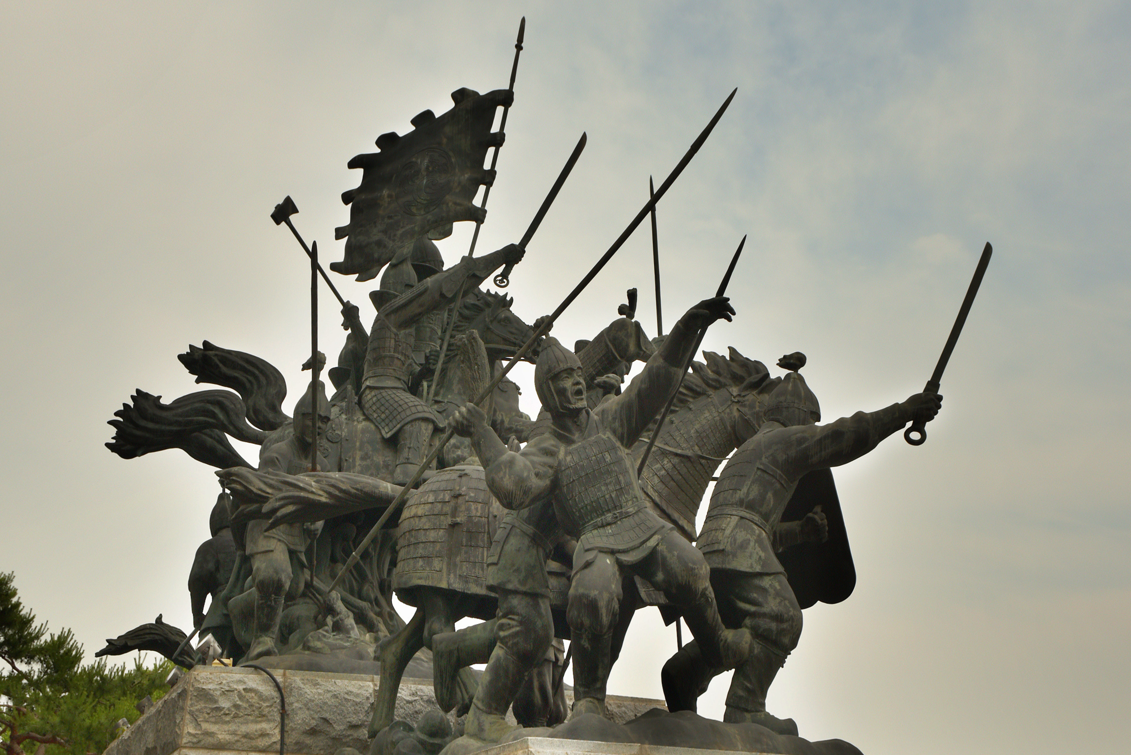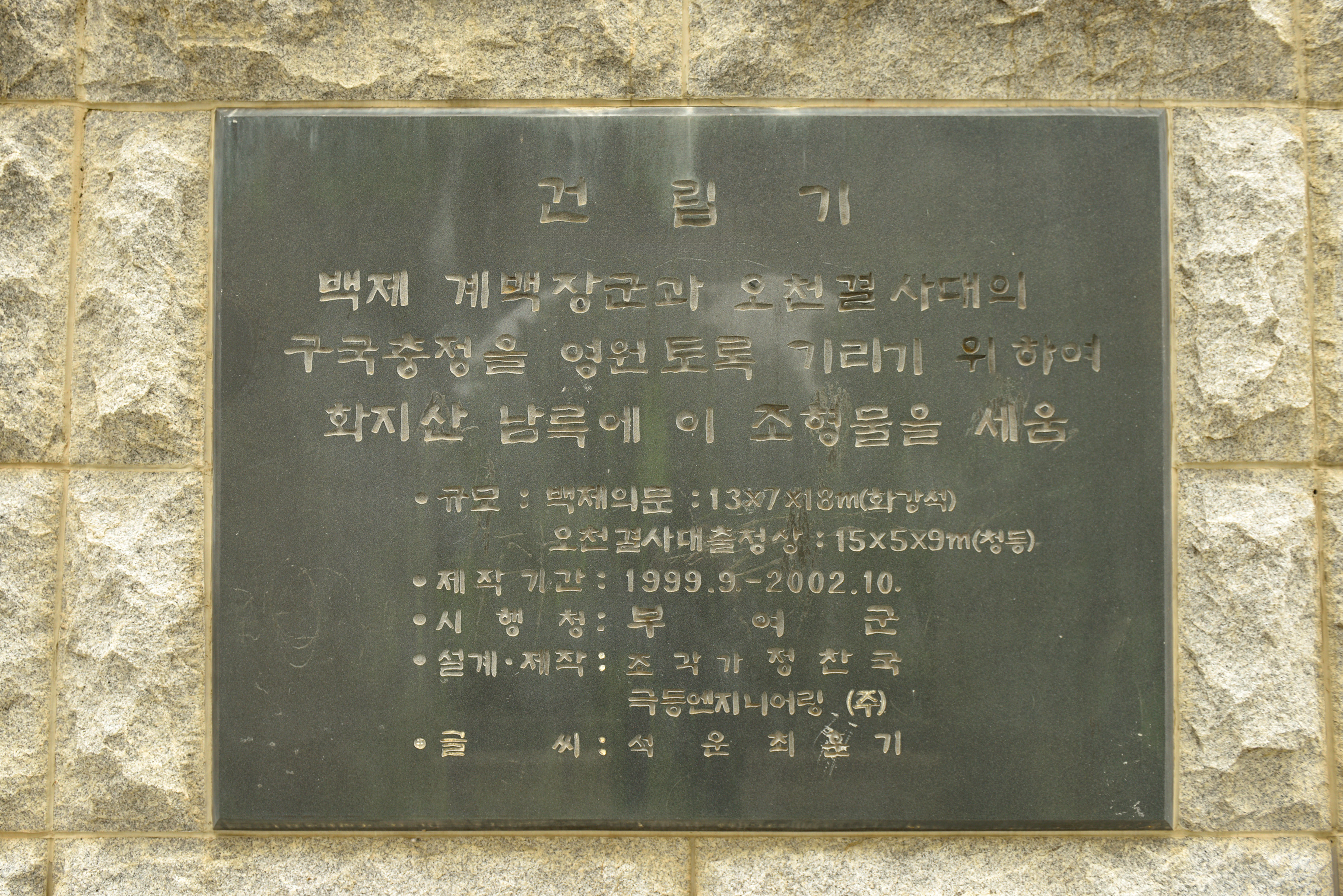 궁남지 산책 후, 연못의 동남쪽에 있는 백제 오천결사대 출정상이 있는 곳을 찾아갔다. 이곳은 처음 본 것인데, 오천결사대 청동상과 뒤에 세운 백제문이라는 조형물이 기대치에 모자라 보인다. 동상이라도 웅장하다면, 돌아가신 결사대의 영령들도 위로받을 수 있을 텐데... 논산 백제군사박물관에 있는 계백 장군 동상은 거룩해 보이던데, 아쉬운 마음으로 주변을 둘러보았다.
