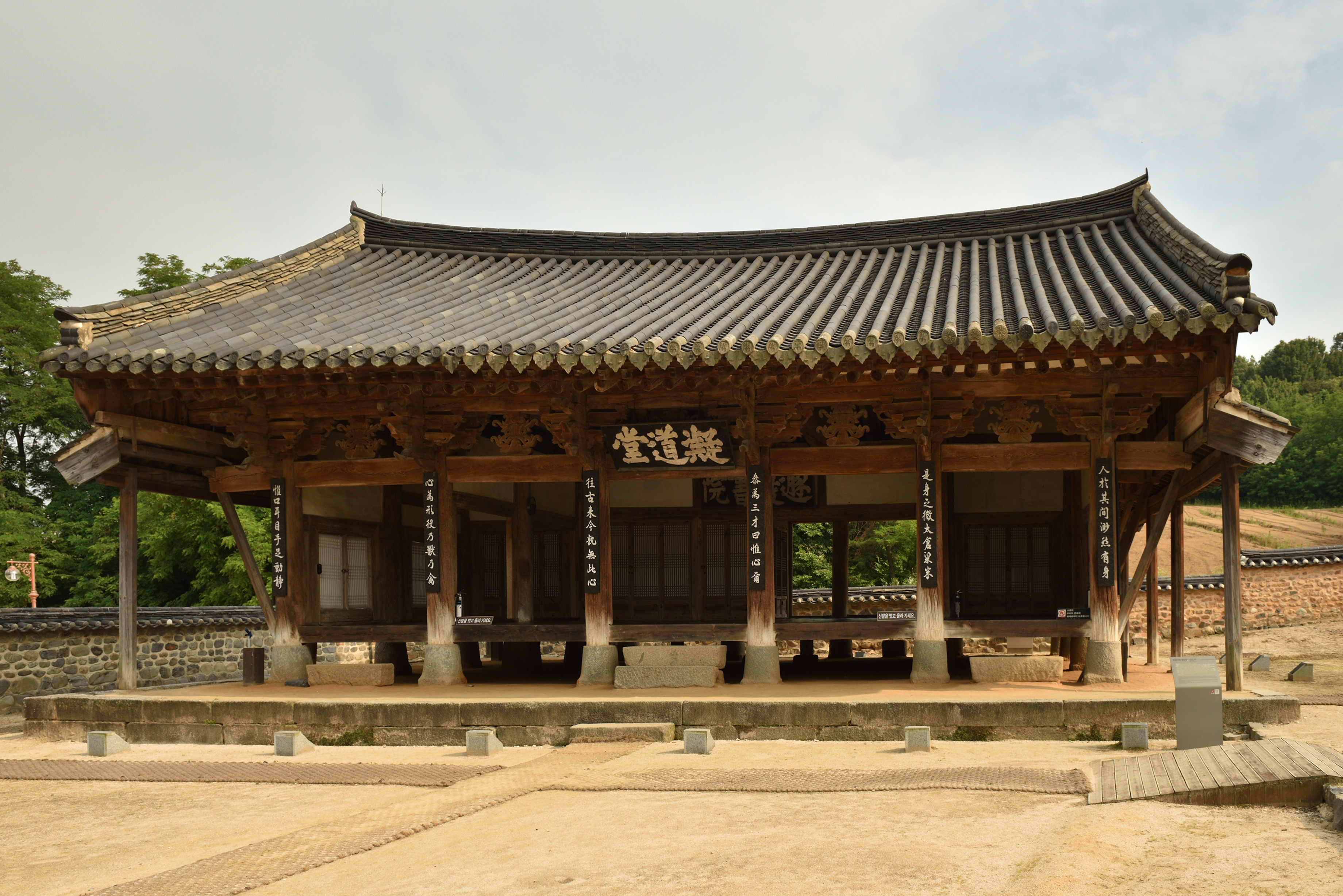 유생들의 강당이었던 응도당, 맞배지붕 양 측면에 눈썹 추녀를 붙여 비바람을 가리고 있다.