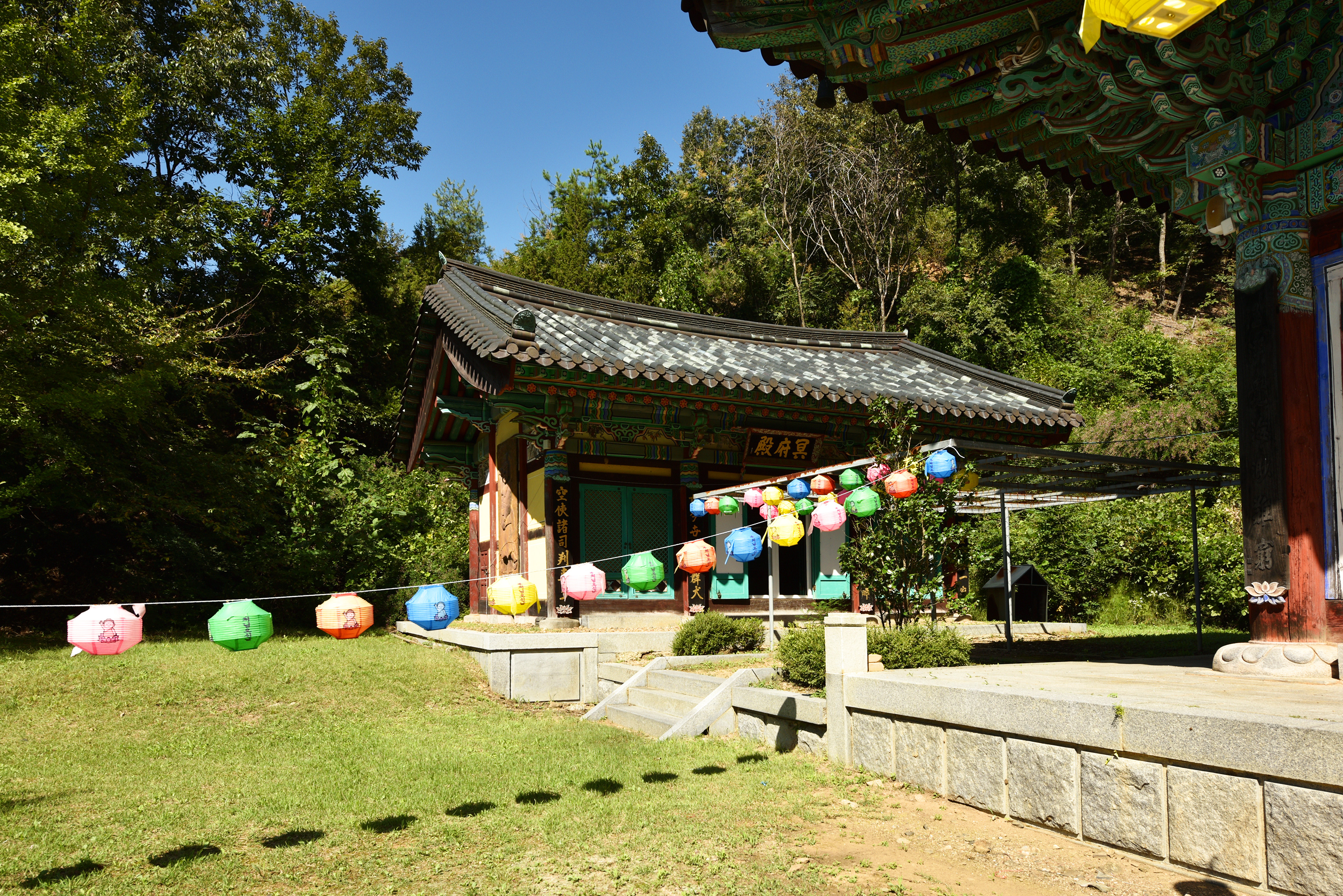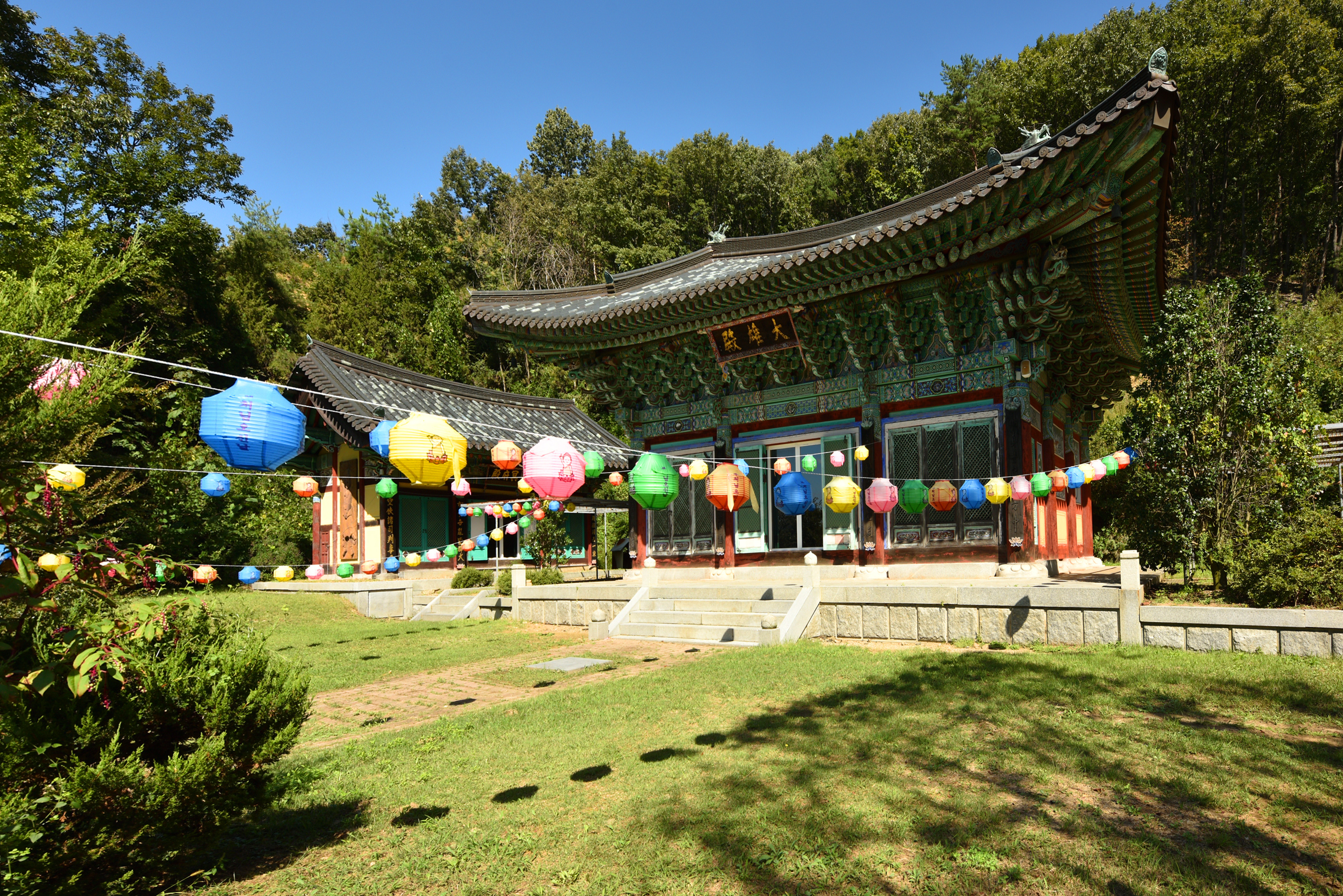 가운데 대웅전과 좌우의 명부전 영산전은 전통양식으로 산세와 어울려 아름답고 고왔다.