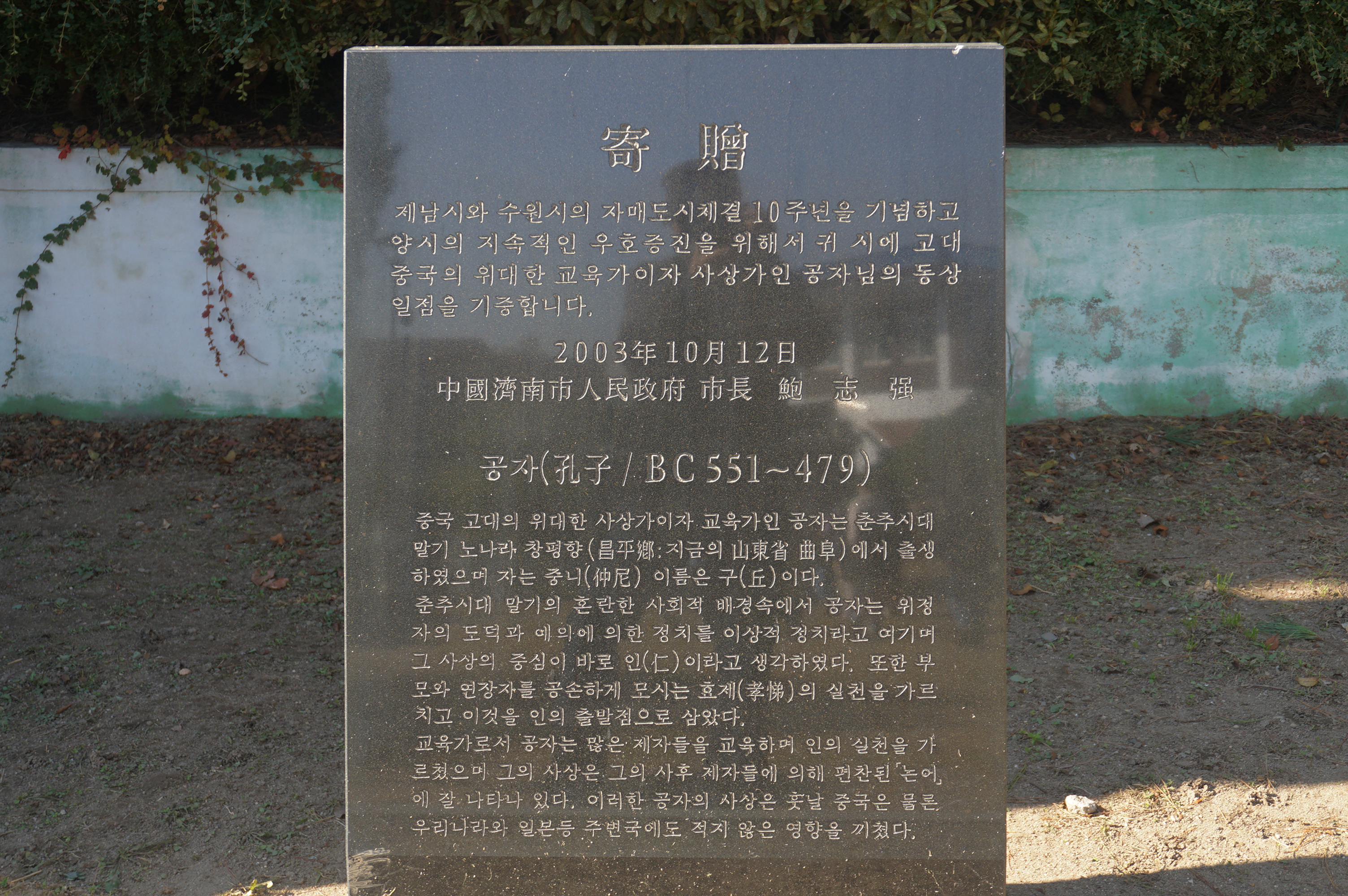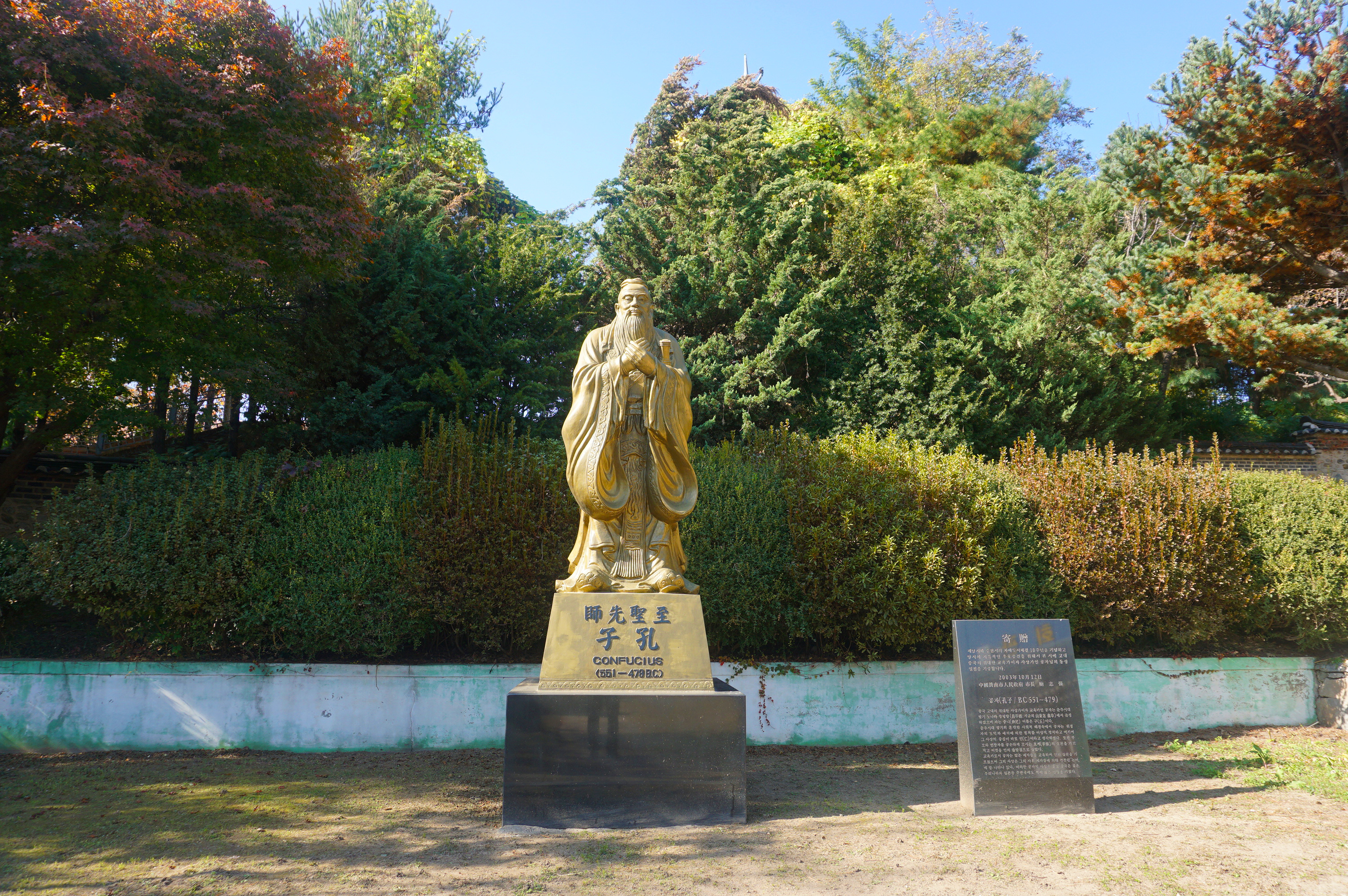 2003년 중국 제남시에서 기증한 공자상, 과장되지 않은 공자님의 모습이 외삼문 안 명륜당 앞 마당에 동쪽을 향해 서있다.