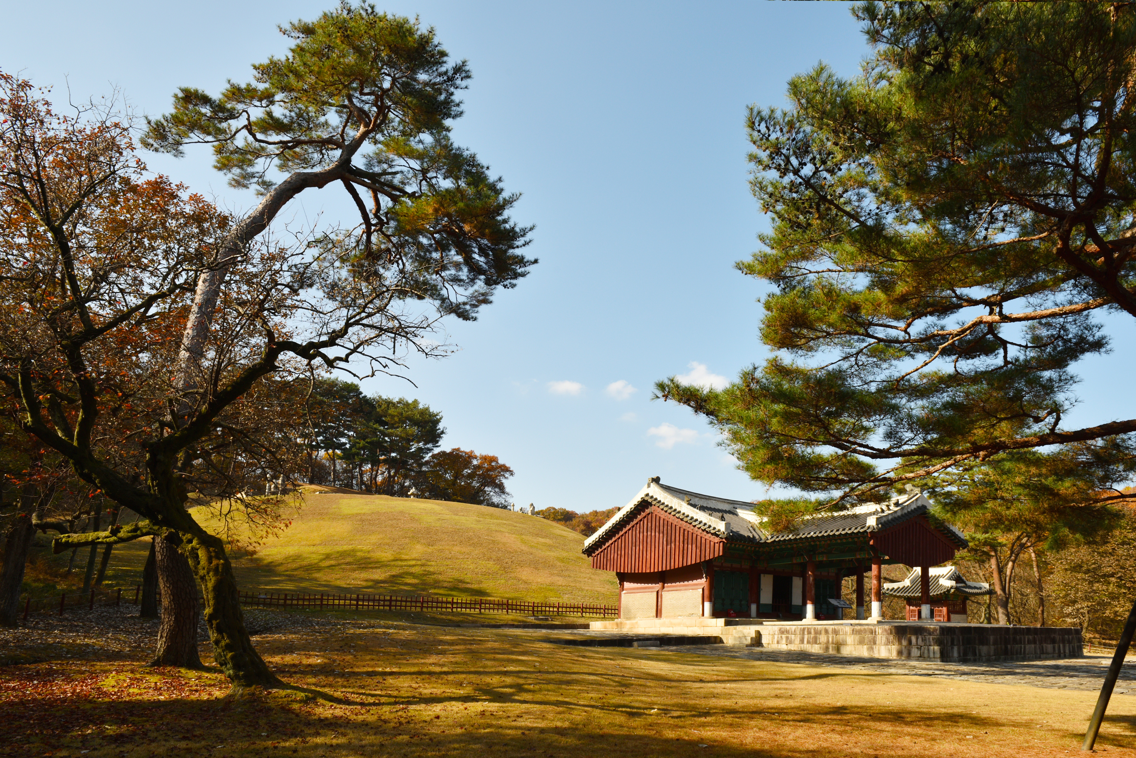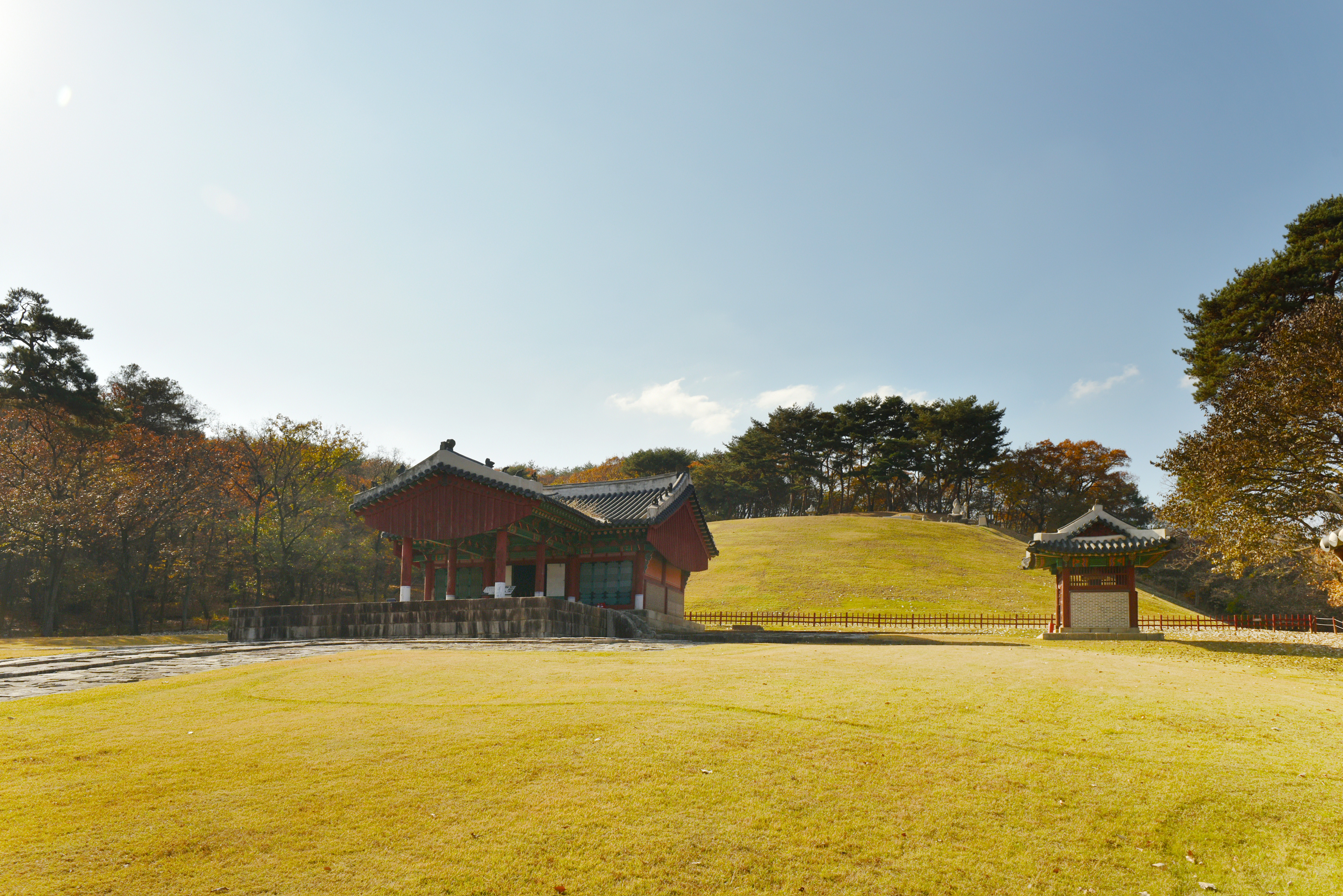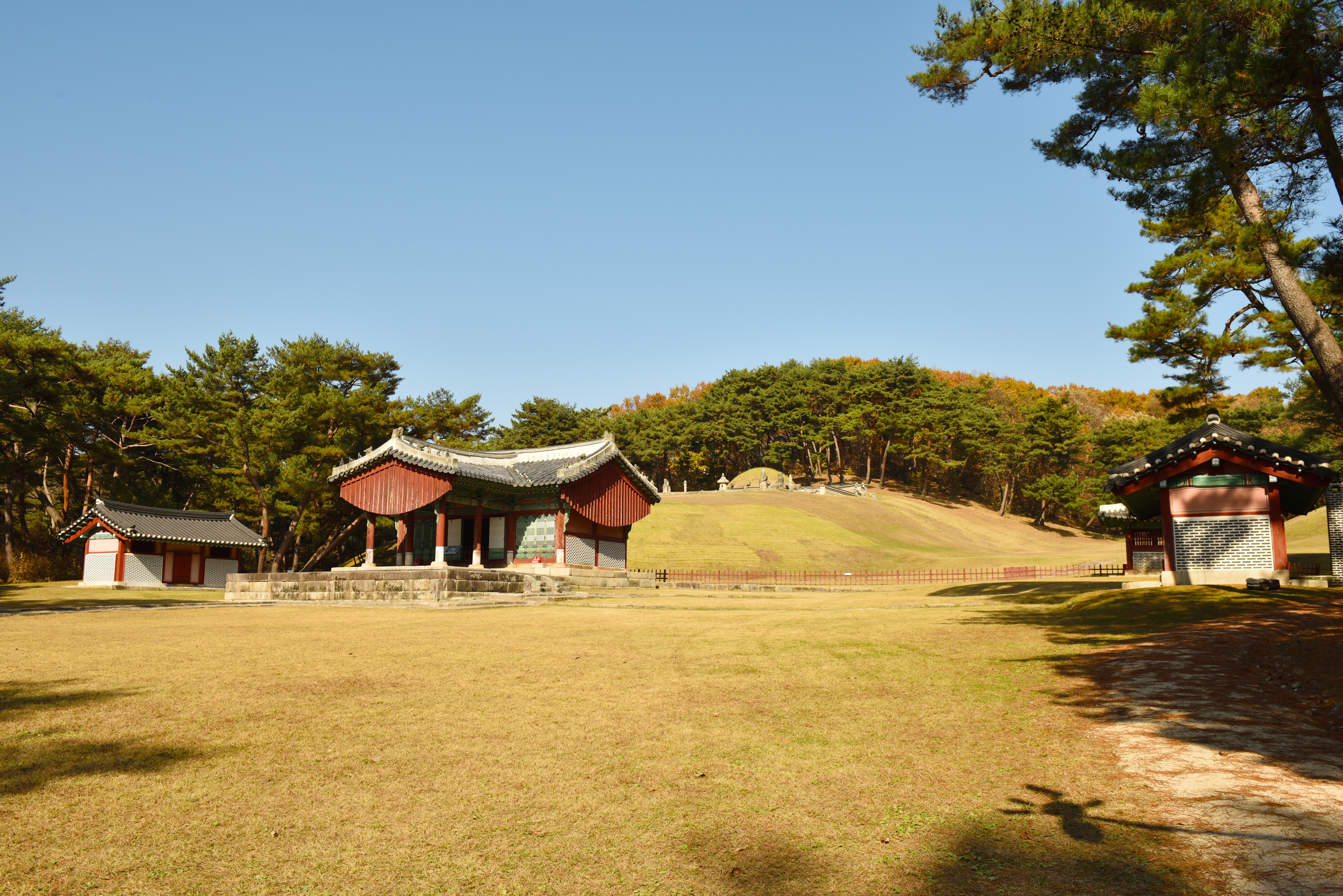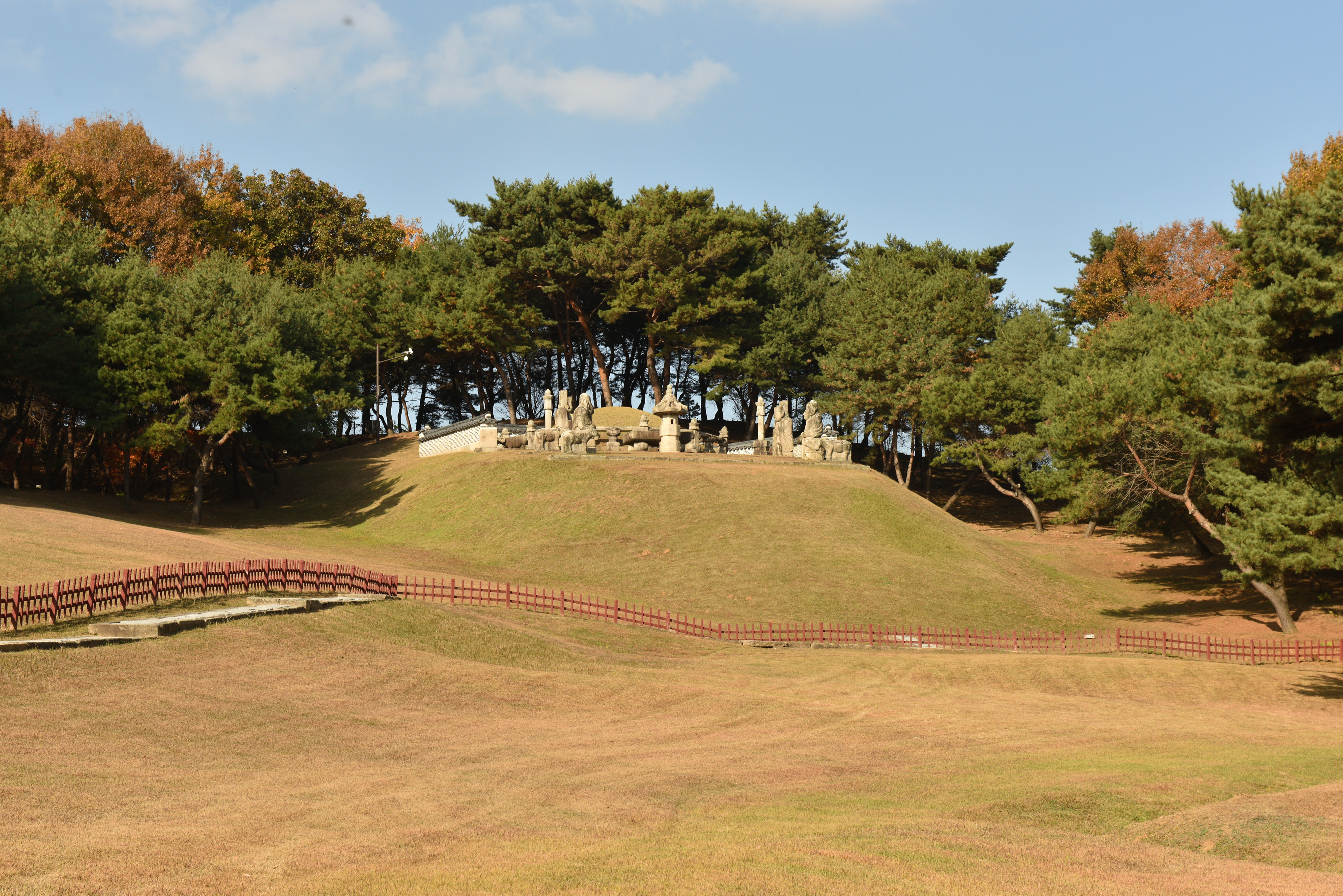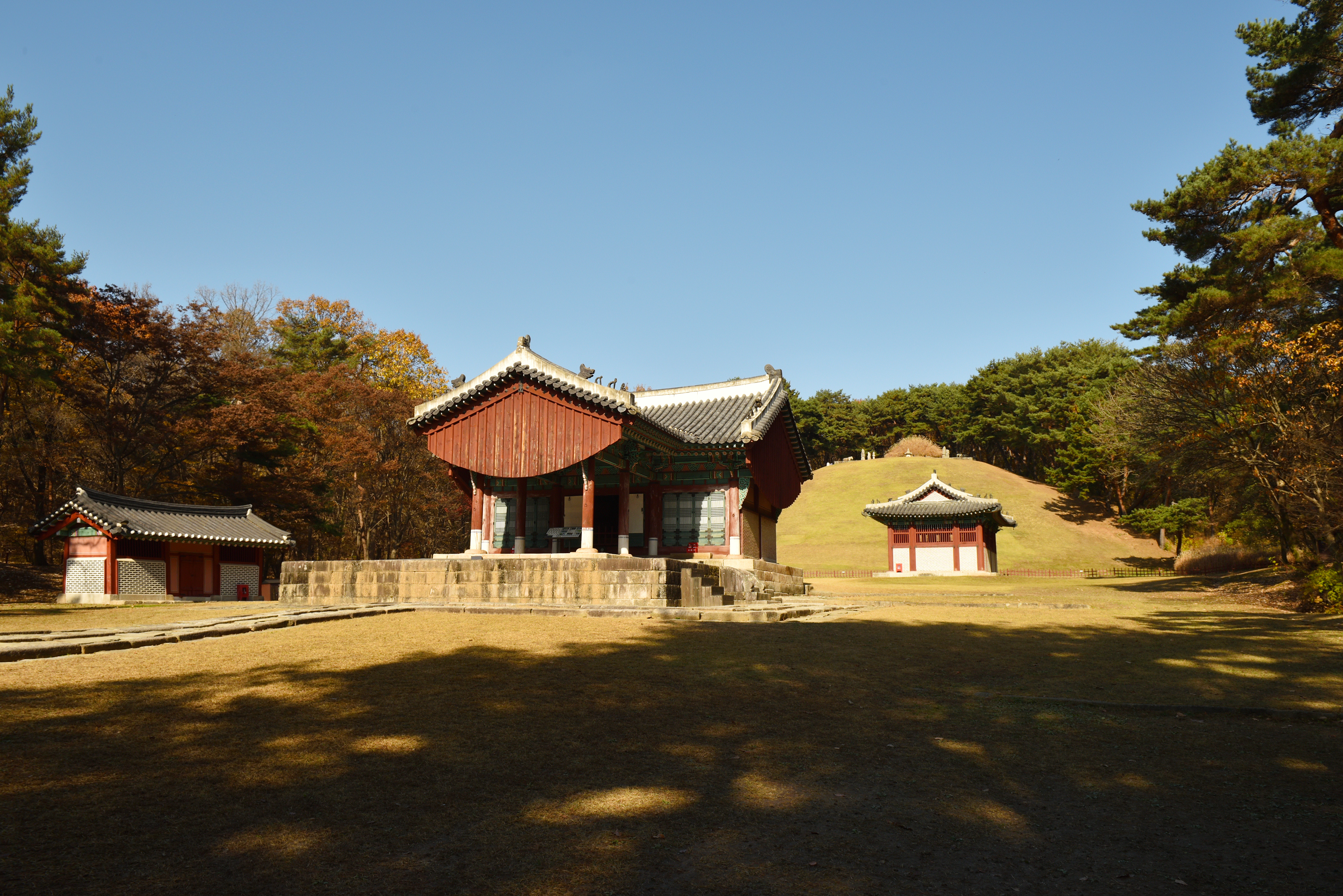 건원릉-조선을 건국한 태조 이성계의 능(1392년 개성에서 개국하여 1394년 한양으로 천도하여 조선의 기틀을 다졌다. 1408년 74세로 사망하여 이곳에 묻혔다. 봉분은 고향인 함흥의 억새를 심어 매년 4월에 단장하며 이후 벌초를 하지 않아 억새로 덮여있다.)